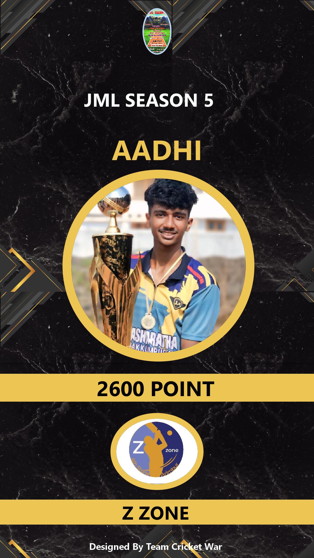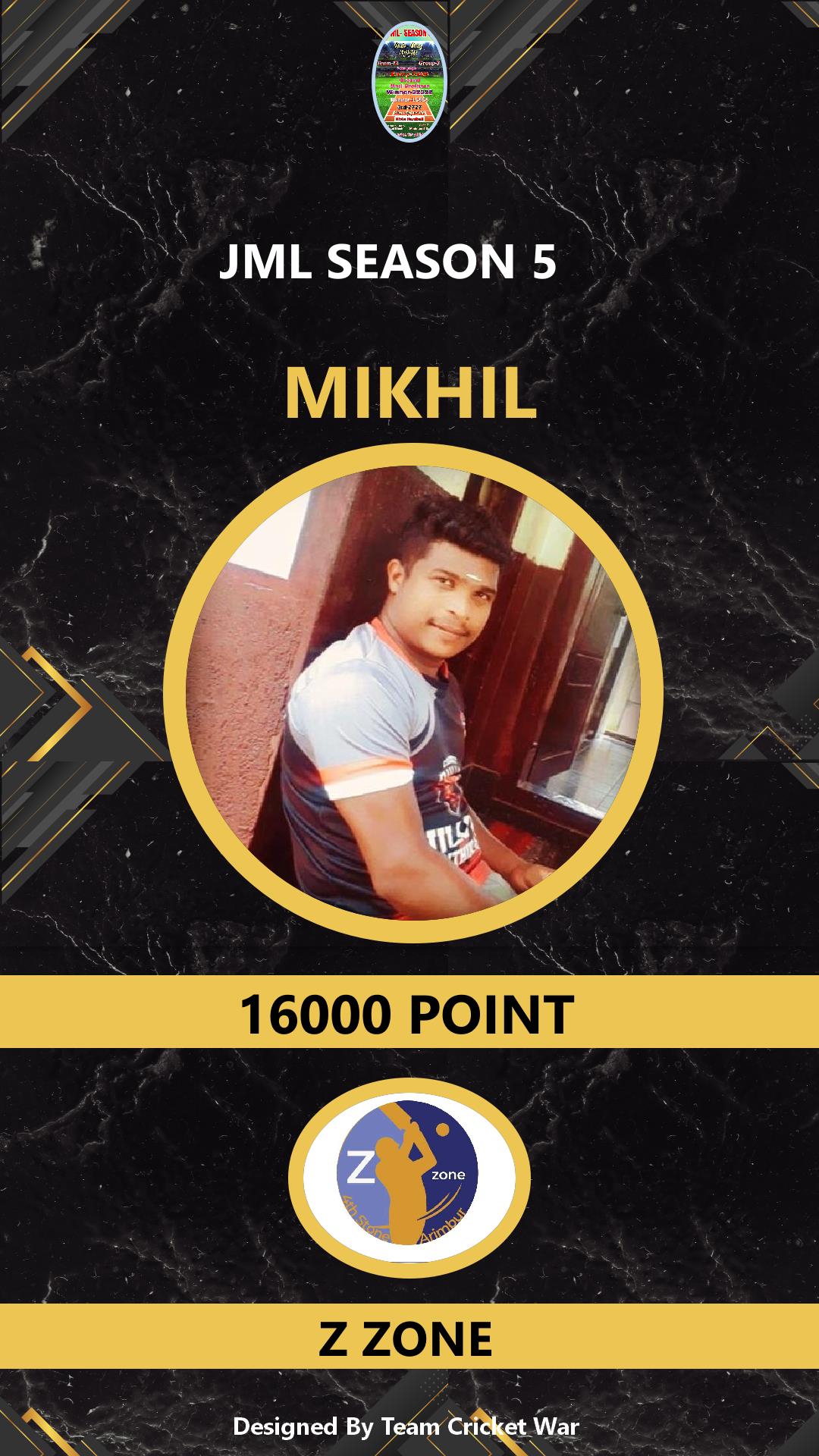 BATTING ALLROUNDER, AGE : 17 MANAKODY Bid Amount : 1400 Team : Z ZONE Download ID Card VIEW PROFILE |