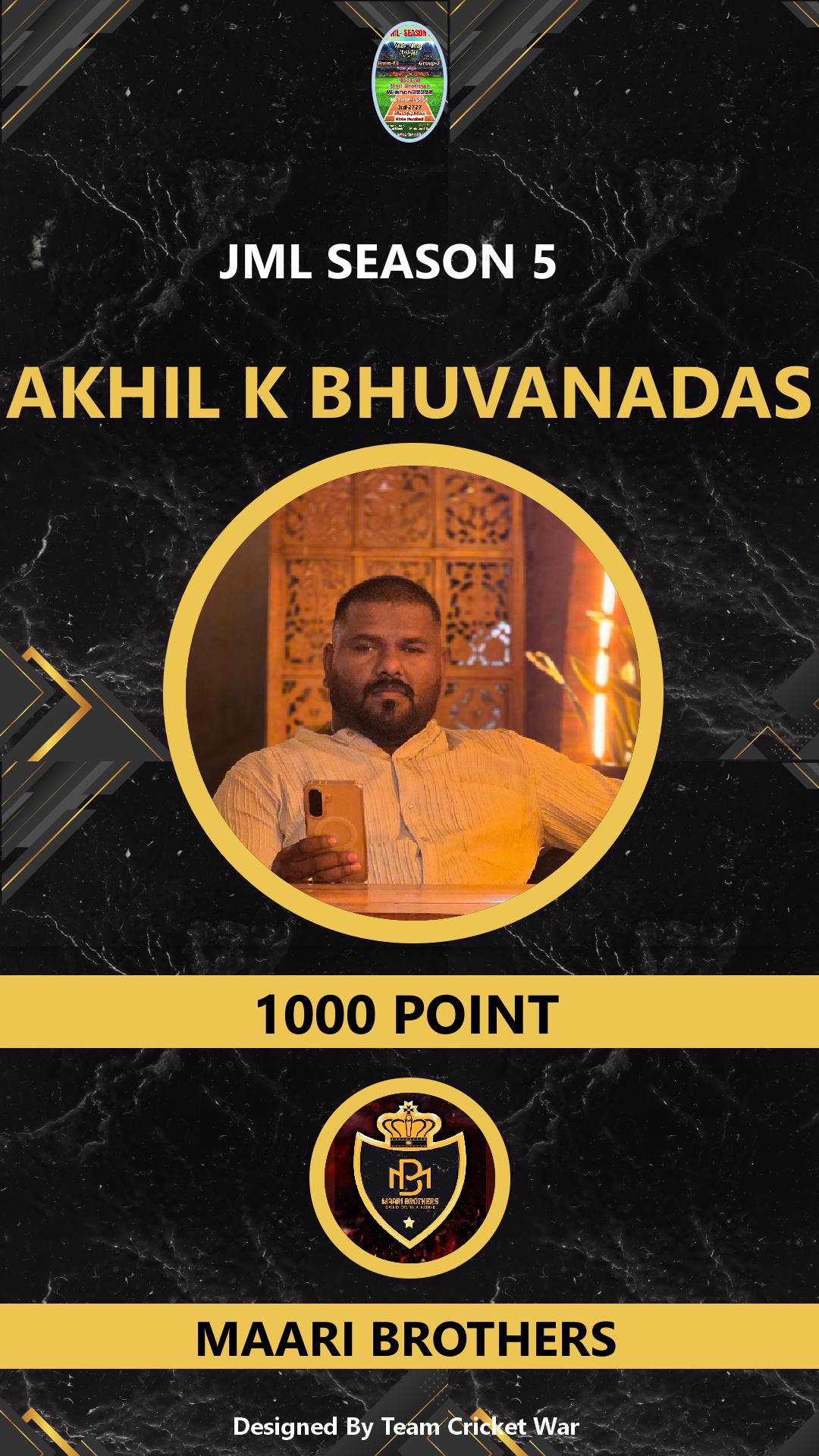 ALLROUNDER, AGE : 32 CHEMMAPPILLY Bid Amount : 1000 Team : DHASARADHA Download ID Card VIEW PROFILE |