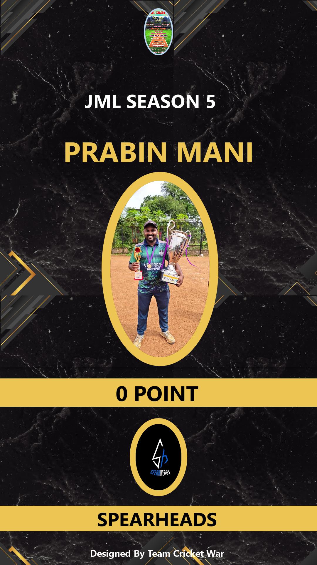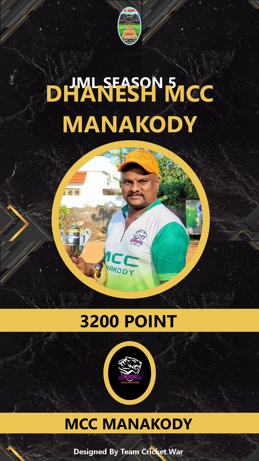 BATSMAN, AGE : 24 MANAKODY Bid Amount : 2400 Team : MAARI BROTHERS Download ID Card VIEW PROFILE |