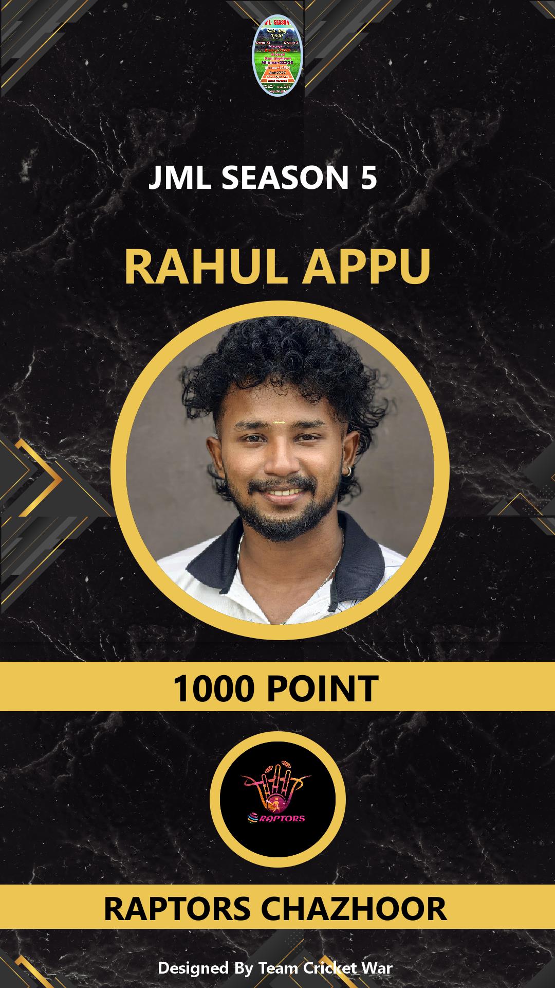 ALLROUNDER, AGE : 49 PAZHUVIL Bid Amount : 1000 Team : RAPTORS CHAZHOOR Download ID Card VIEW PROFILE |
