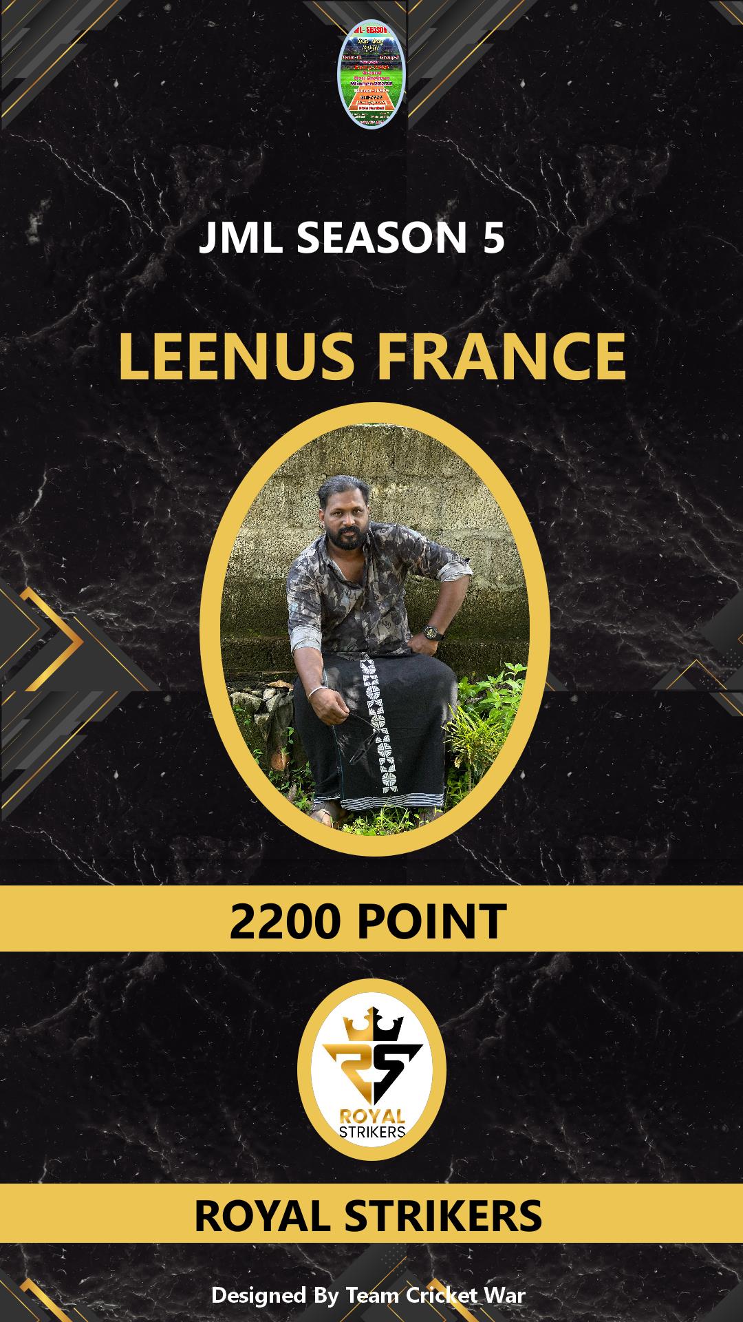 ALLROUNDER, AGE : 29 KAIPPILLY Bid Amount : 1000 Team : ROYAL STRIKERS Download ID Card VIEW PROFILE |