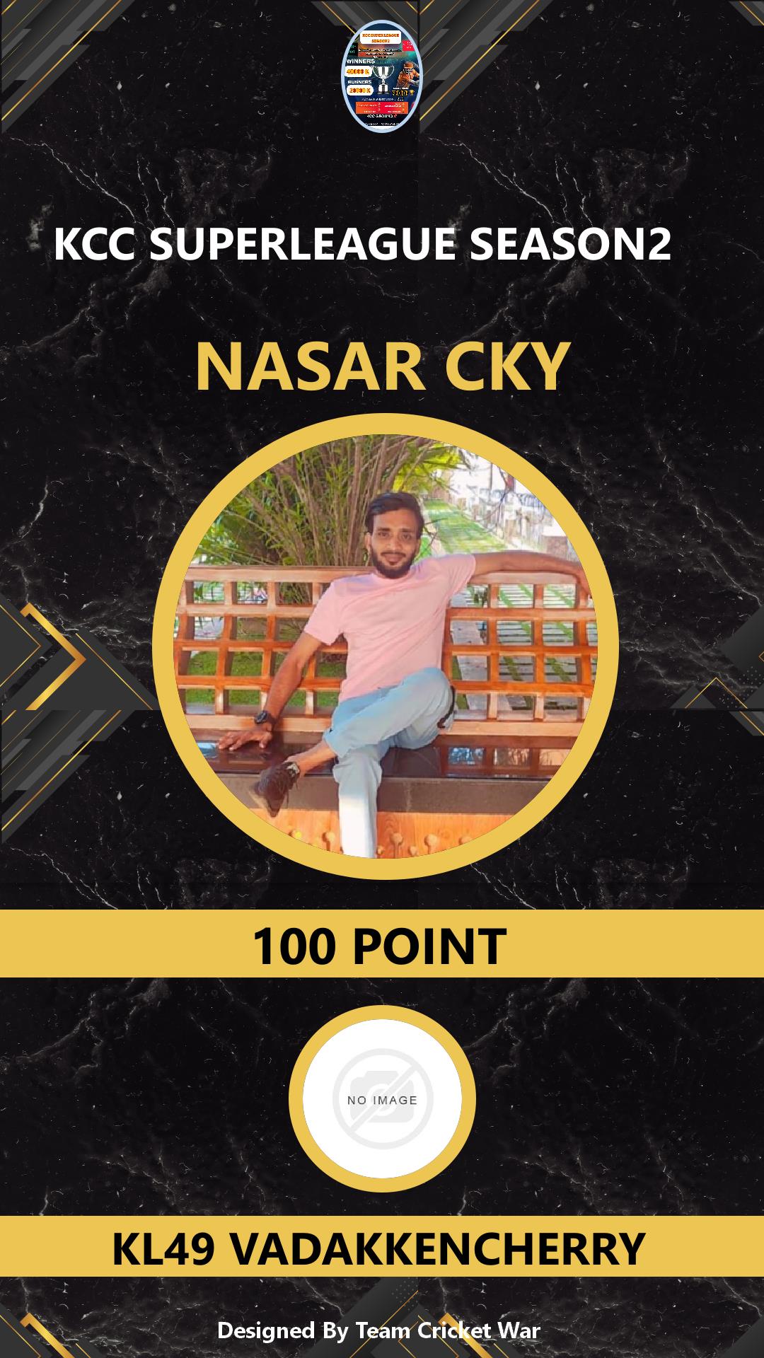 ALLROUNDER, AGE : 35 KIZHAKKENCHERRY Bid Amount : 100 Team : CHALLENGERS CC Download ID Card VIEW PROFILE |