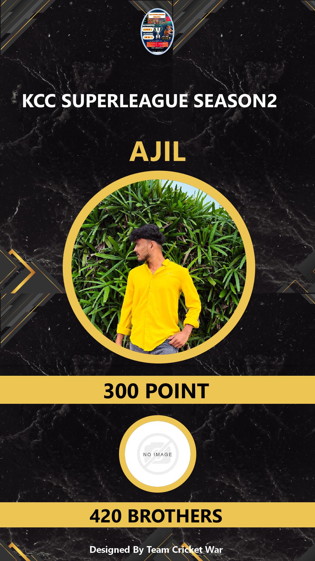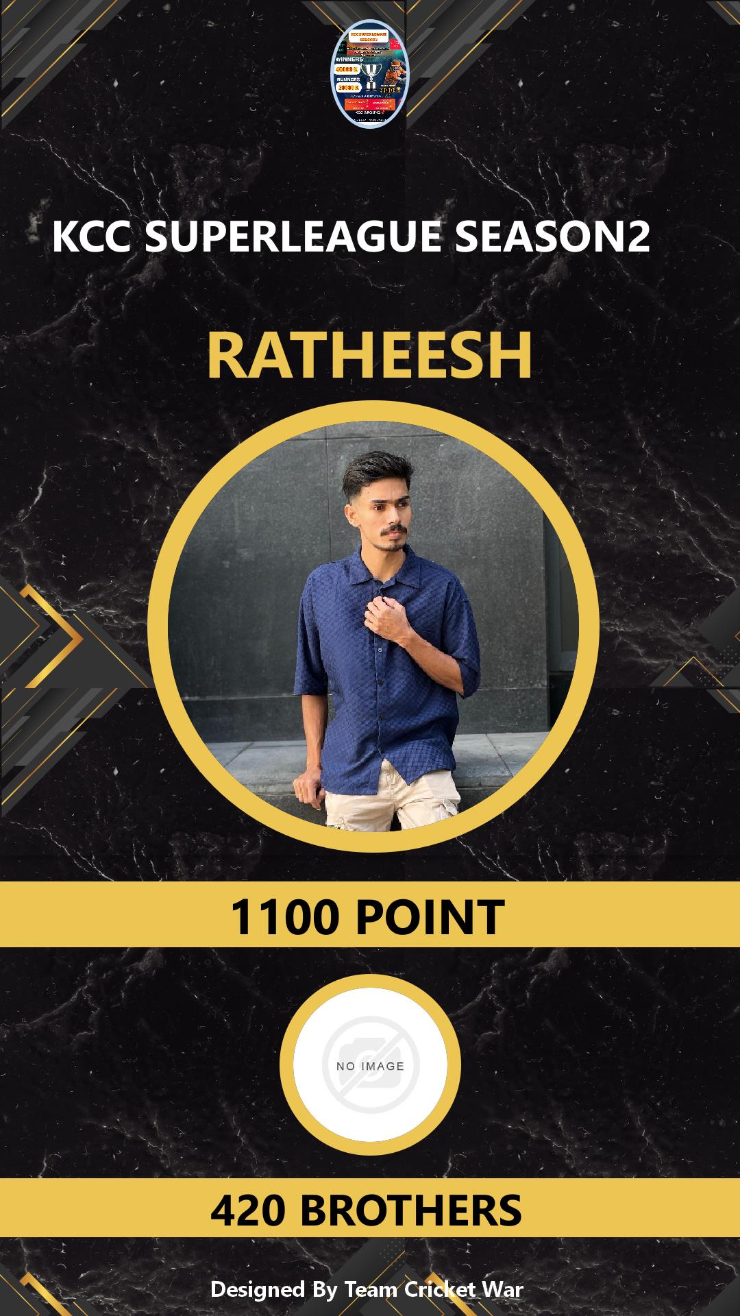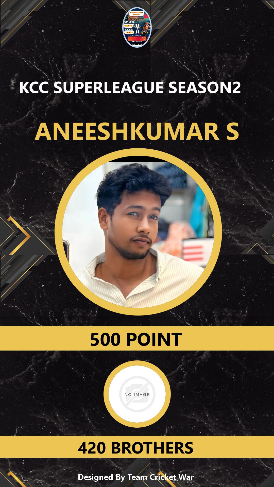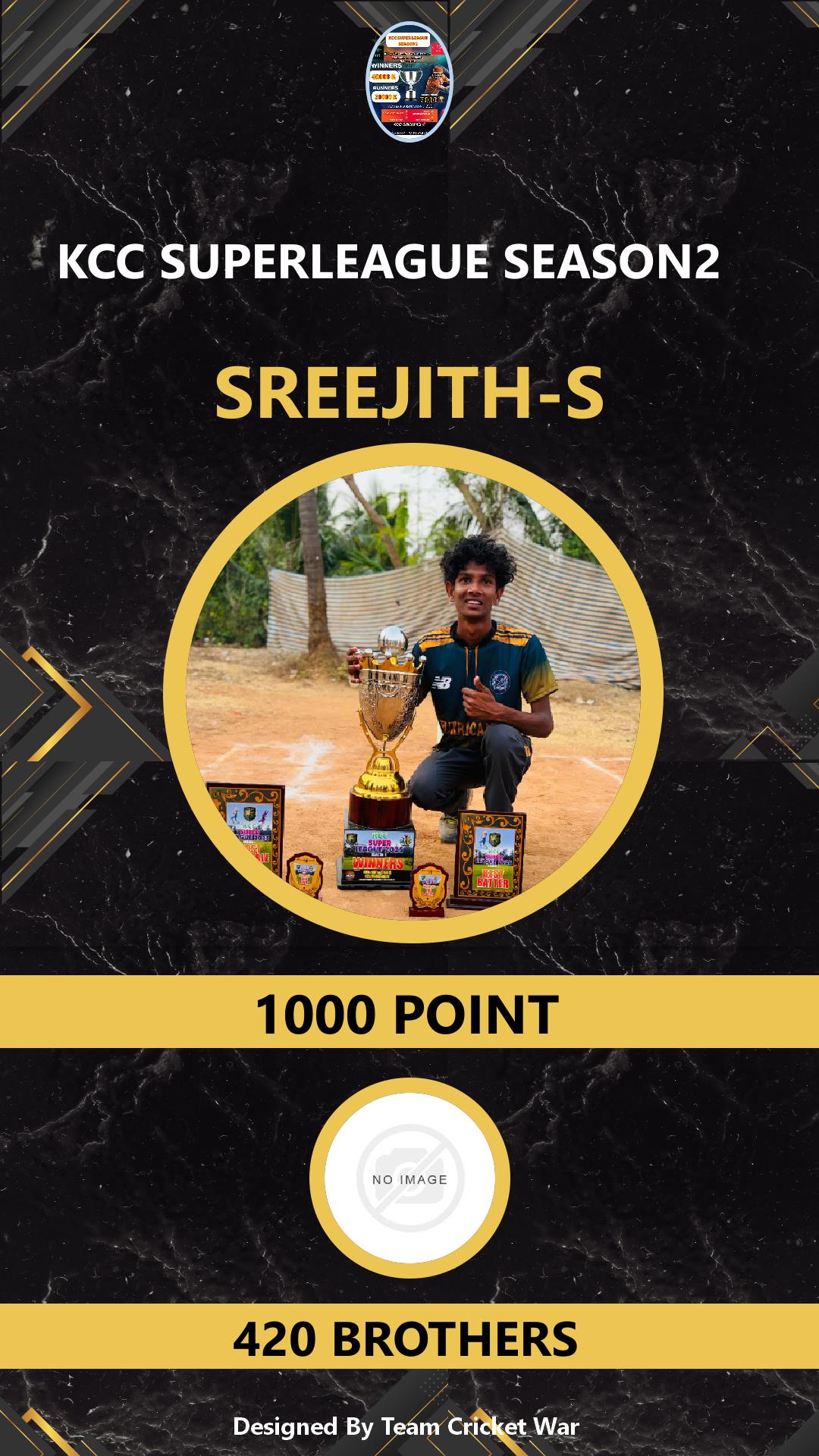ALLROUNDER, AGE : 28 MANGALAM DAM Bid Amount : 1400 Team : 420 BROTHERS Download ID Card VIEW PROFILE |