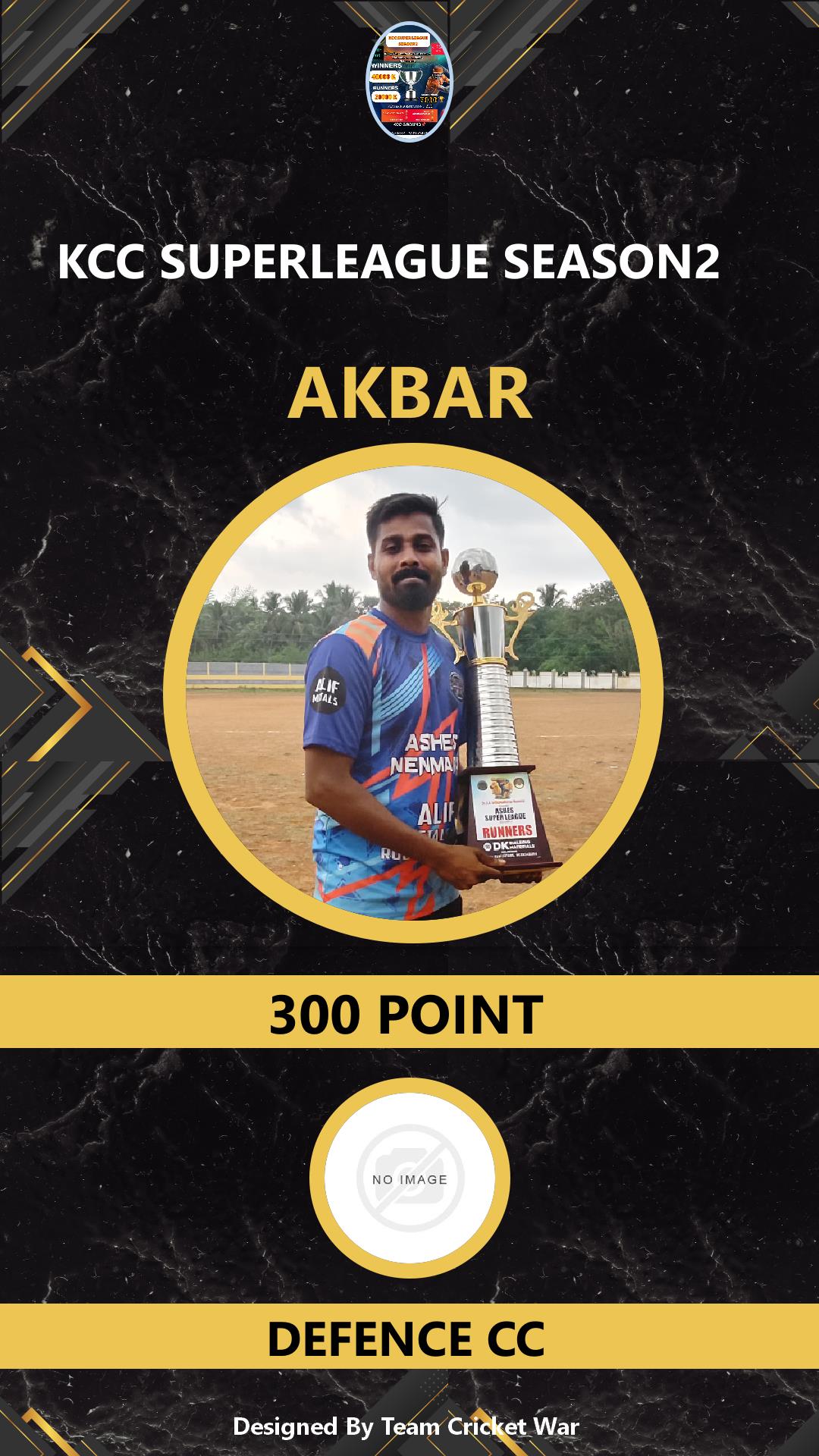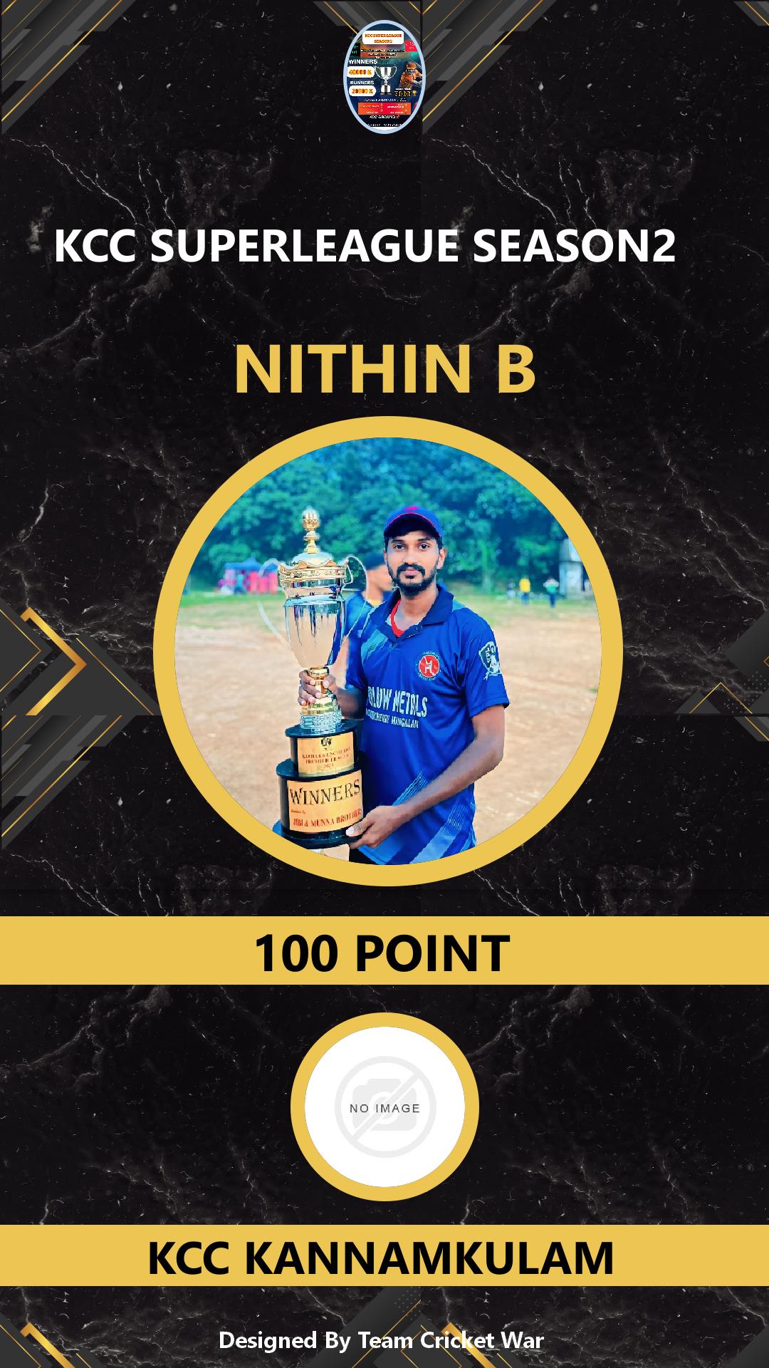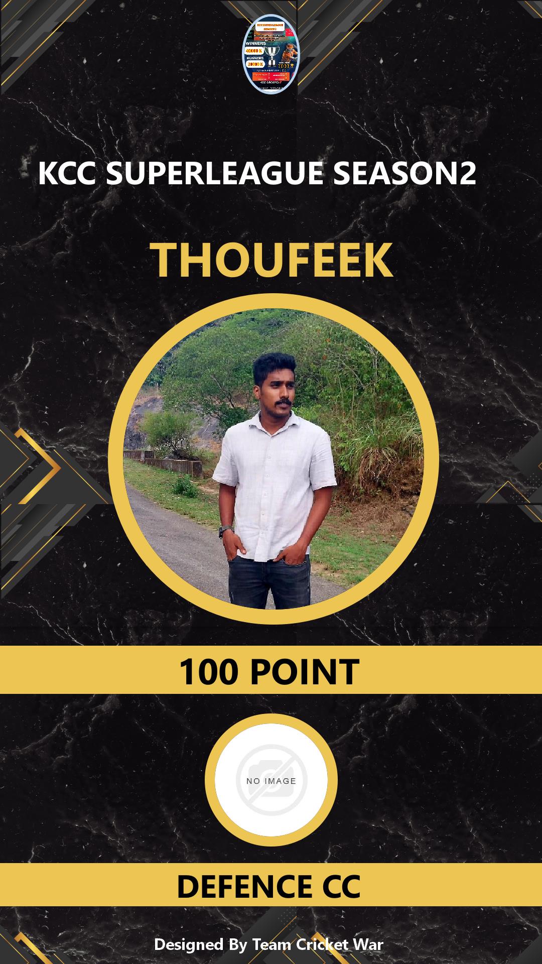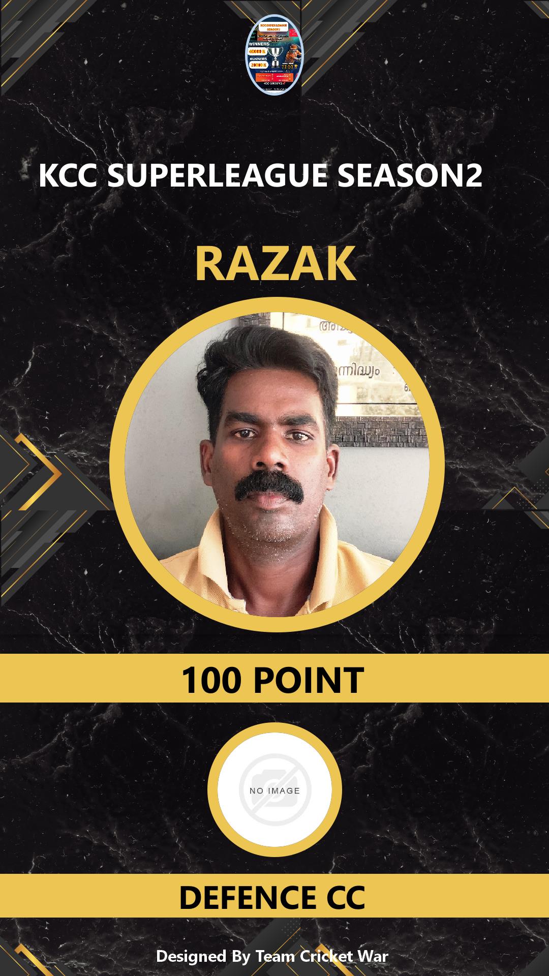 ALLROUNDER, AGE : 30 VADAKKENCHERRI Bid Amount : 100 Team : DEFENCE CC Download ID Card VIEW PROFILE |