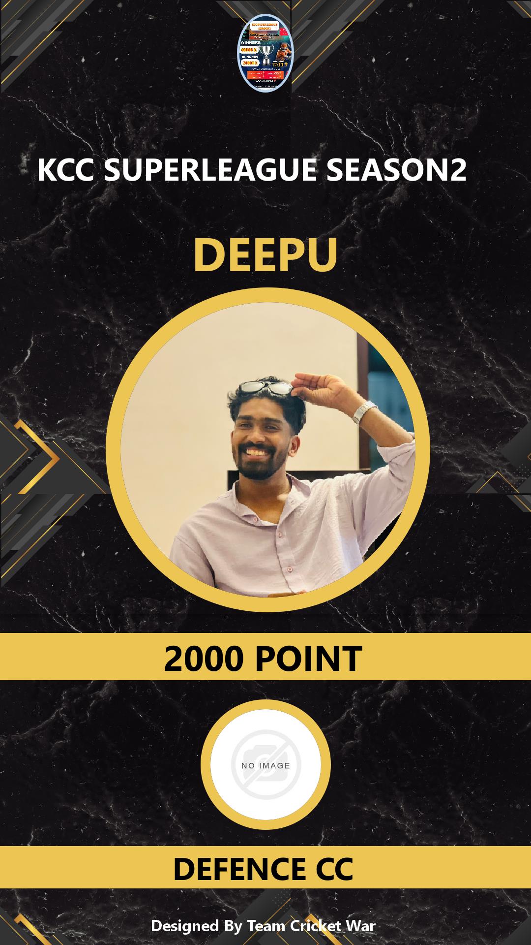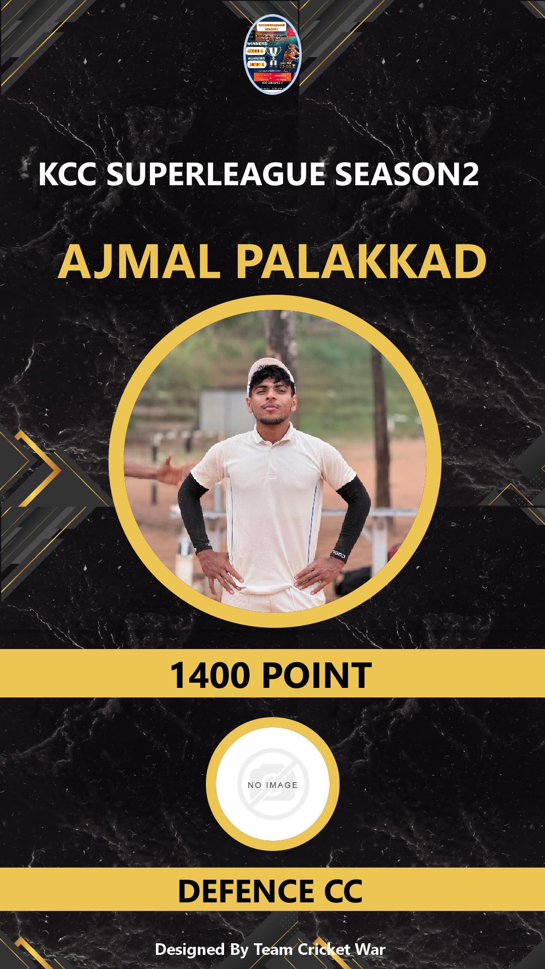 BATTING ALLROUNDER, AGE : 21 VADAKKENCHERRY Bid Amount : 1400 Team : DEFENCE CC Download ID Card VIEW PROFILE |