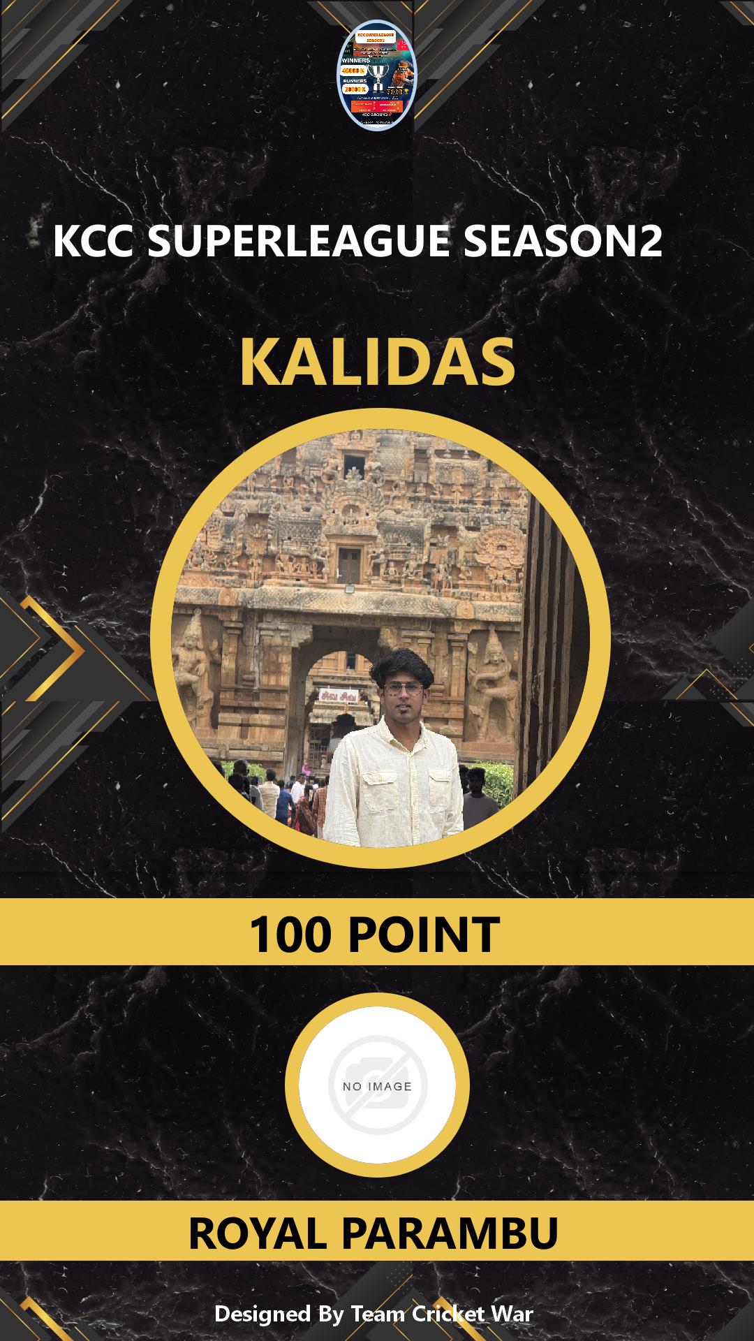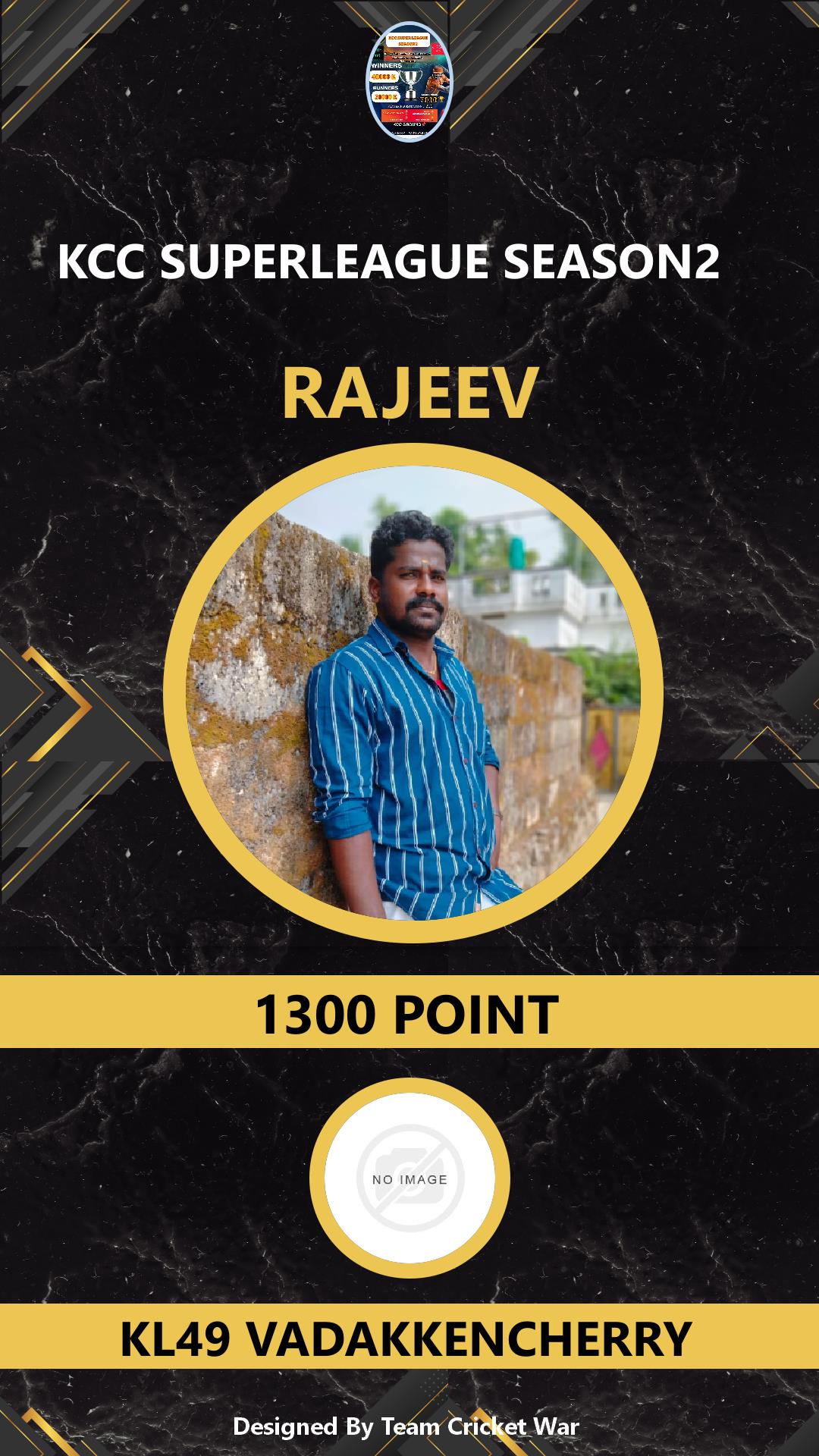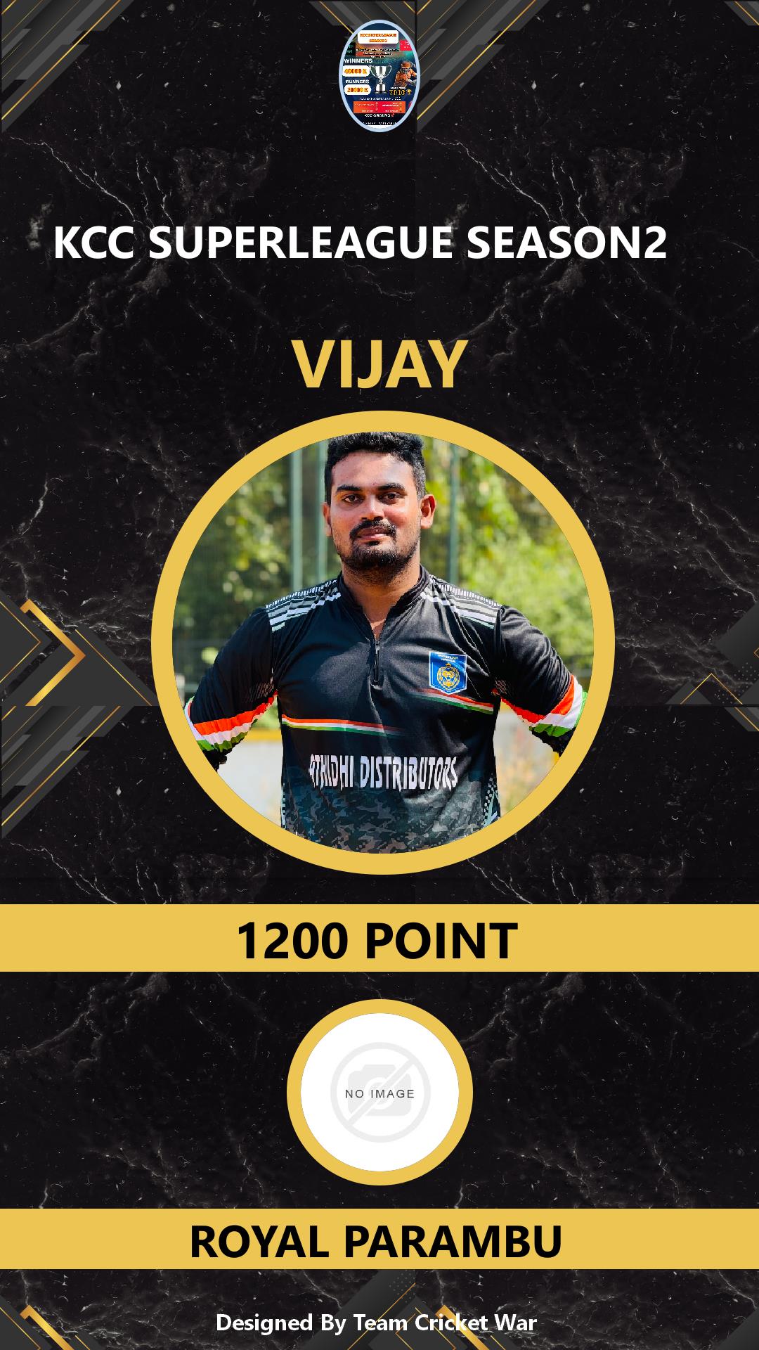 ALLROUNDER, AGE : 28 PALAYAM Bid Amount : 1100 Team : VCC KINGS Download ID Card VIEW PROFILE |