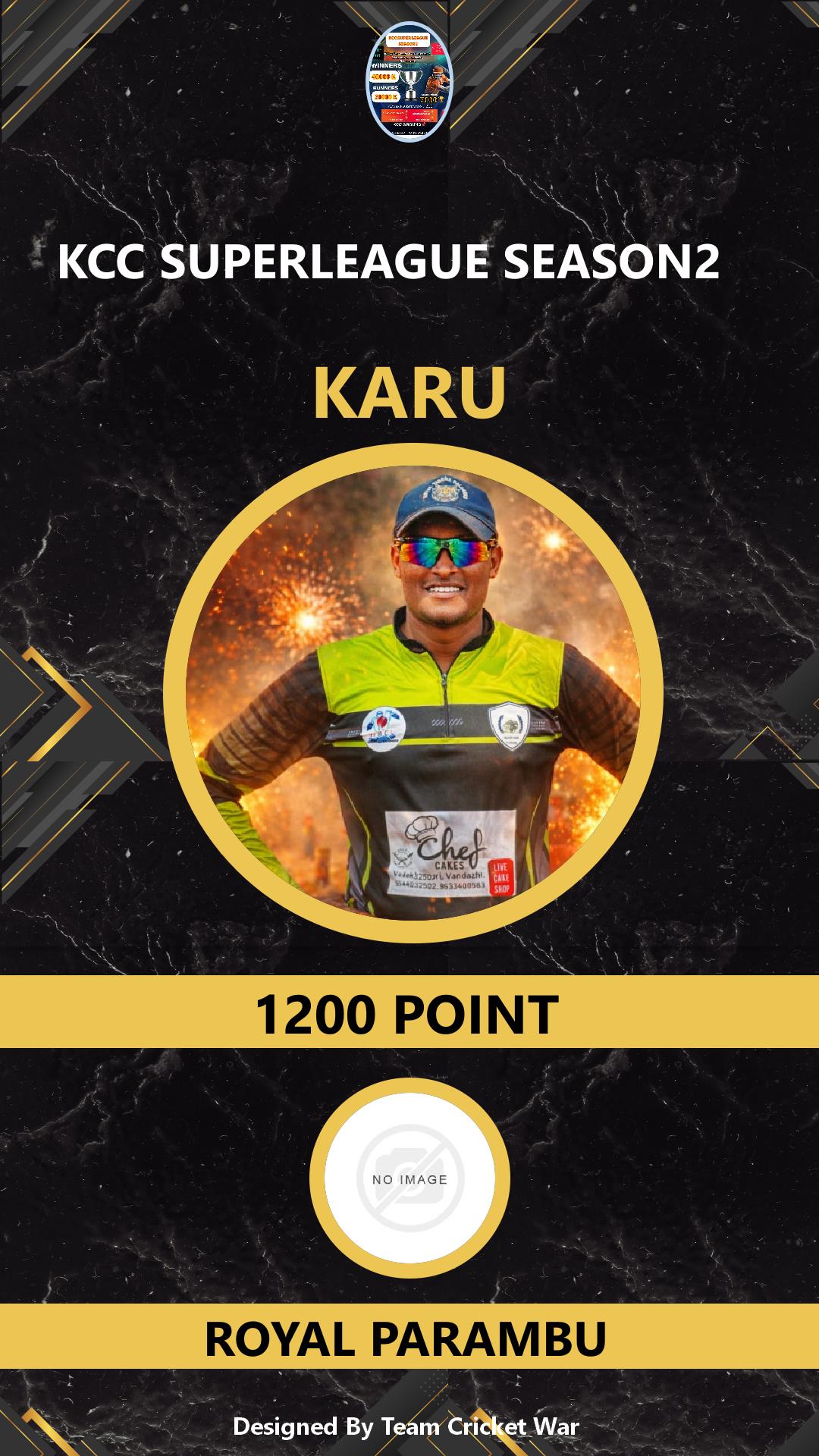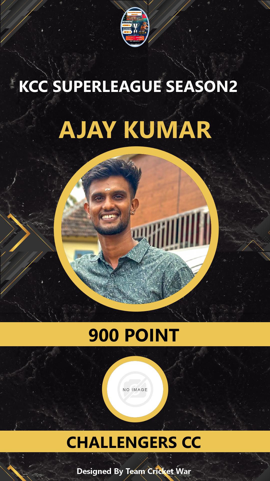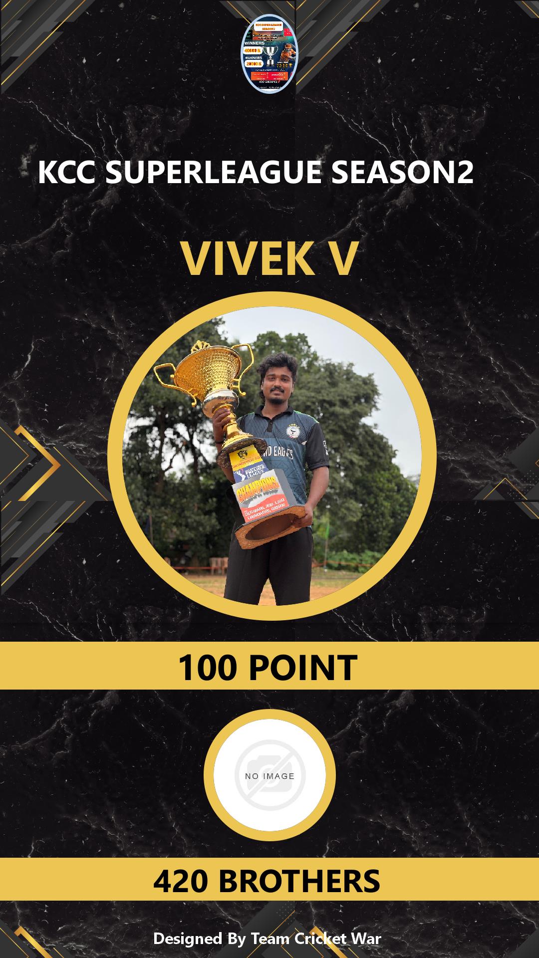 ALLROUNDER, AGE : 28 PALAYAM Bid Amount : 1100 Team : VCC KINGS Download ID Card VIEW PROFILE |