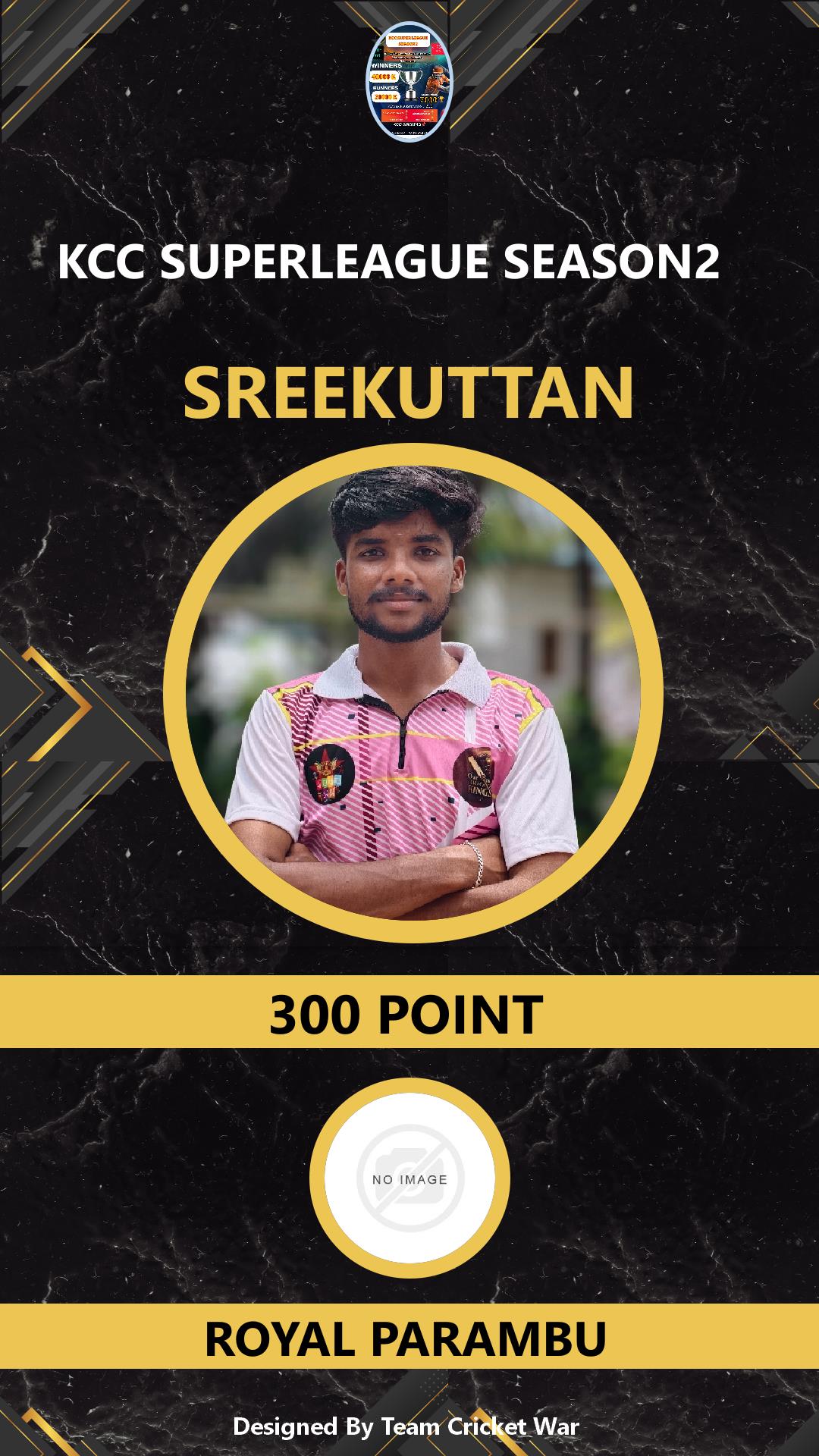 ALLROUNDER, AGE : 36 KIZHAKKCHRI Bid Amount : 300 Team : VCC KINGS Download ID Card VIEW PROFILE |