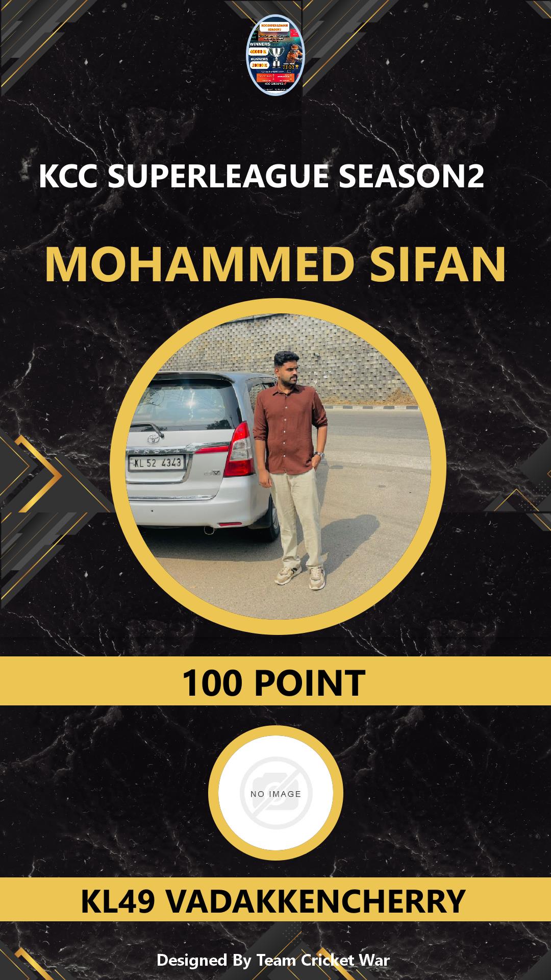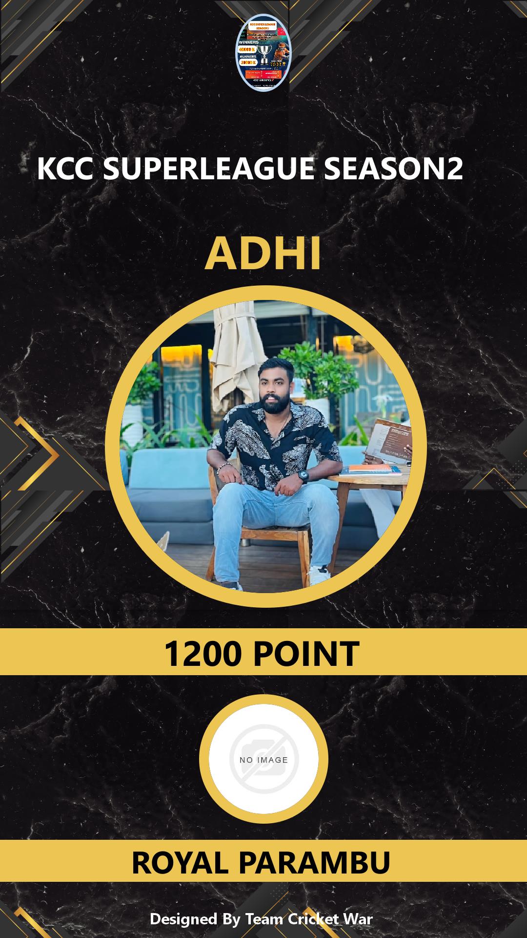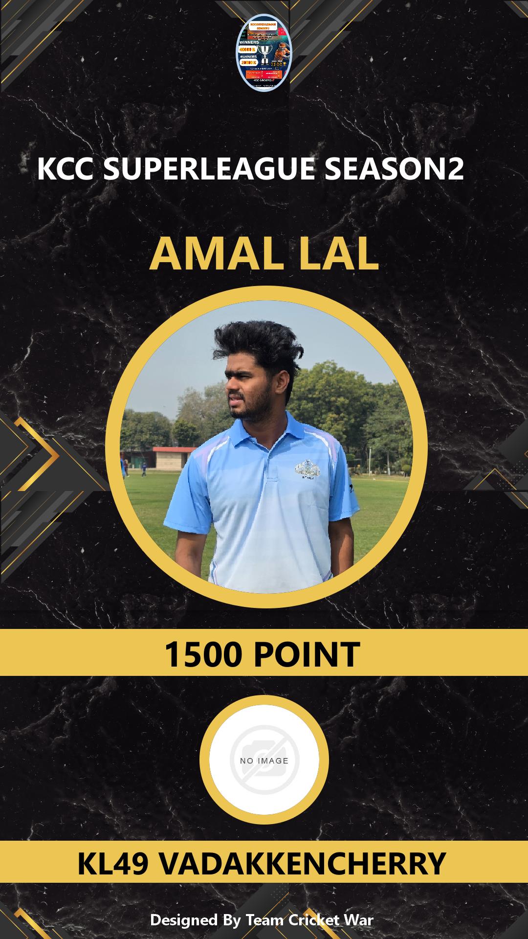 BOWLING ALLROUNDER, AGE : 34 VADAKKENCHERRY Bid Amount : 800 Team : KL49 VADAKKENCHERRY Download ID Card VIEW PROFILE |
