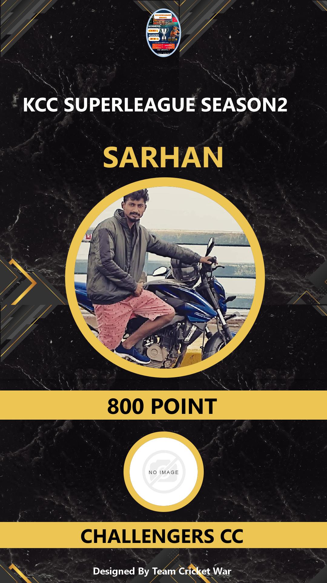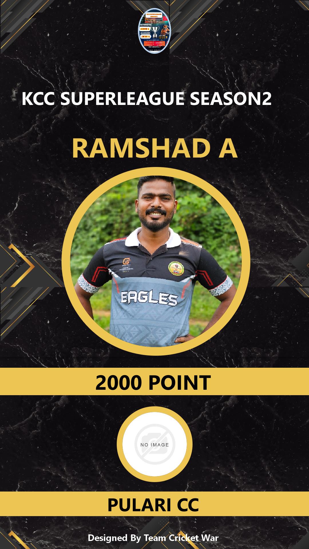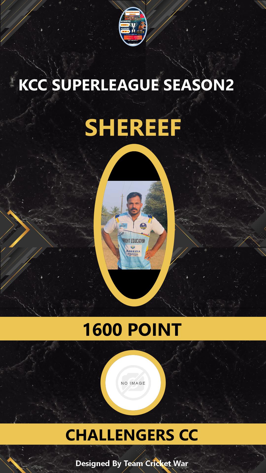 ALLROUNDER, AGE : 30 KIZHAKKENCHERRY Bid Amount : 800 Team : CHALLENGERS CC Download ID Card VIEW PROFILE |