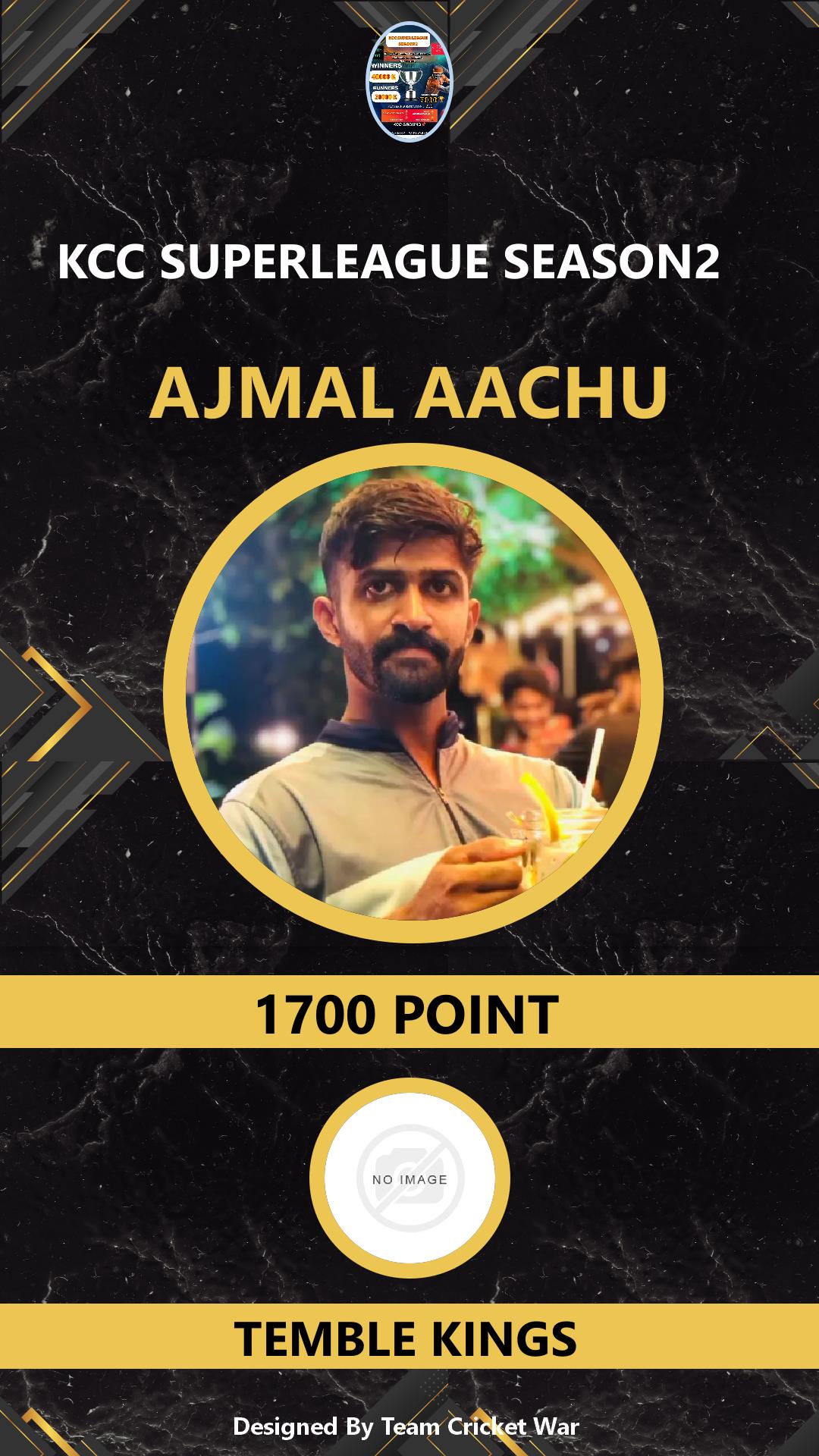 BOWLING ALLROUNDER, AGE : 32 VADAKKENCHERRY Bid Amount : 1700 Team : TEMBLE KINGS Download ID Card VIEW PROFILE |