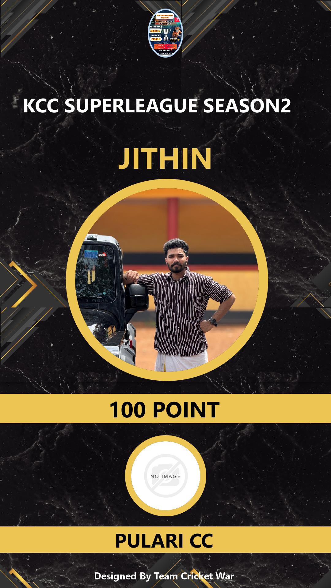 ALLROUNDER, AGE : 30 CHETTITHATAKKAD Bid Amount : 100 Team : PULARI CC Download ID Card VIEW PROFILE |