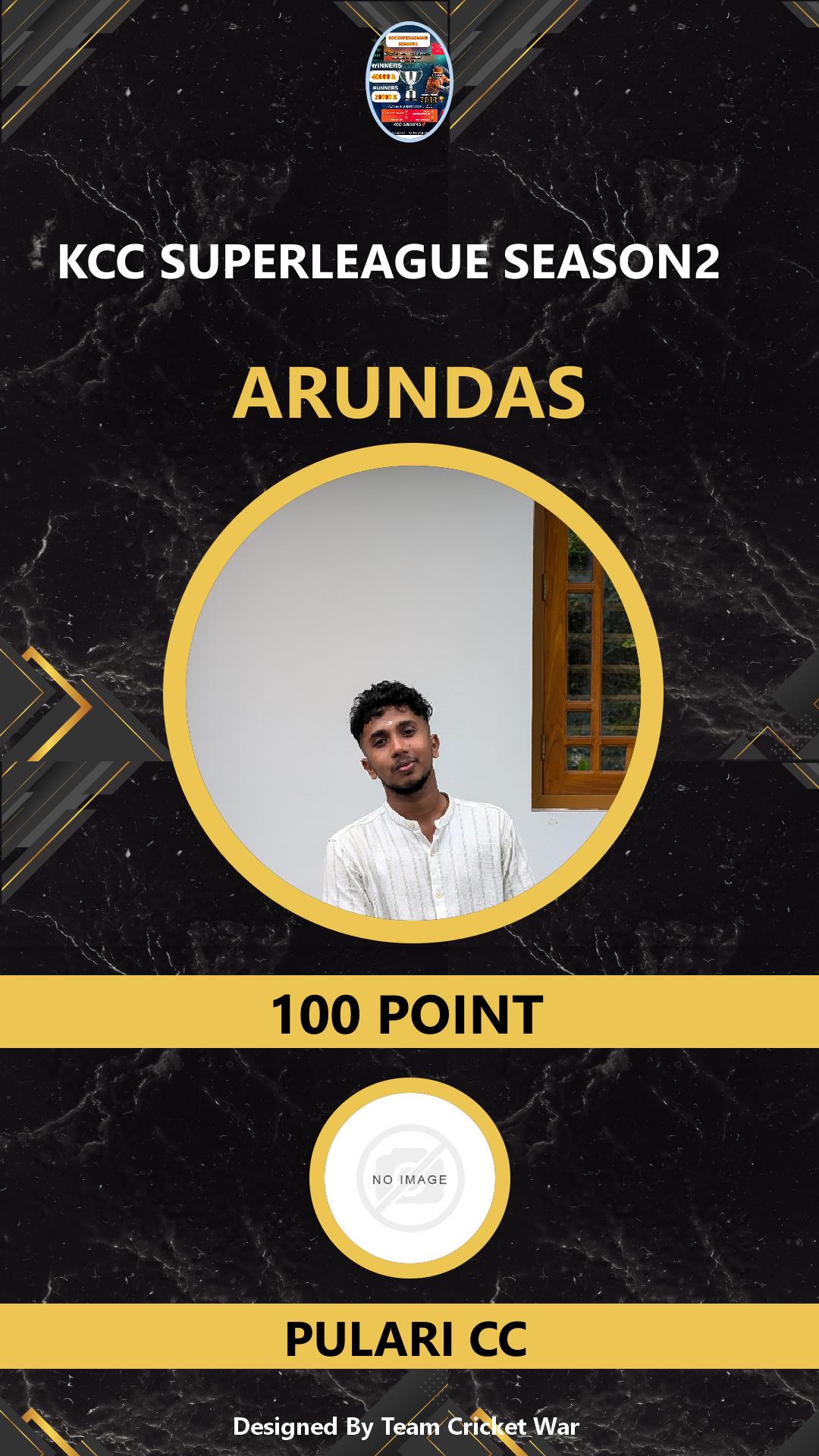 BOWLING ALLROUNDER, AGE : 22 VADAKKUMPADAM Bid Amount : 100 Team : VCC KINGS Download ID Card VIEW PROFILE |