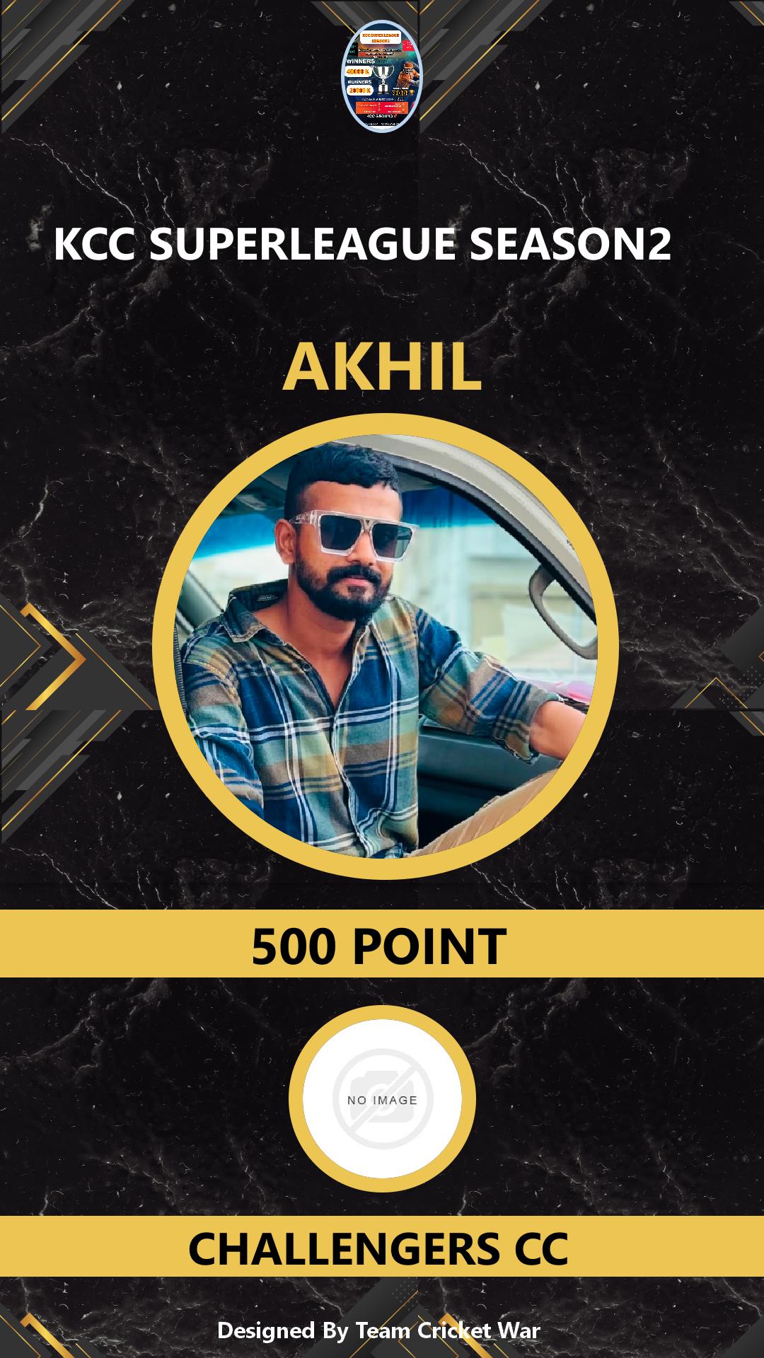 BOWLING ALLROUNDER, AGE : 35 VADAKKENCHERRY Bid Amount : 1600 Team : CHALLENGERS CC Download ID Card VIEW PROFILE |