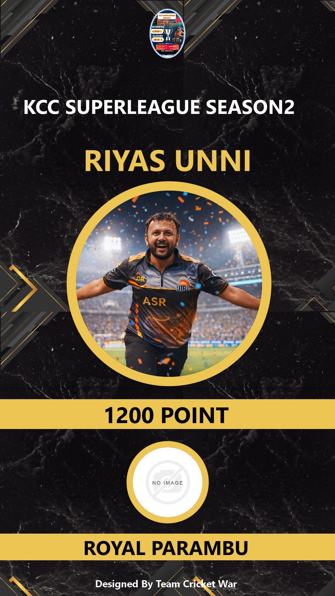 ALLROUNDER, AGE : 38 VADAKKENCHERRY Bid Amount : 1200 Team : ROYAL PARAMBU Download ID Card VIEW PROFILE |