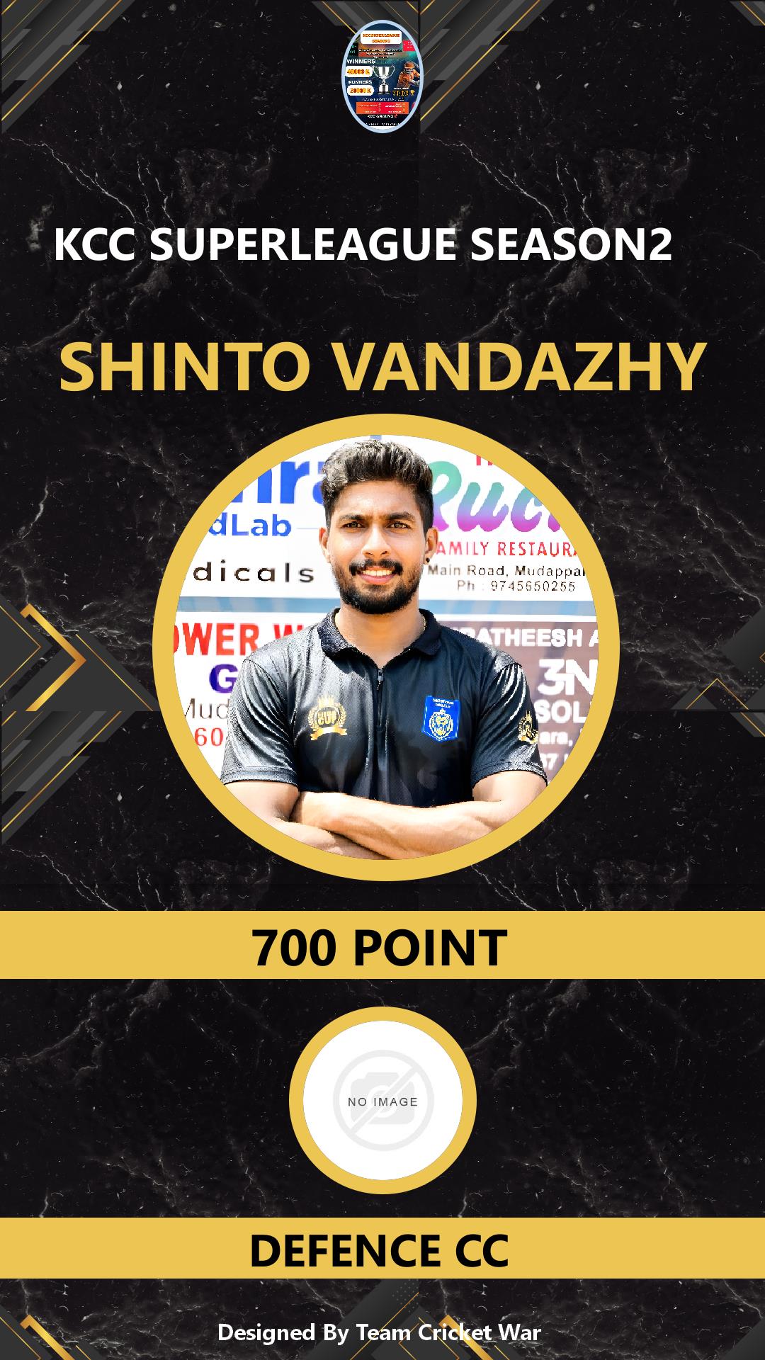BOWLING ALLROUNDER, AGE : 28 VANDAZHY Bid Amount : 500 Team : TEMBLE KINGS Download ID Card VIEW PROFILE |