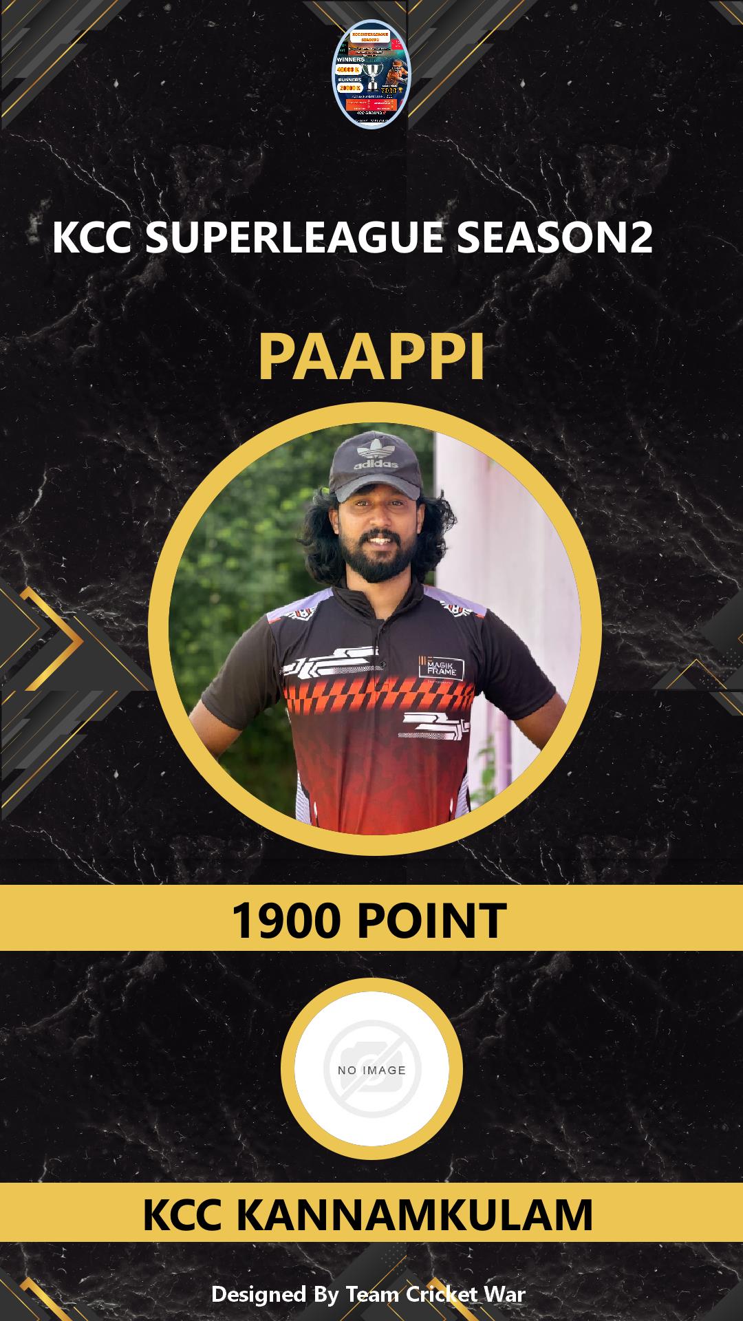BATSMAN, AGE : 25 VADAKKENCHERI Bid Amount : 1300 Team : 420 BROTHERS Download ID Card VIEW PROFILE |