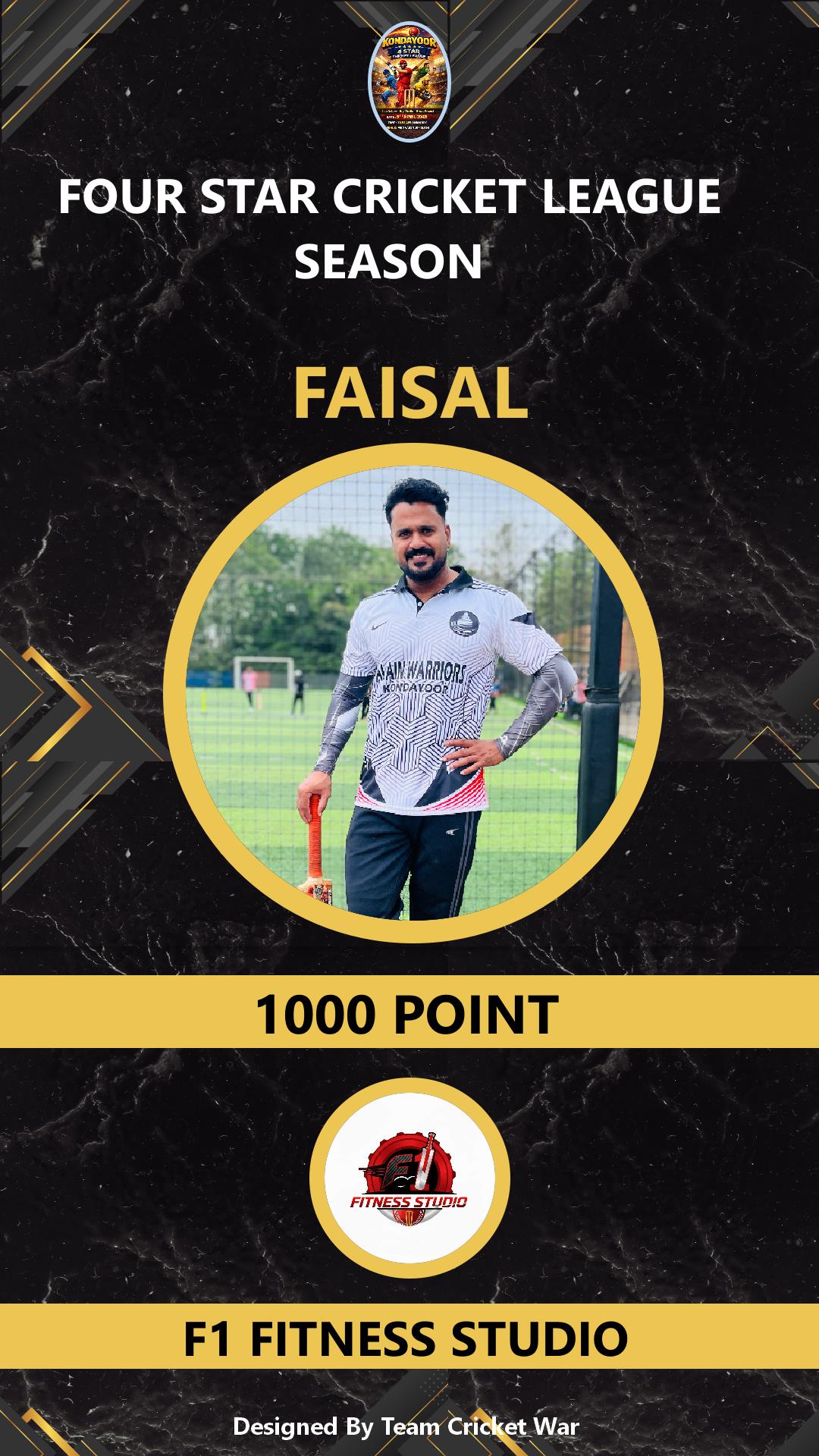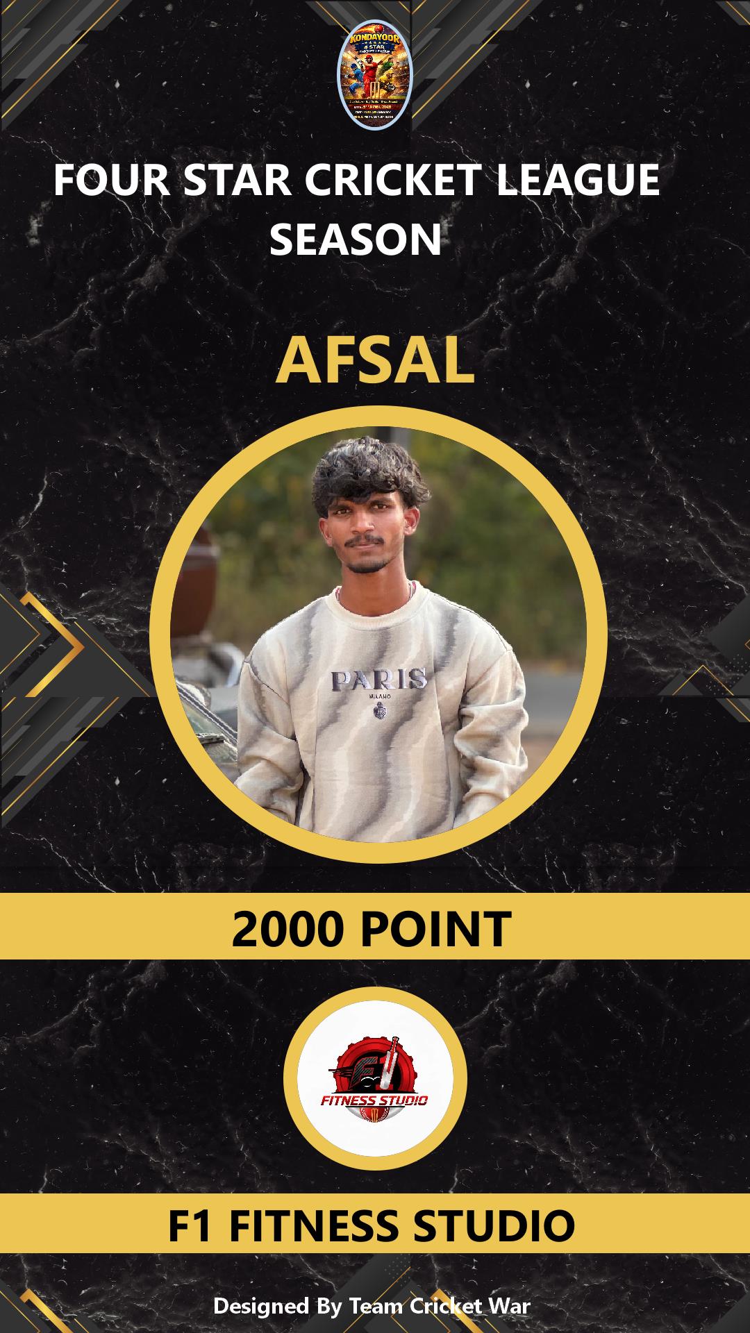 ALLROUNDER, AGE : 35 KONDAYOOR Bid Amount : 1000 Team : F1 FITNESS STUDIO Download ID Card VIEW PROFILE |