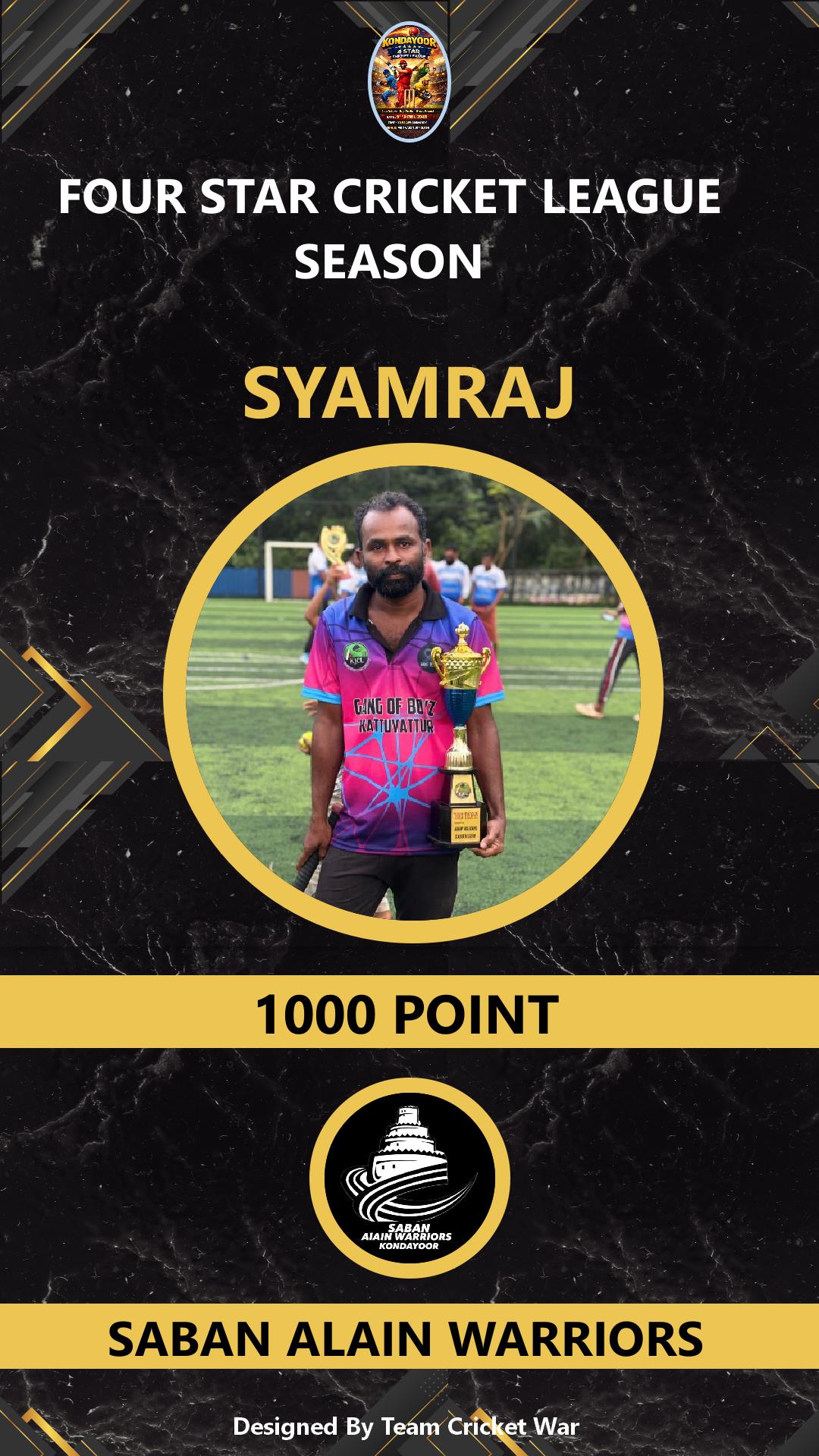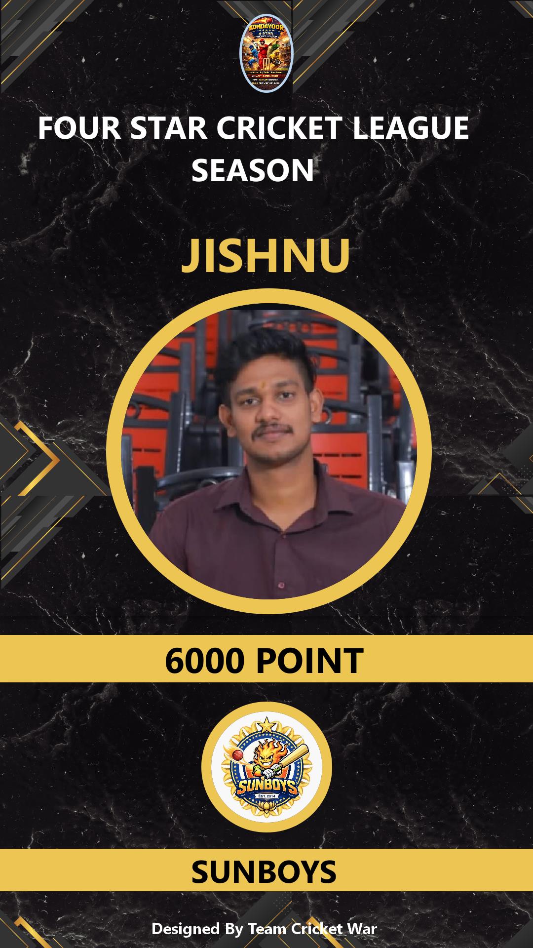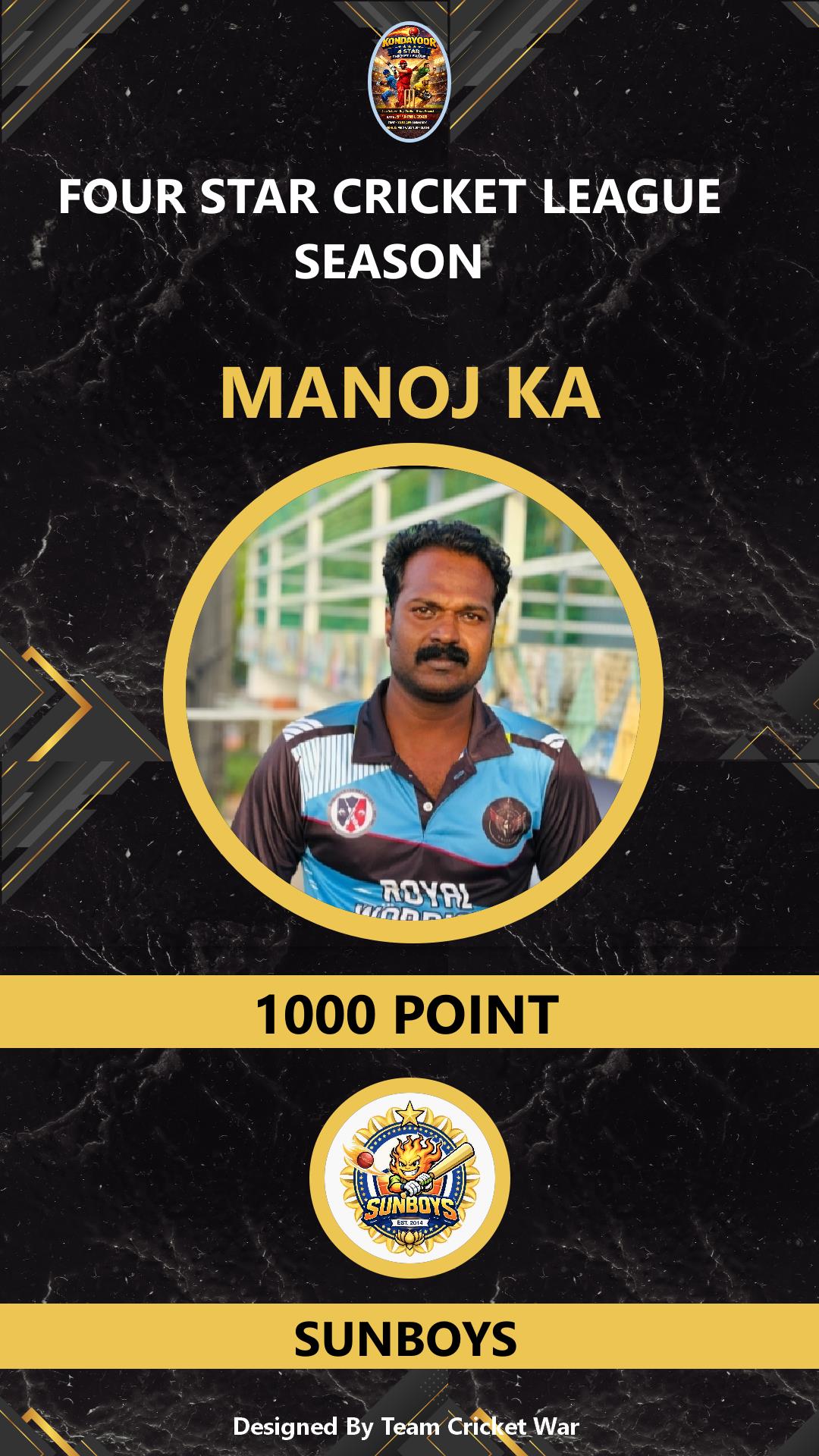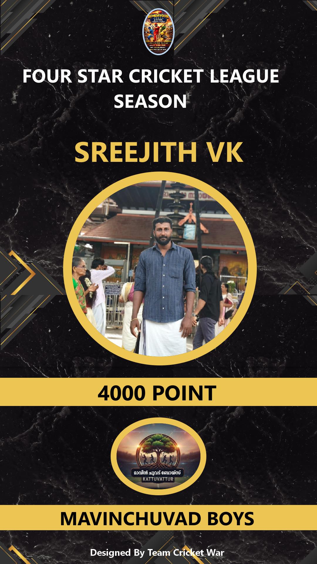 ALLROUNDER, AGE : 35 DESAMANGALM Bid Amount : 26000 Team : SUNBOYS Download ID Card VIEW PROFILE |