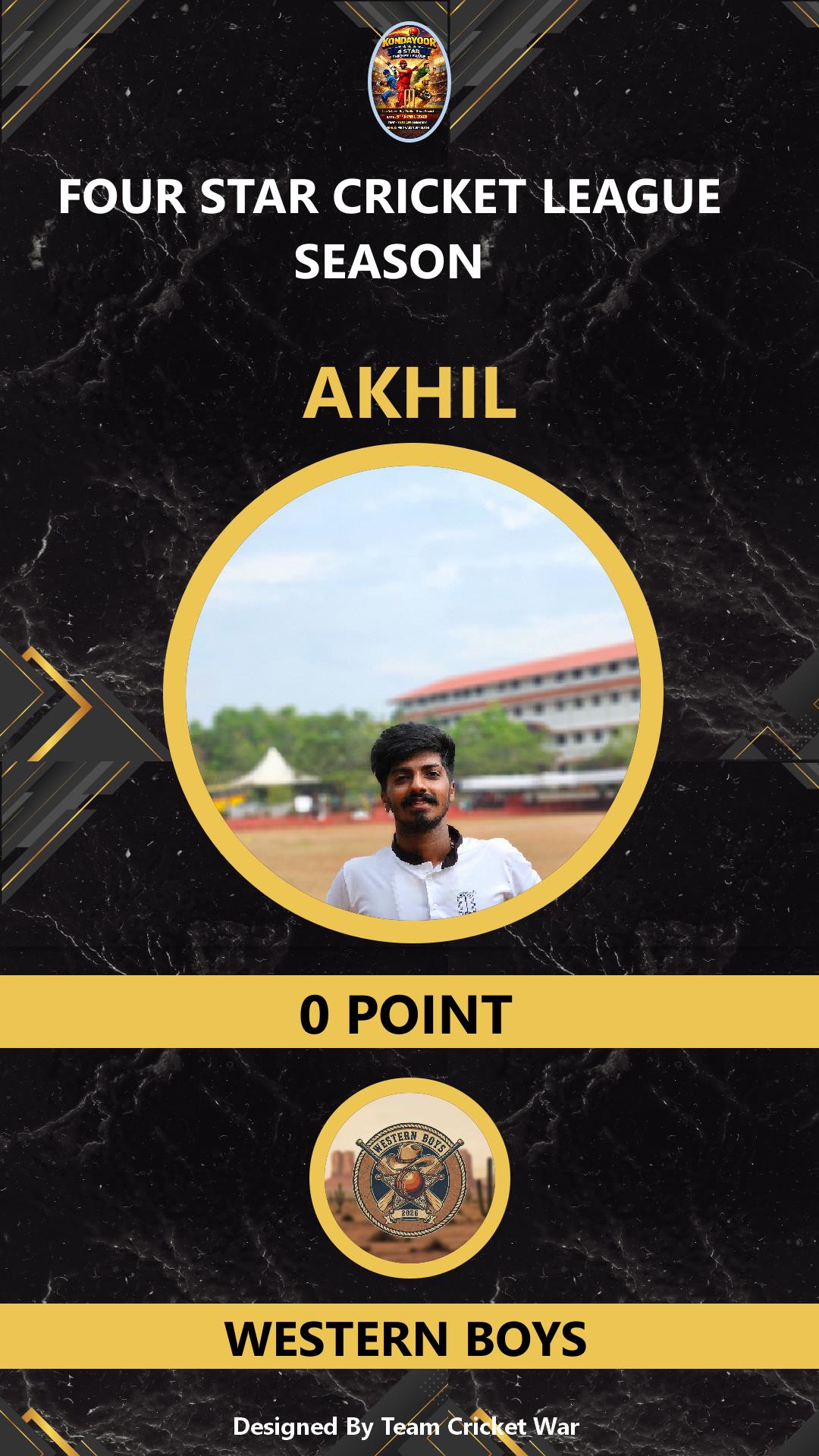 ALLROUNDER, AGE : 24 KADUKASSERY Bid Amount : 0 Team : WESTERN BOYS Download ID Card VIEW PROFILE |