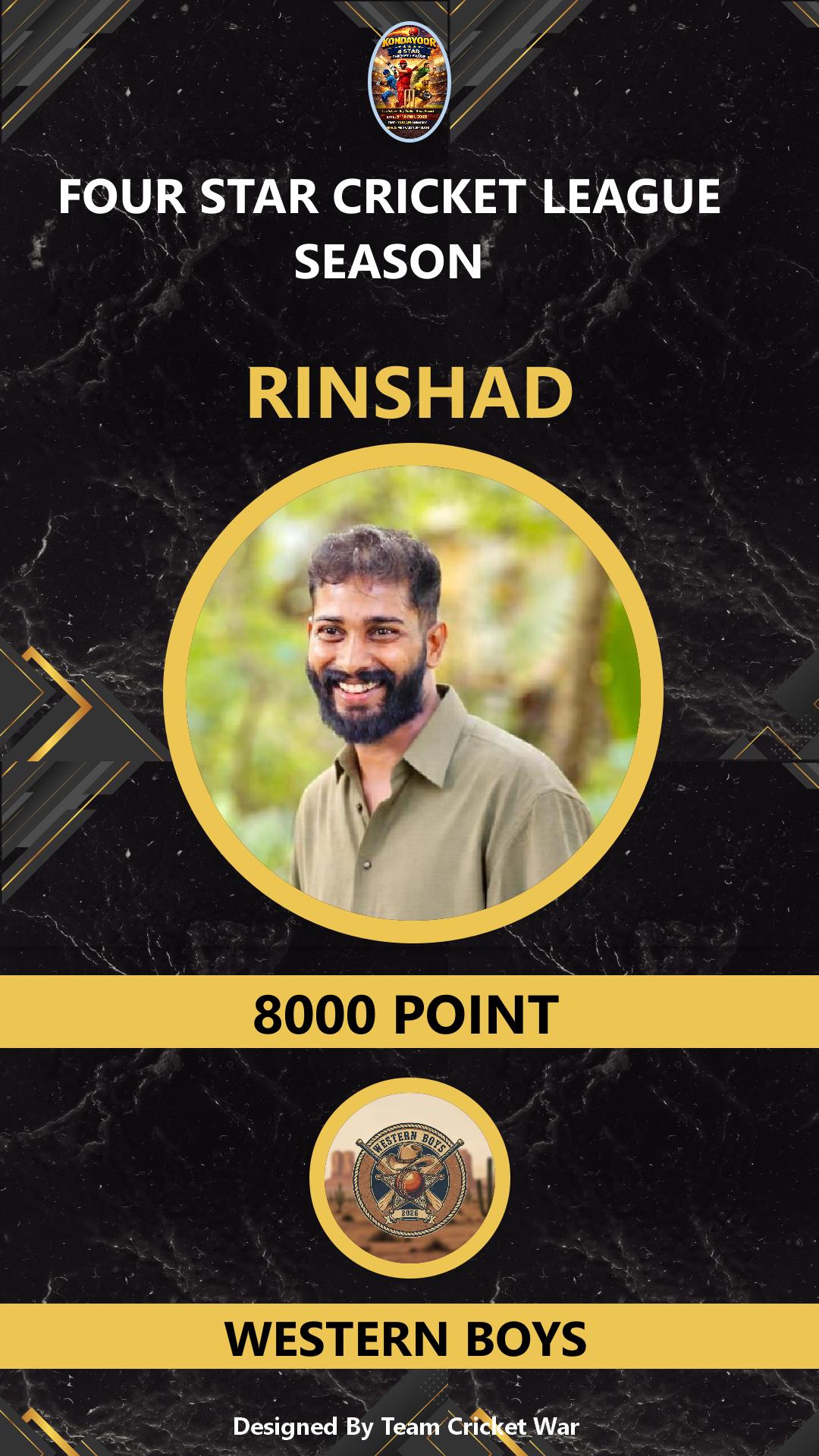 BATSMAN, AGE : 41 VARAVATTOOOR Bid Amount : 1000 Team : WESTERN BOYS Download ID Card VIEW PROFILE |