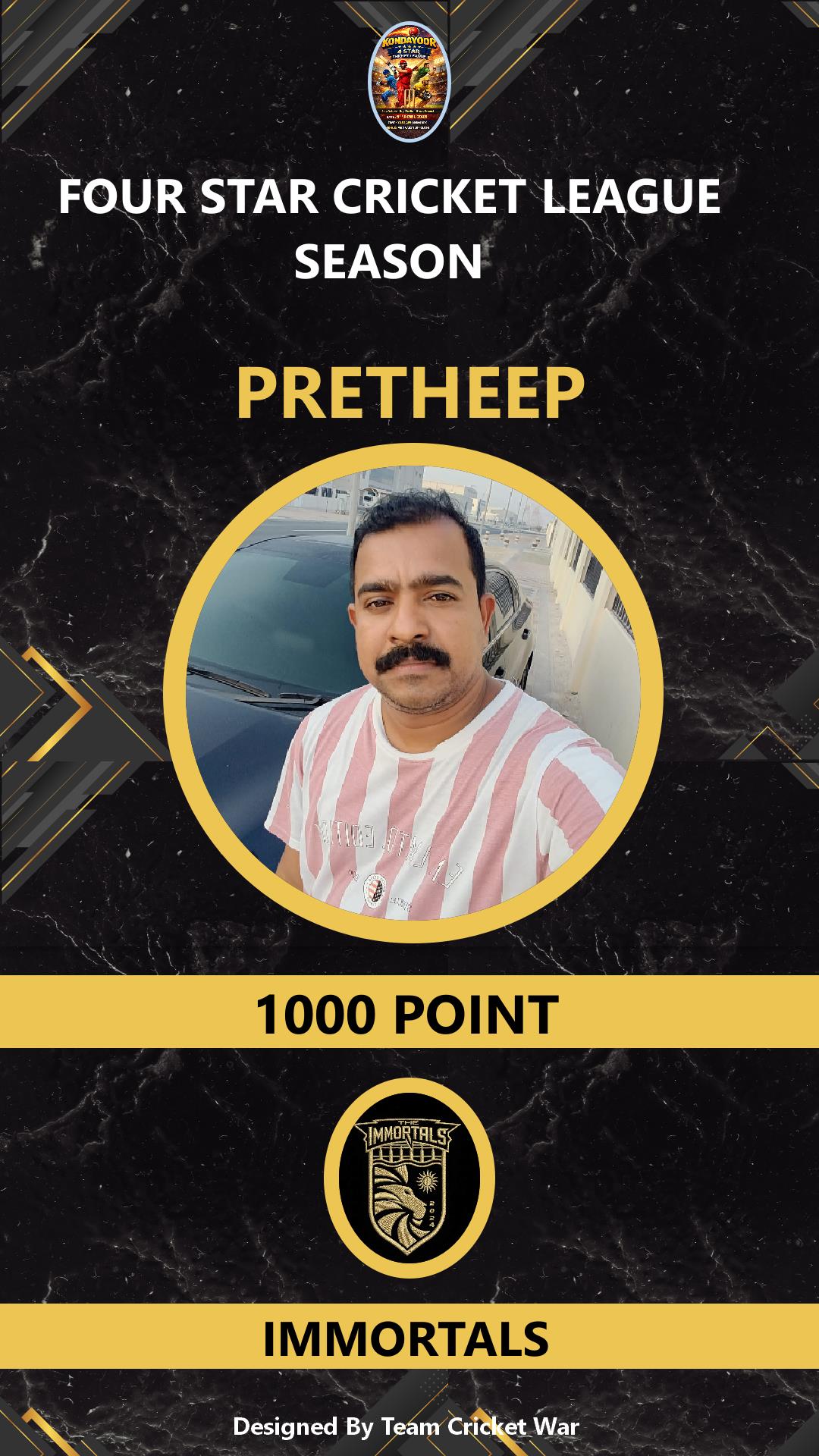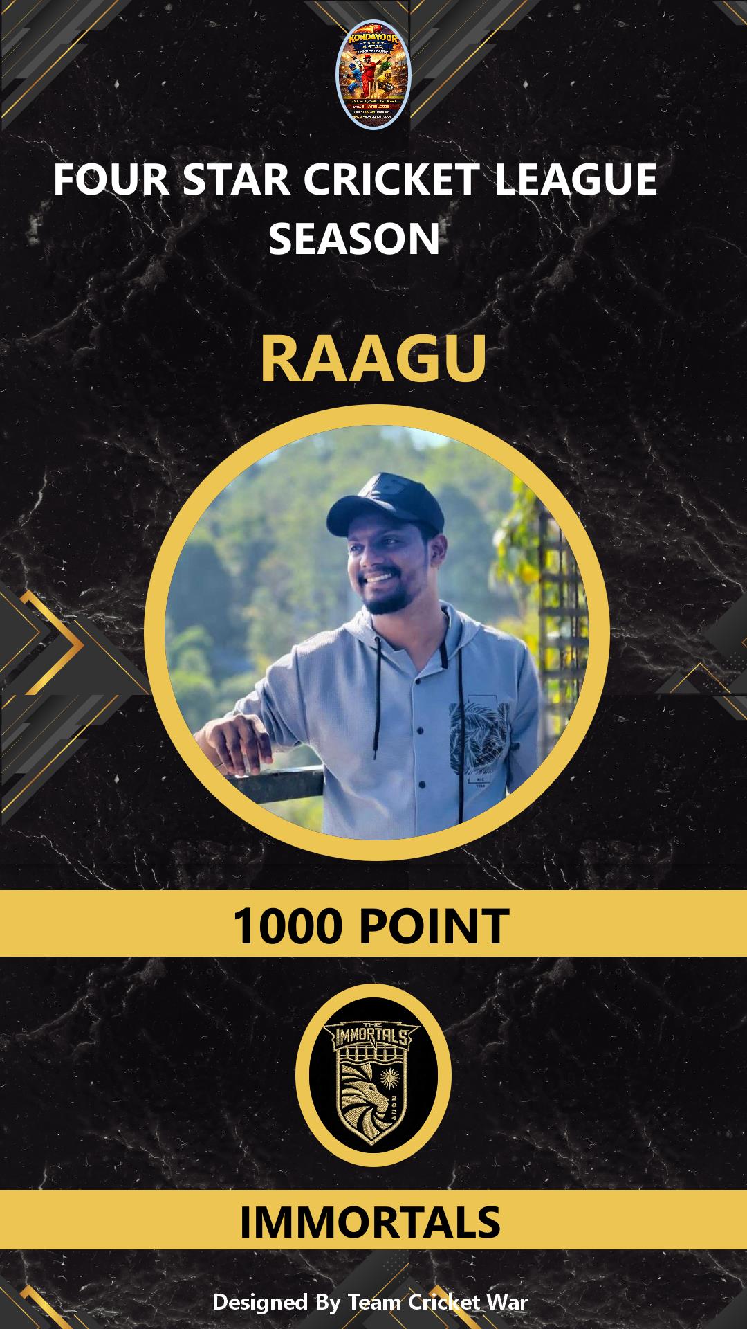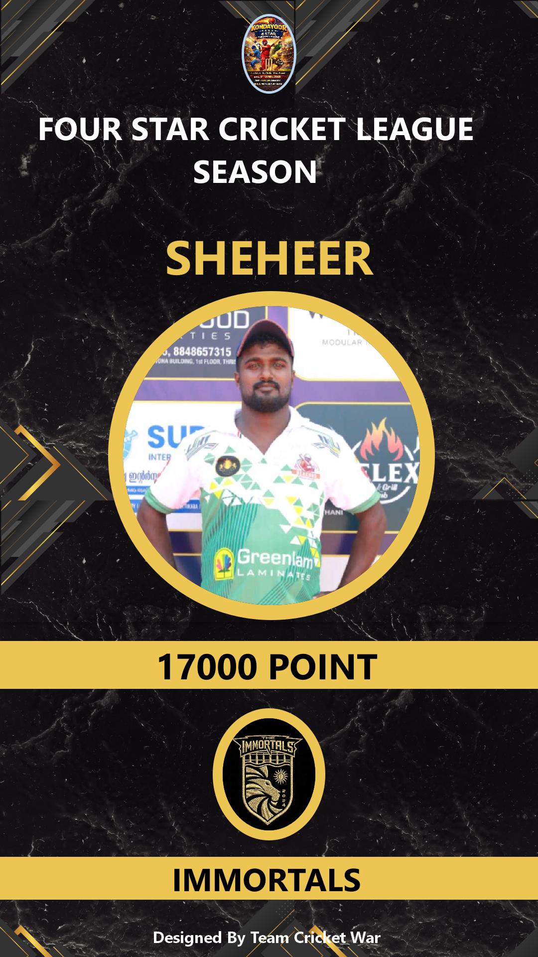 ALLROUNDER, AGE : 32 KONDAYOOR Bid Amount : 4000 Team : IMMORTALS Download ID Card VIEW PROFILE |