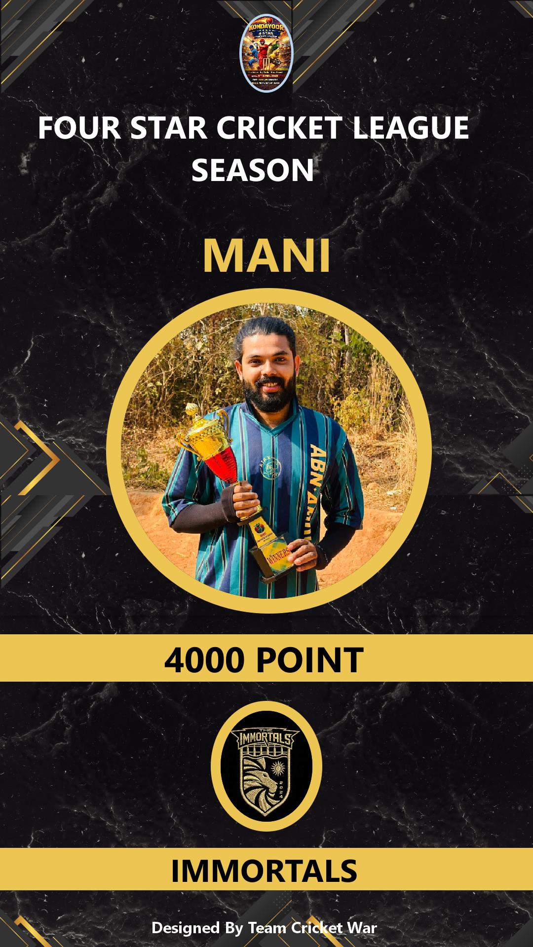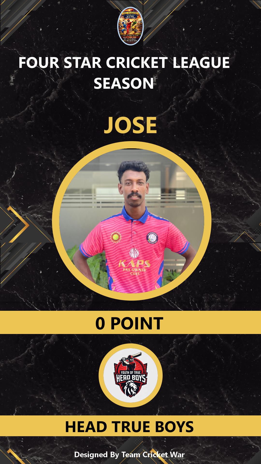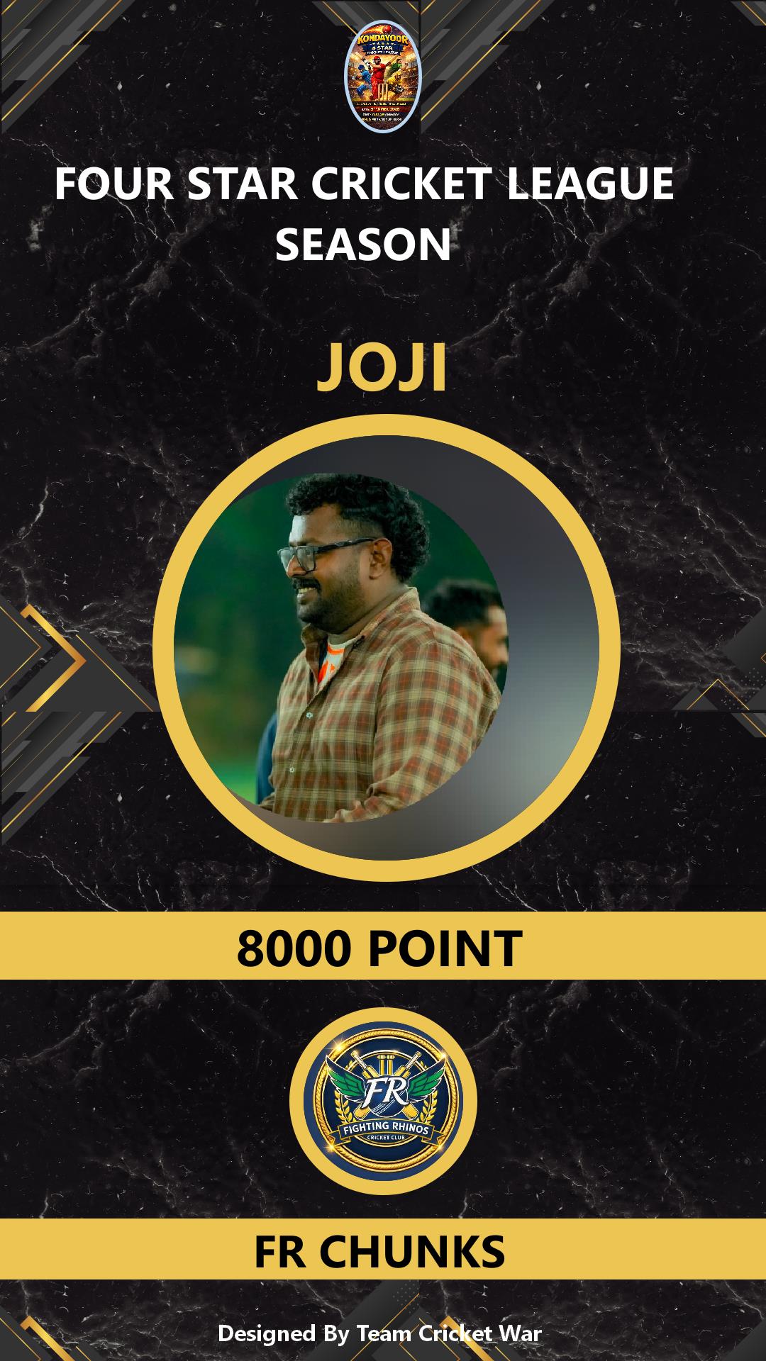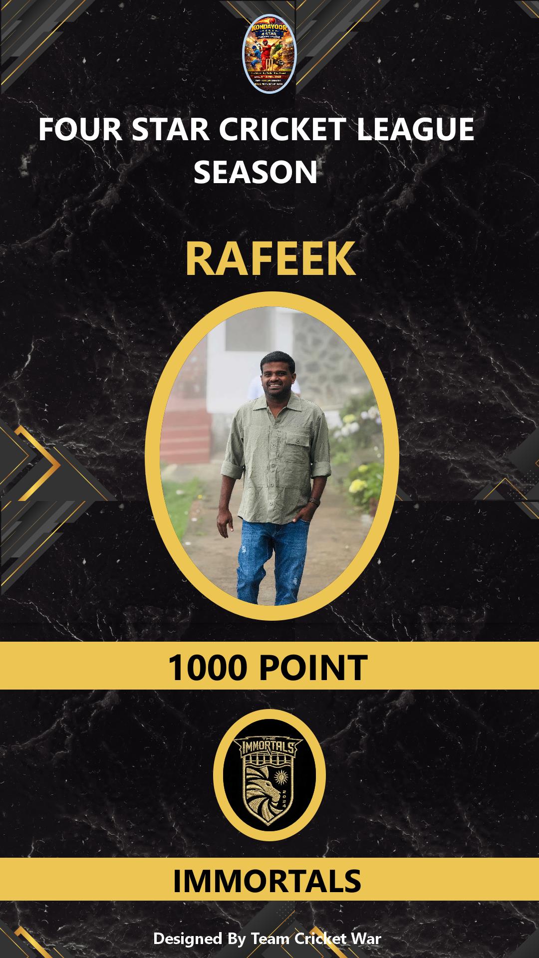 ALLROUNDER, AGE : 32 KONDAYOOR Bid Amount : 4000 Team : IMMORTALS Download ID Card VIEW PROFILE |