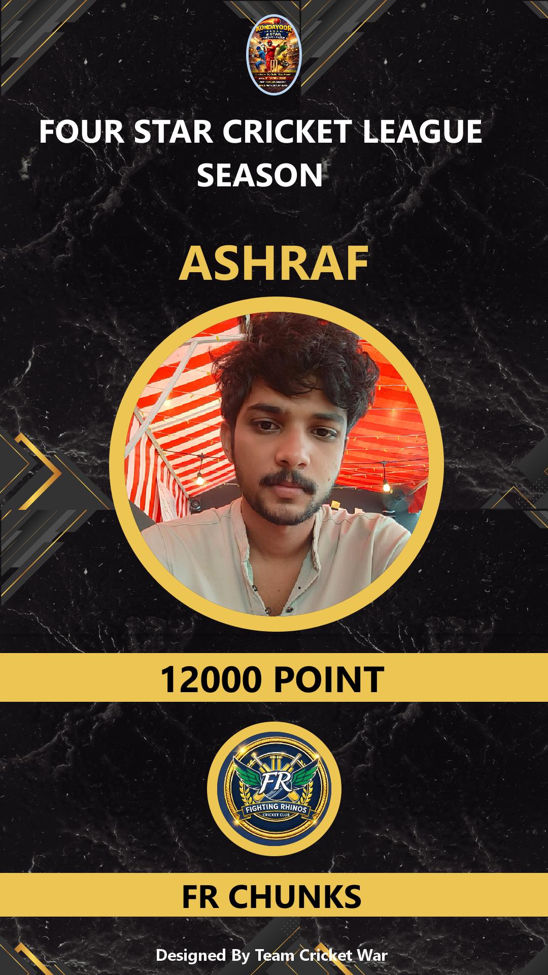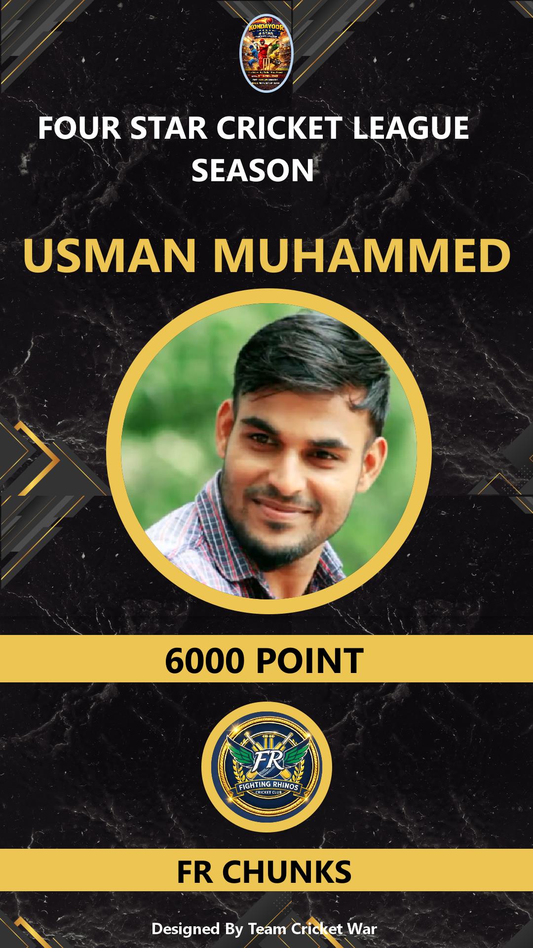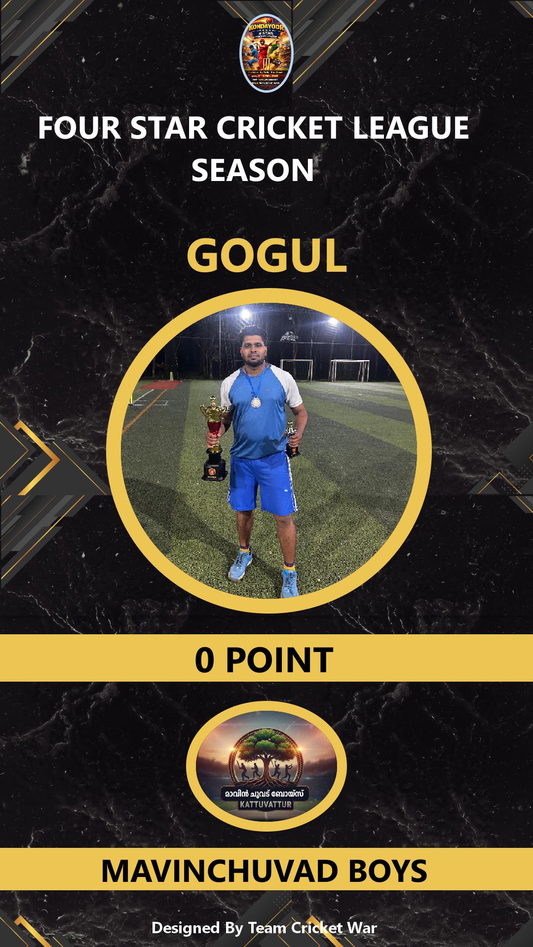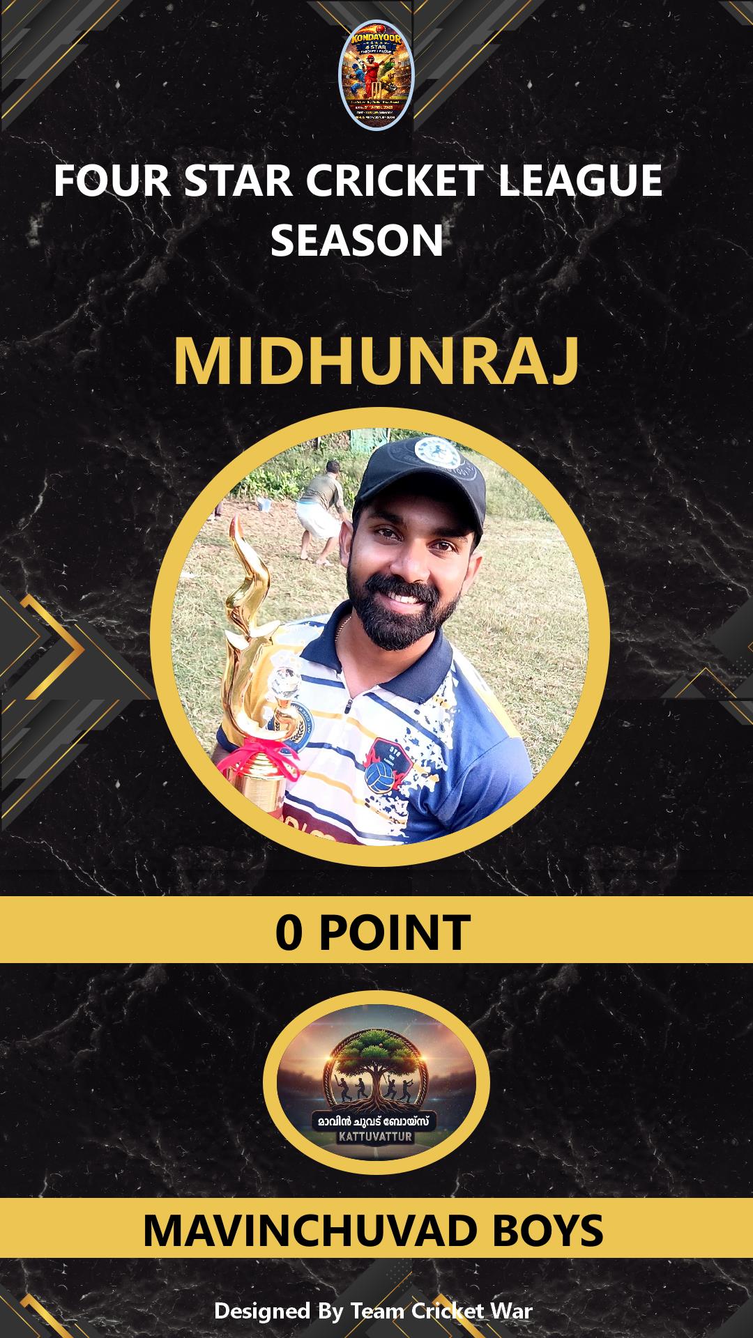 BATSMAN, AGE : 1 VARAVATTOOOR Bid Amount : 0 Team : FR CHUNKS Download ID Card VIEW PROFILE |