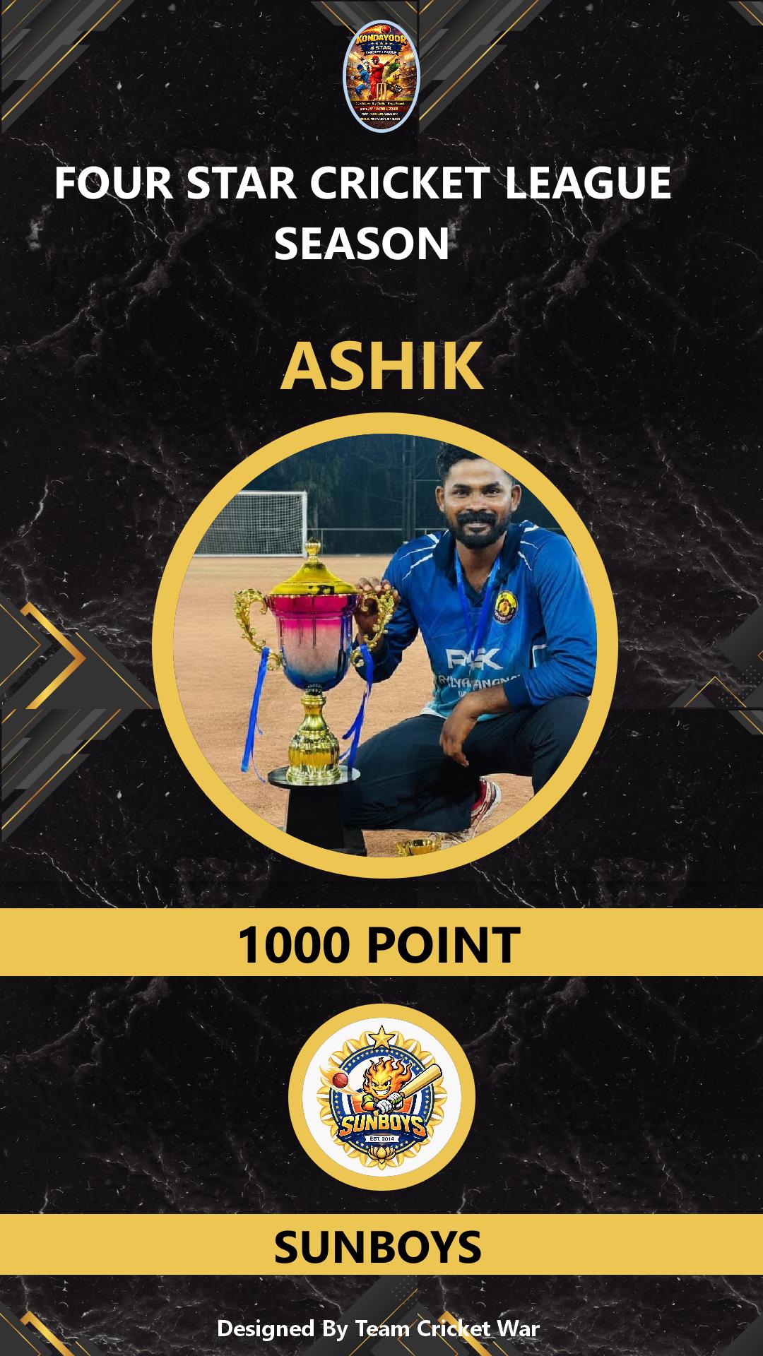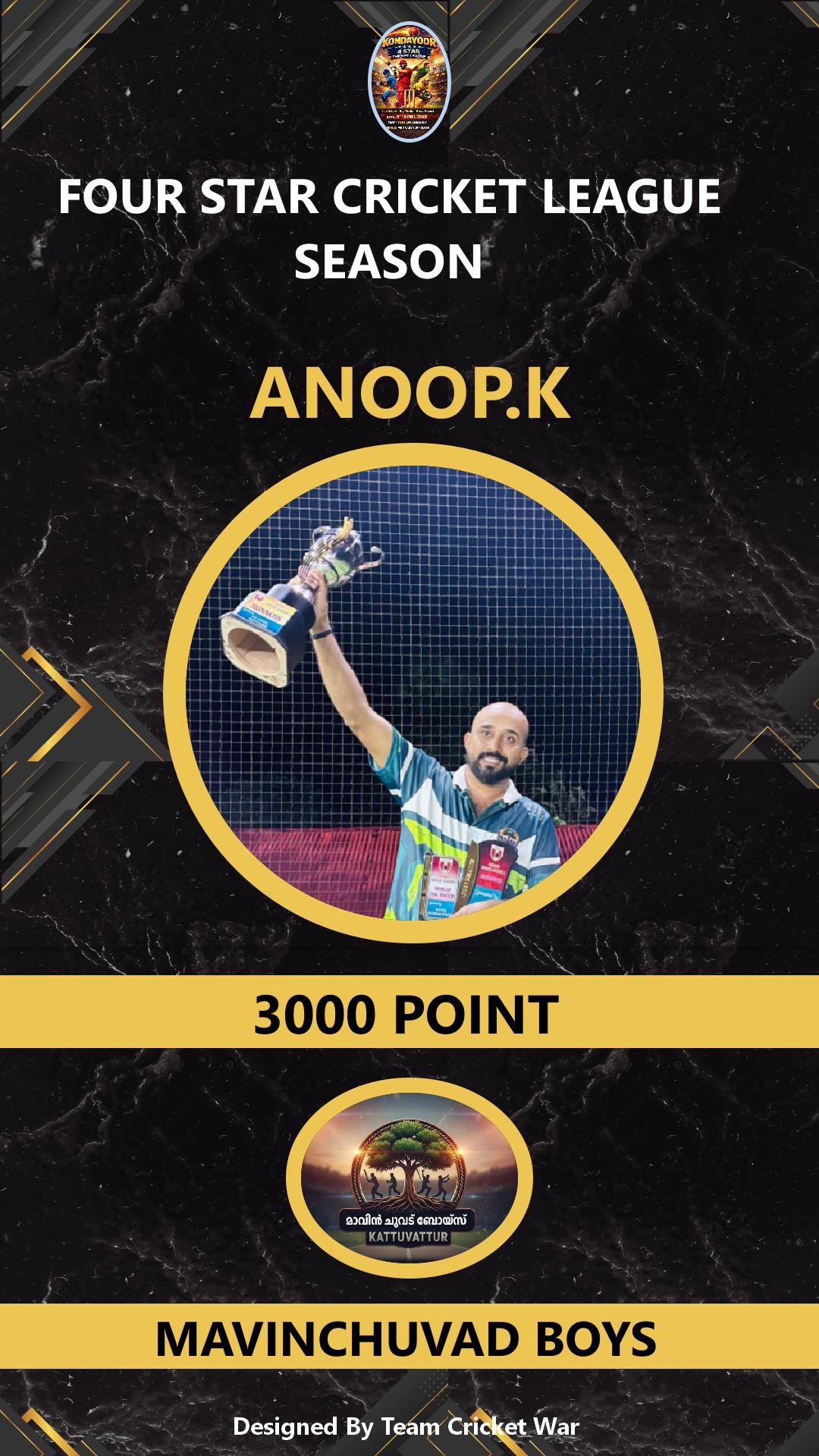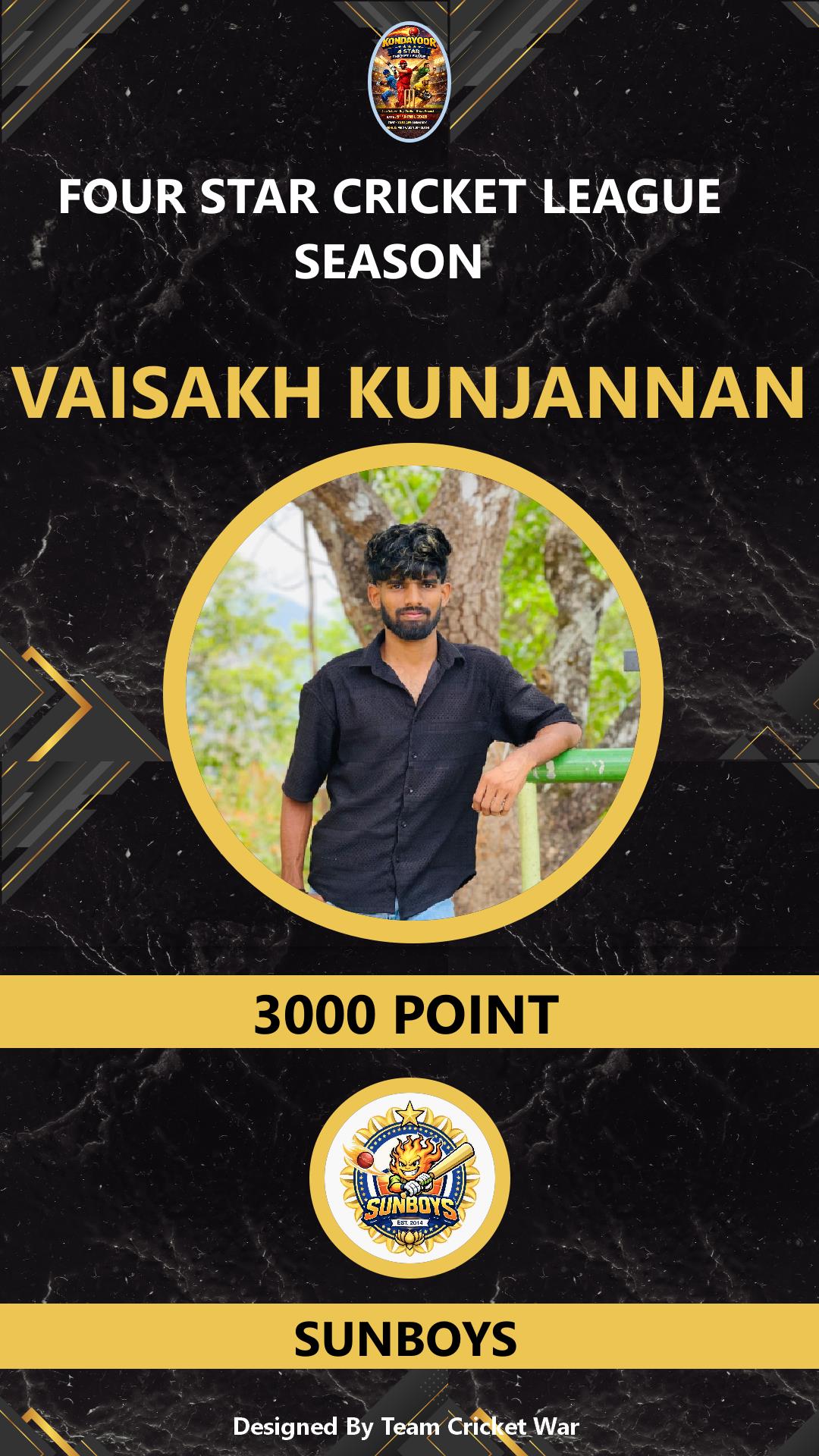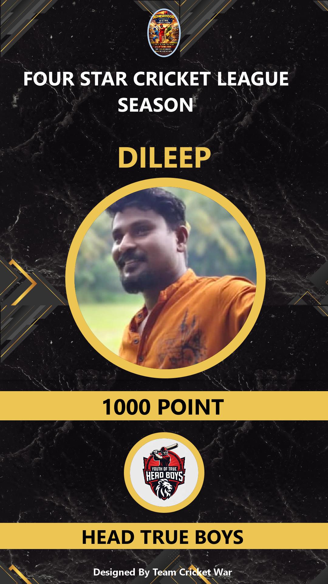 BATSMAN, AGE : 26 KONDAYOOR Bid Amount : 1000 Team : WESTERN BOYS Download ID Card VIEW PROFILE |