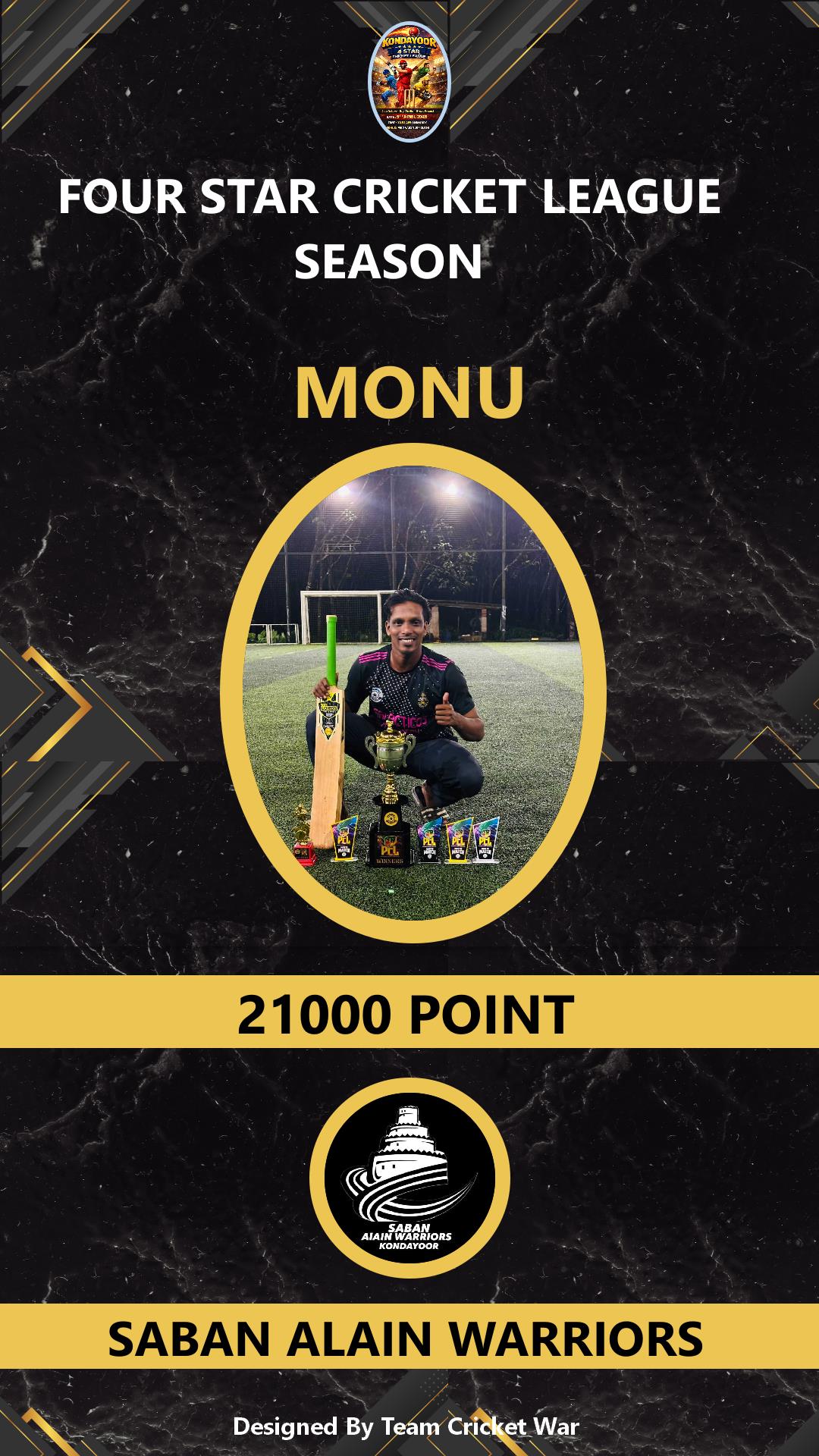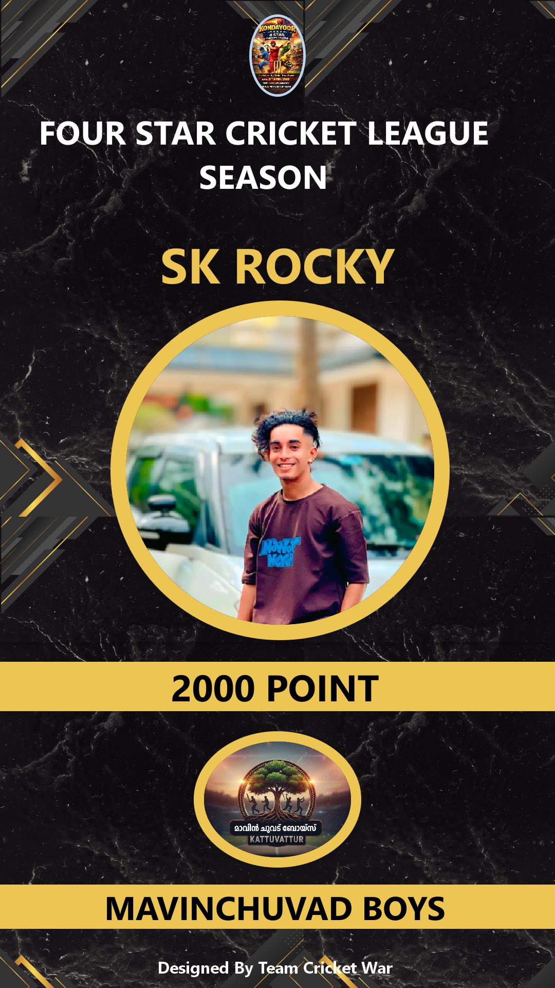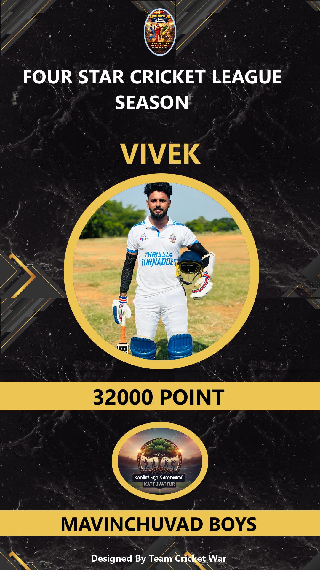 BATSMAN, AGE : 1 DESAMANGALAM Bid Amount : 2000 Team : MAVINCHUVAD BOYS Download ID Card VIEW PROFILE |