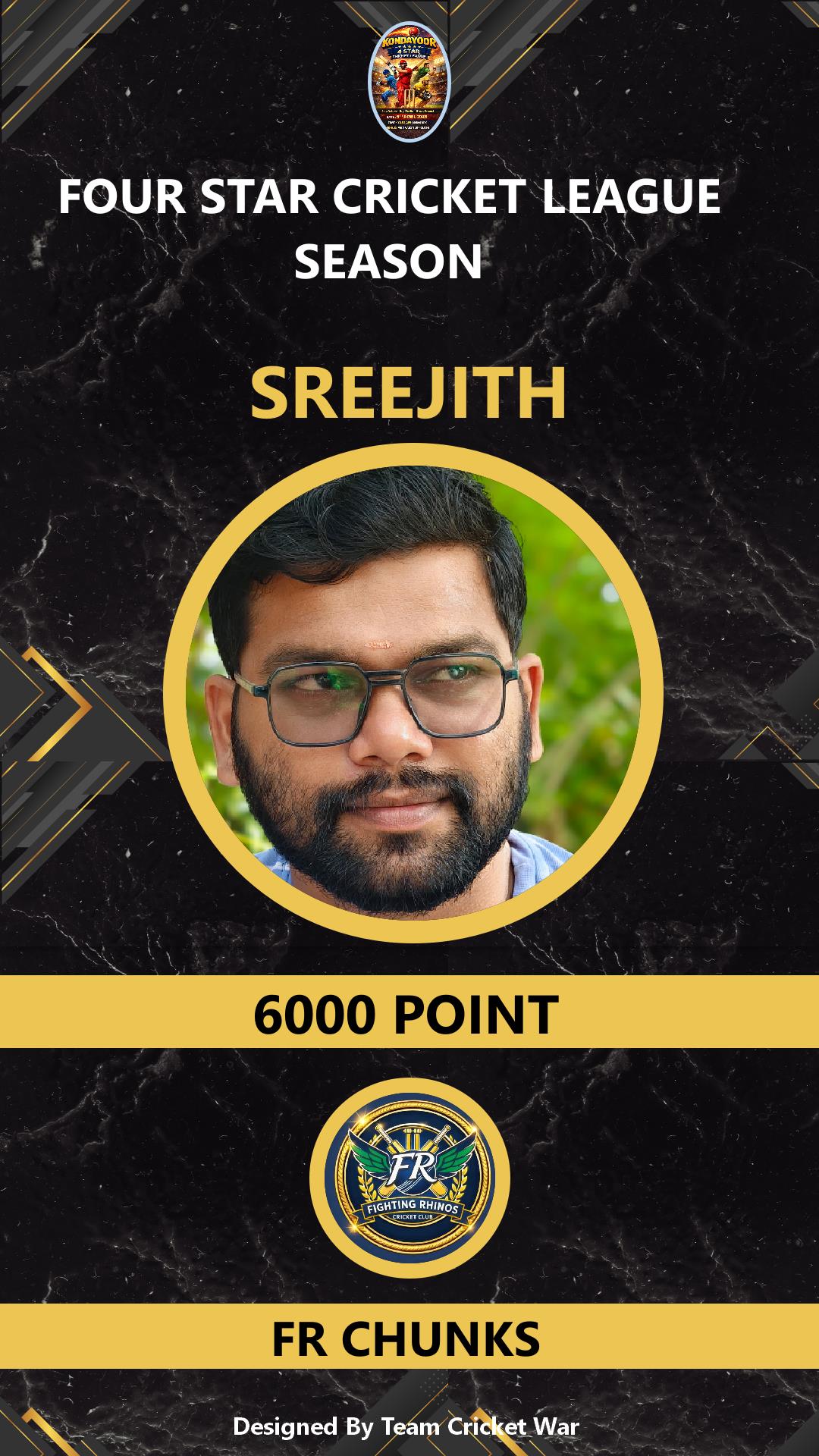 BATSMAN, AGE : 32 THALASSERY Bid Amount : 8000 Team : FR CHUNKS Download ID Card VIEW PROFILE |