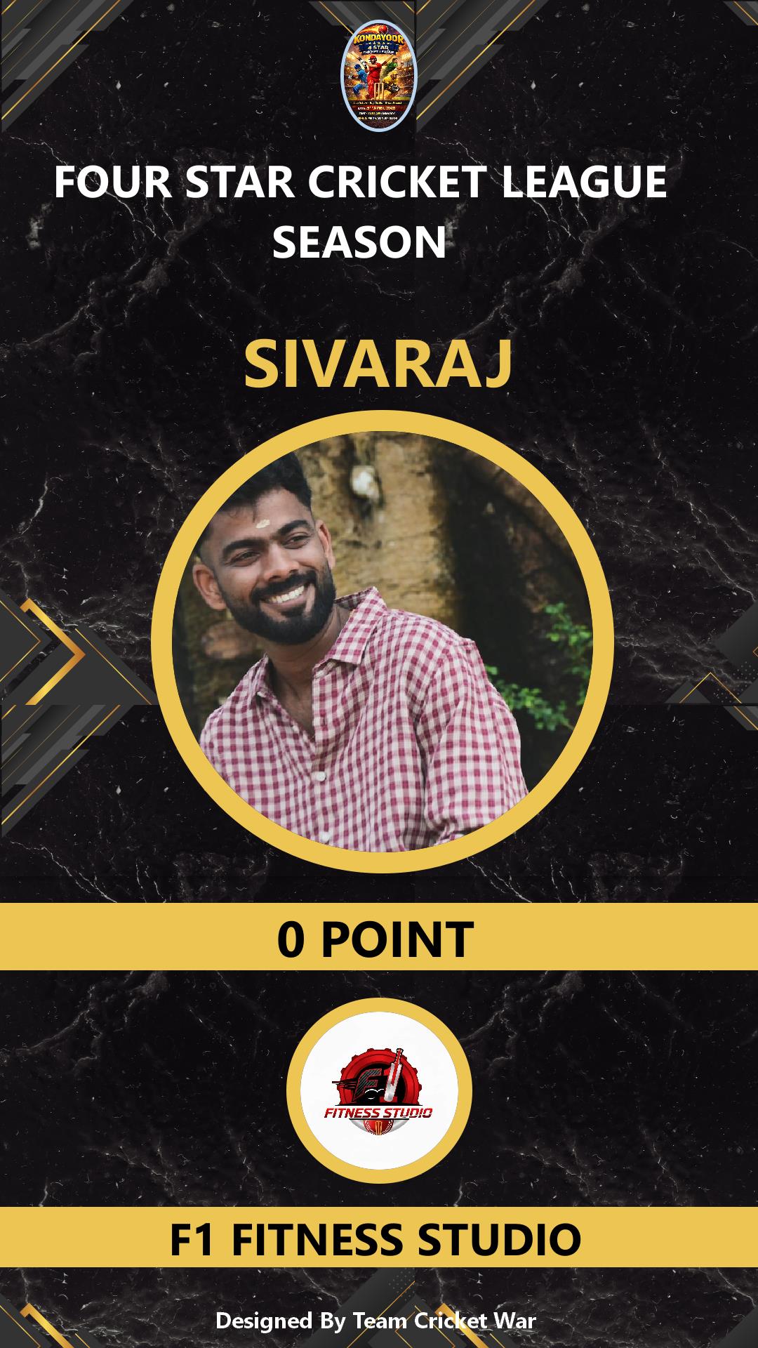 BATTING ALLROUNDER, AGE : 31 VARAVATOOR Bid Amount : 3000 Team : F1 FITNESS STUDIO Download ID Card VIEW PROFILE |