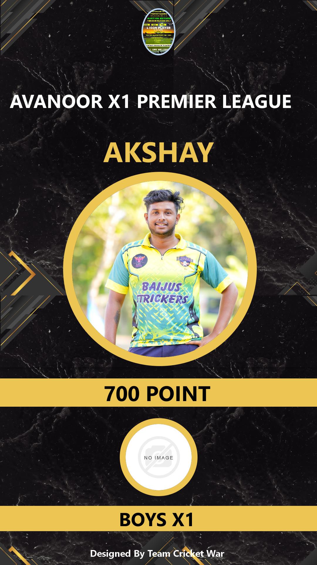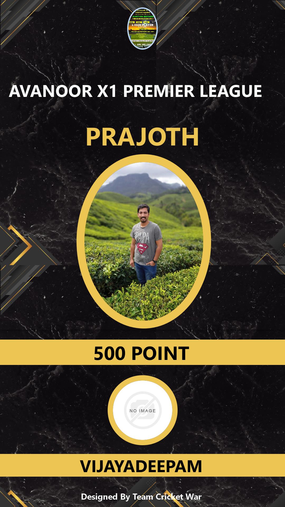 BOWLING ALLROUNDER, AGE : 29 AVANOOR Bid Amount : 500 Team : CHOCO HUB Download ID Card VIEW PROFILE |
