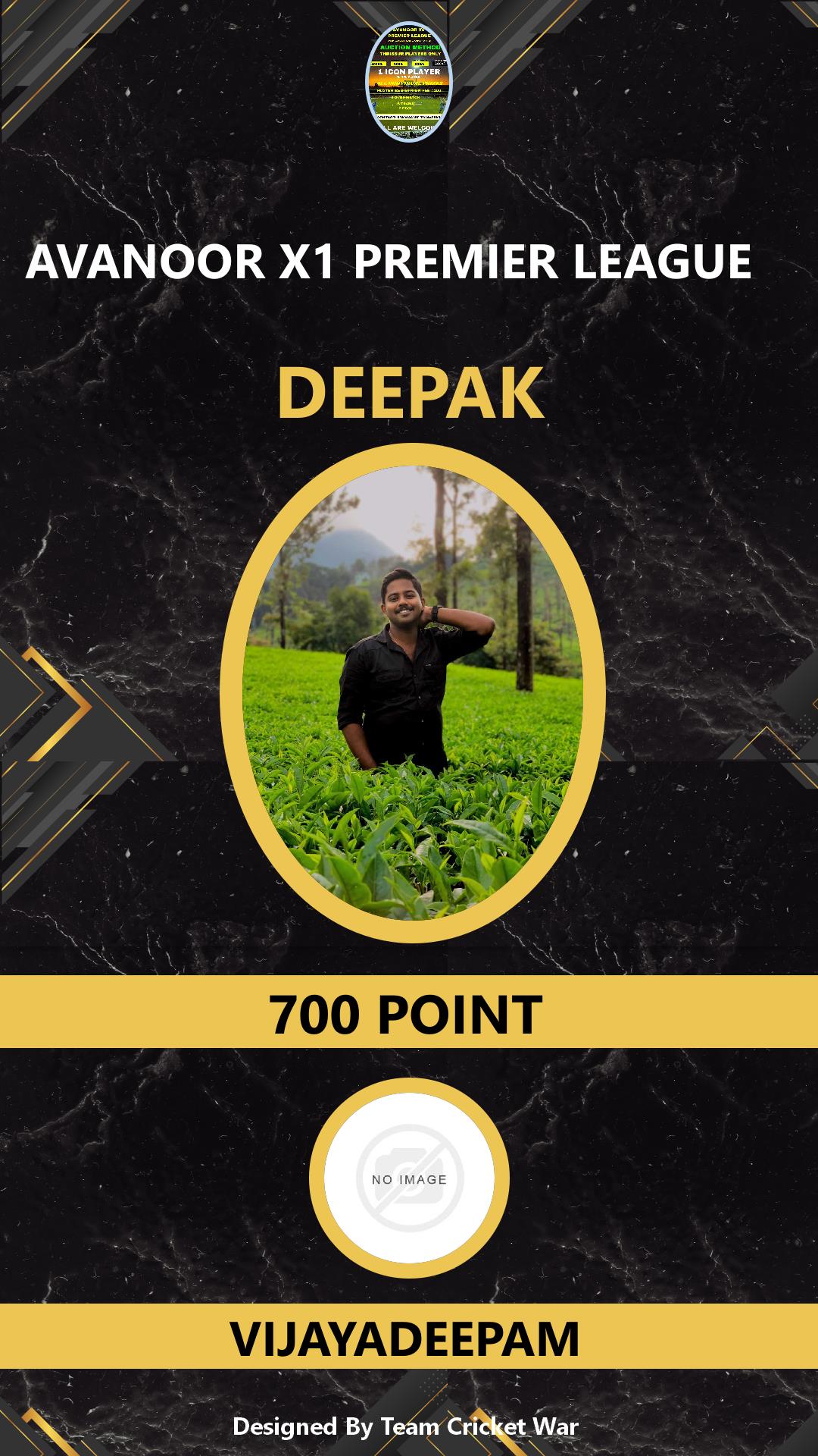 BATSMAN, AGE : 35 AYYANTHOLE Bid Amount : 1400 Team : VIJAYADEEPAM Download ID Card VIEW PROFILE |