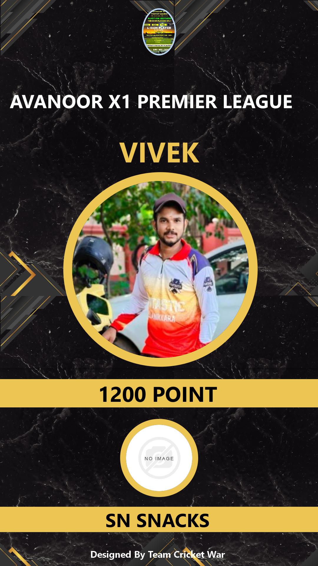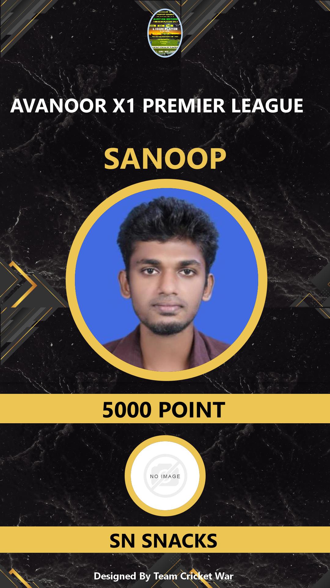 ALLROUNDER, AGE : 28 AVANOOR Bid Amount : 2000 Team : SN SNACKS Download ID Card VIEW PROFILE |