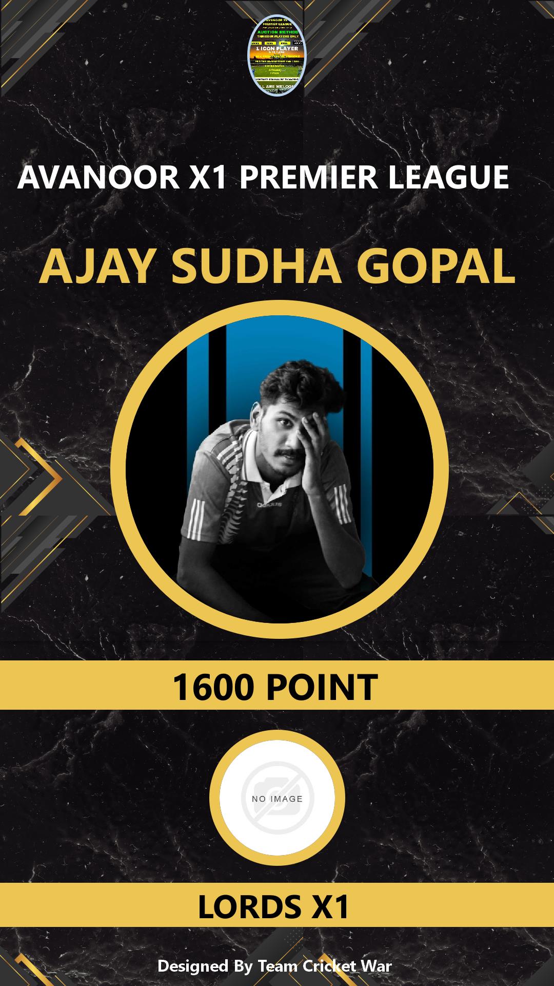 BATTING ALLROUNDER, AGE : 35 AVANOOR Bid Amount : 500 Team : BOYS X1 Download ID Card VIEW PROFILE |