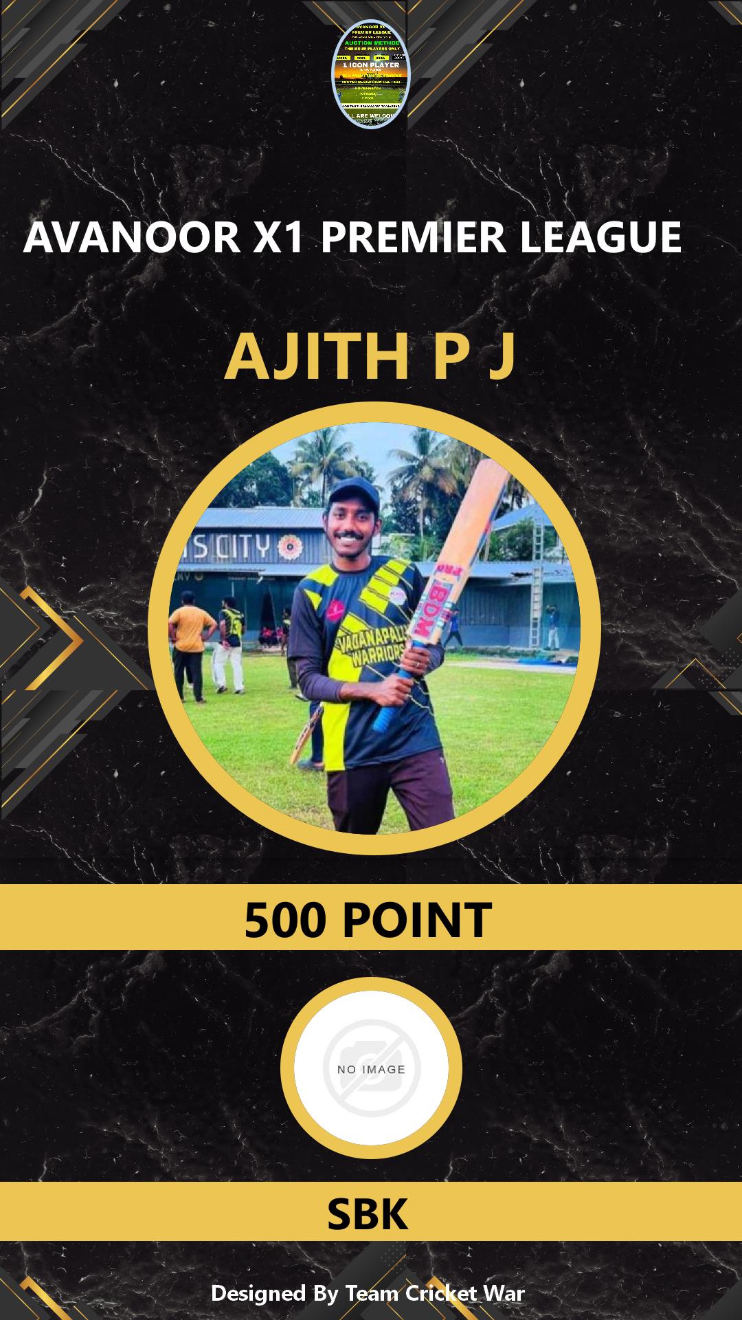 BOWLING ALLROUNDER, AGE : 28 AVANOOR Bid Amount : 500 Team : CHOCO HUB Download ID Card VIEW PROFILE |