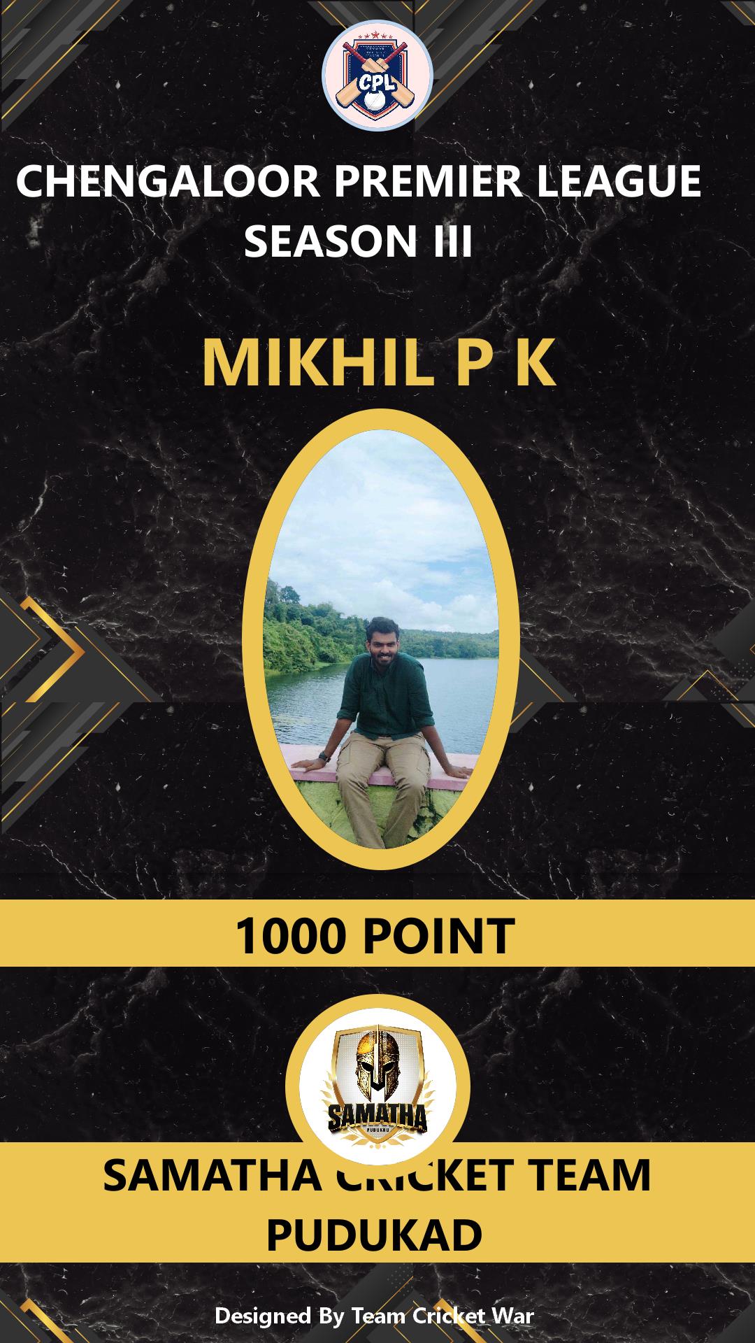 BATTING ALLROUNDER, AGE : 24 MUTTITHADI Bid Amount : 2400 Team : STAR LIGHT MUTTITHADI Download ID Card VIEW PROFILE |