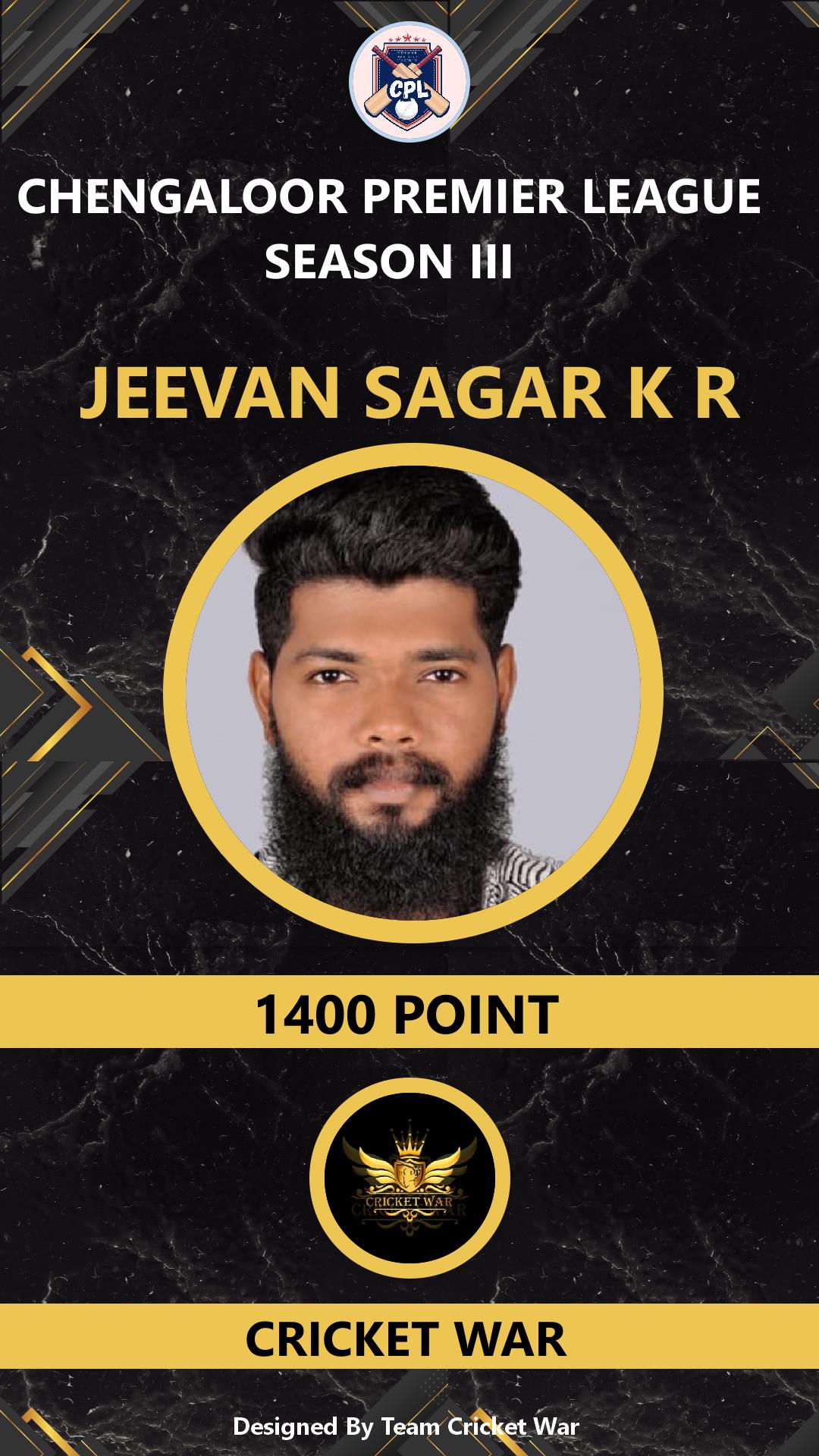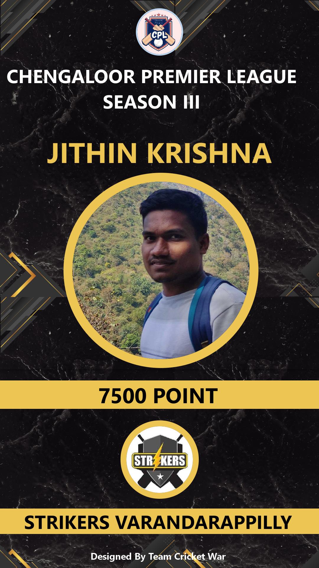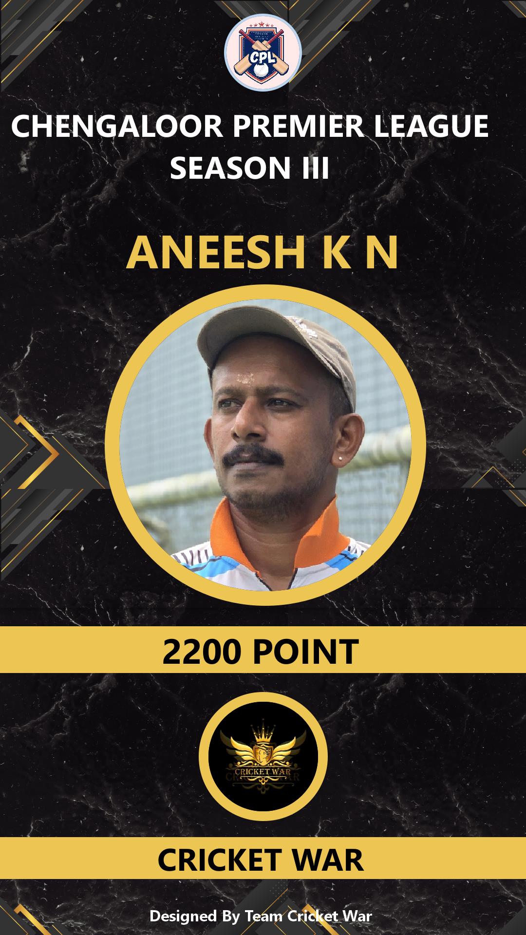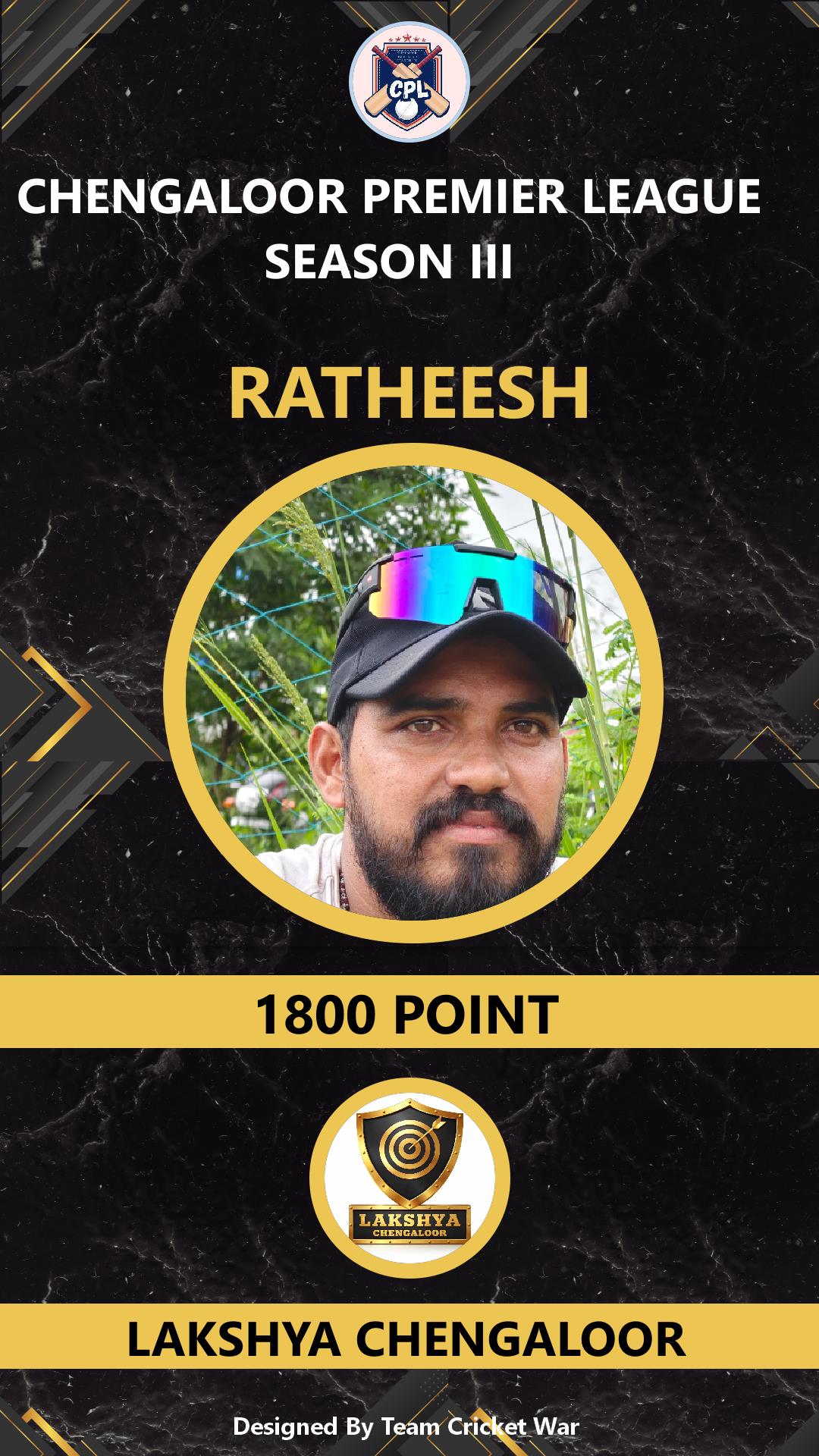 BATSMAN, AGE : 34 CHENGALOOR Bid Amount : 1400 Team : CRICKET WAR Download ID Card VIEW PROFILE |