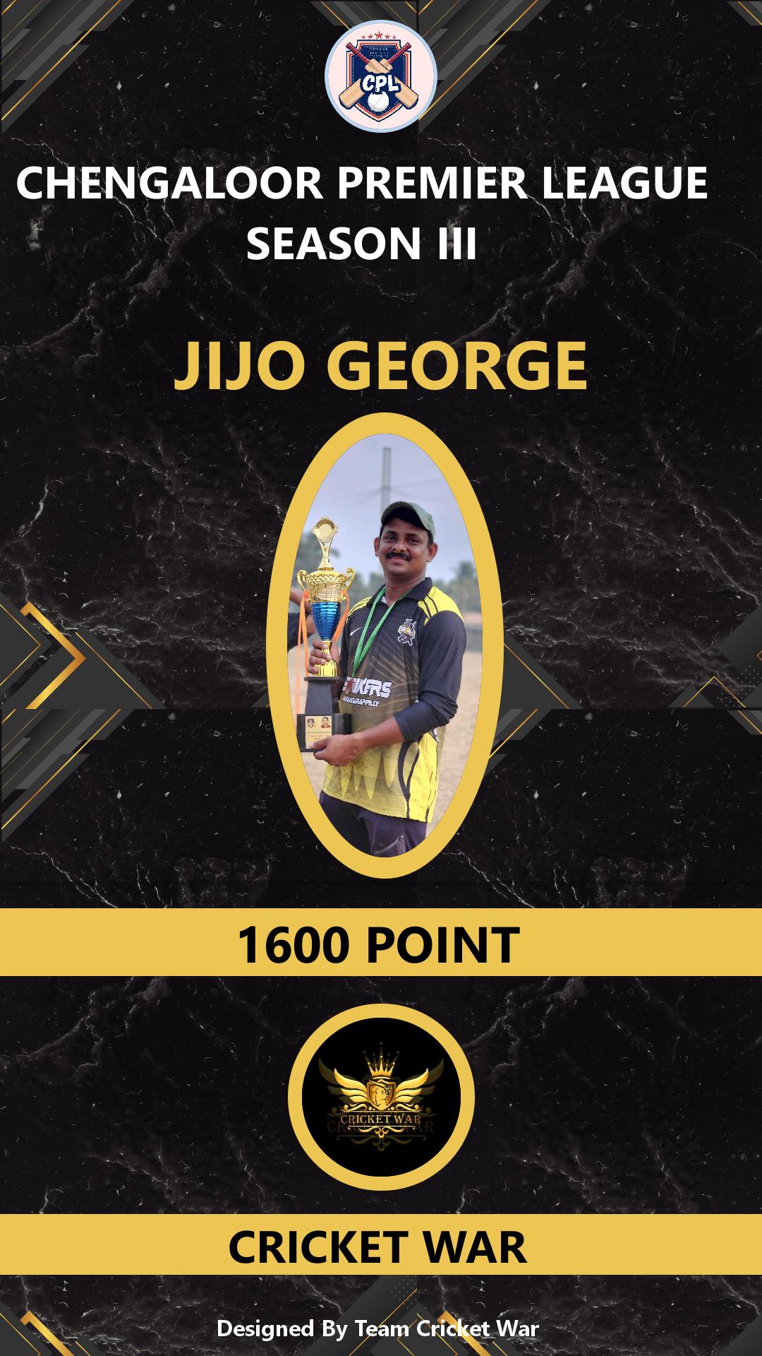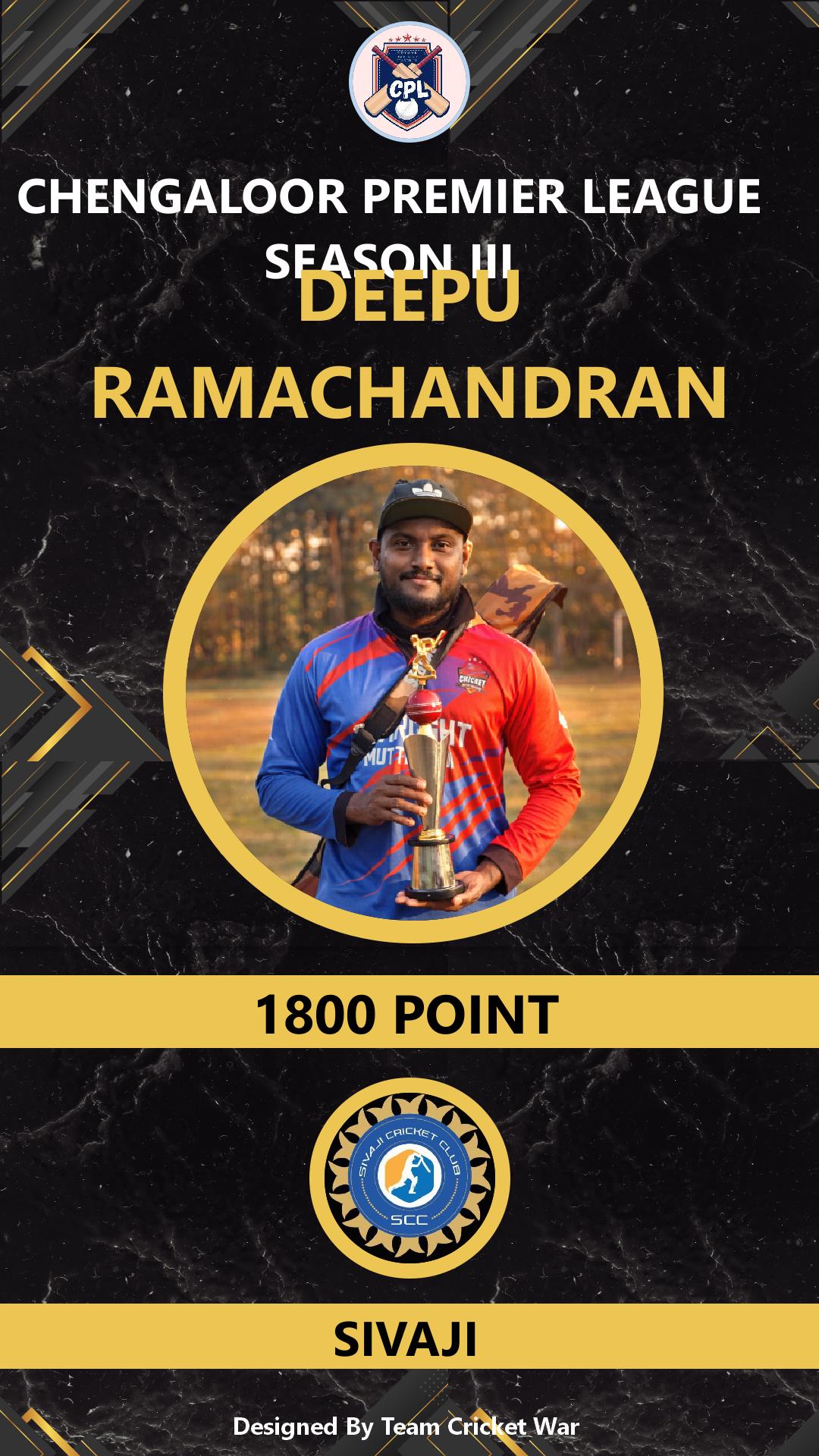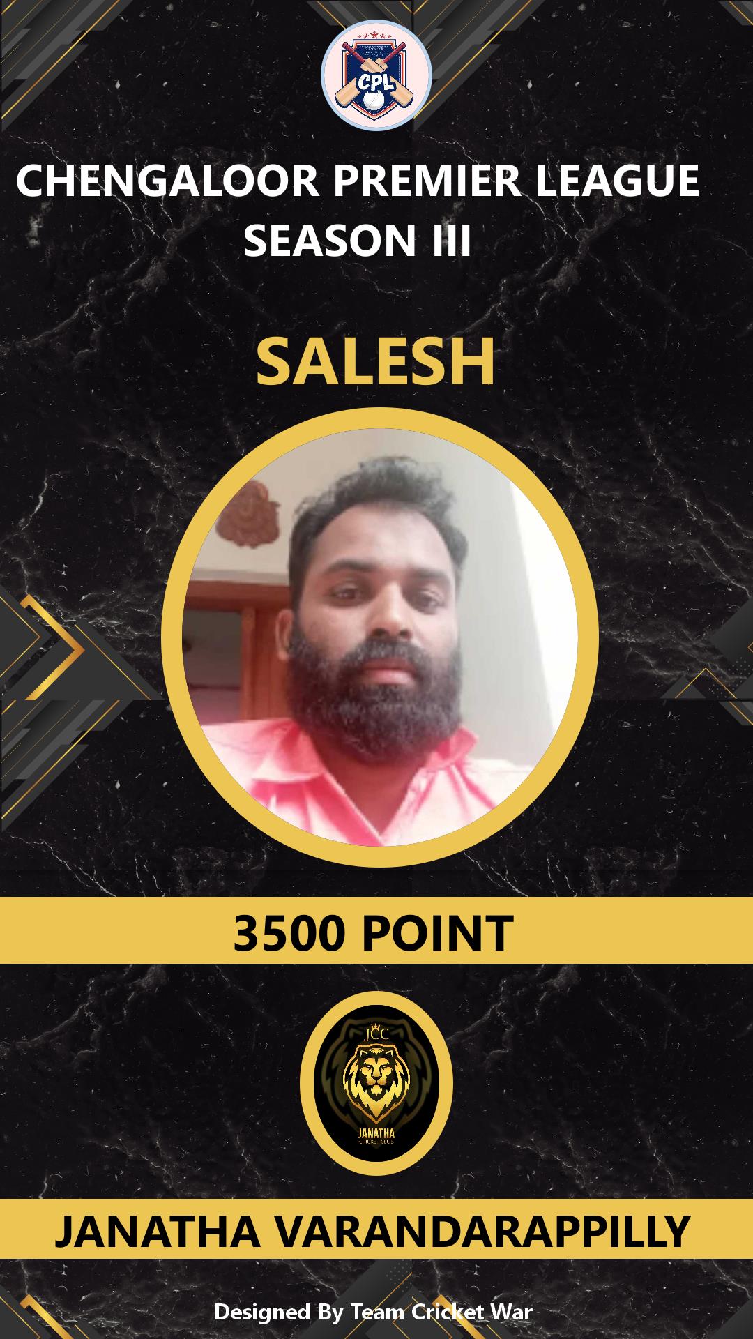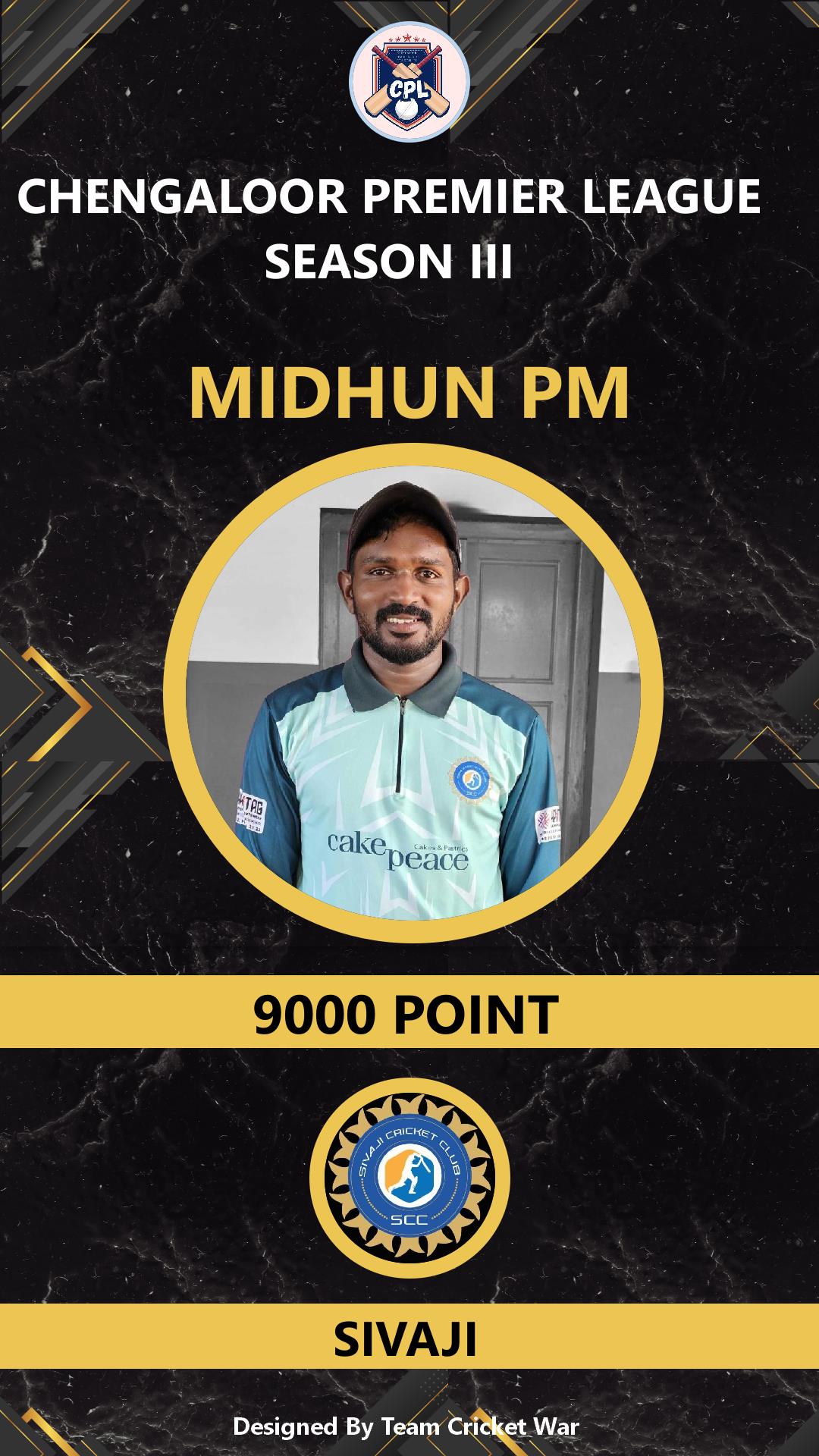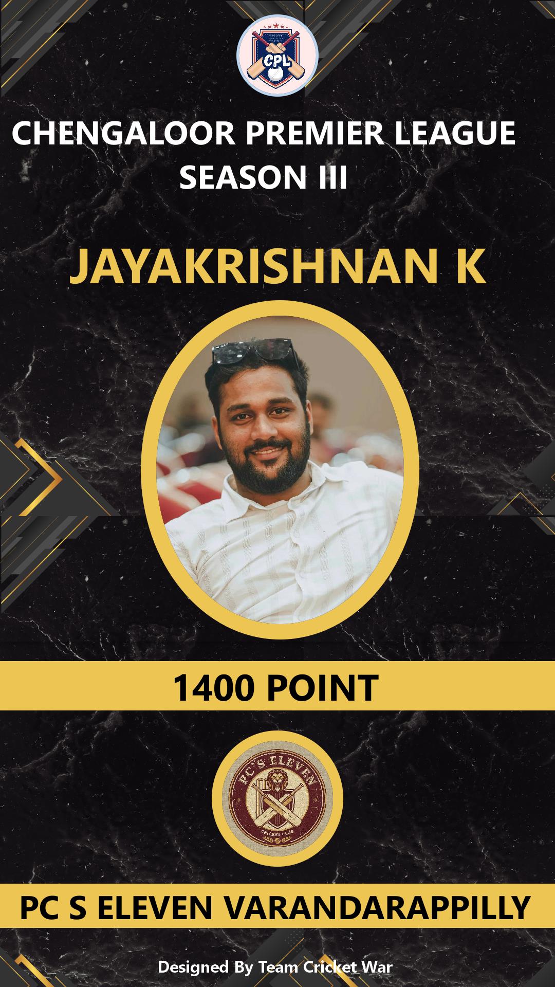 BATSMAN, AGE : 34 CHENGALOOR Bid Amount : 1400 Team : CRICKET WAR Download ID Card VIEW PROFILE |