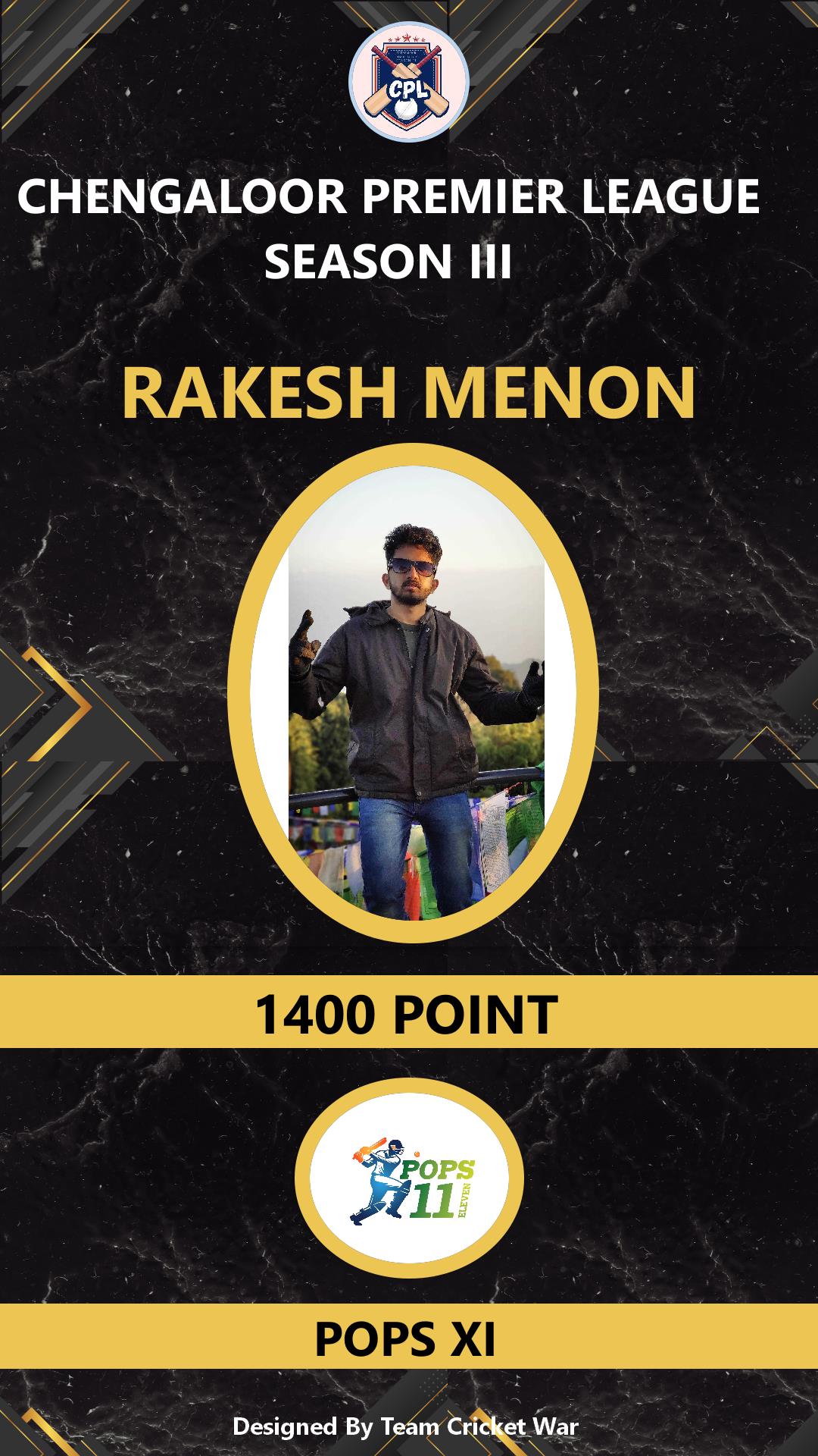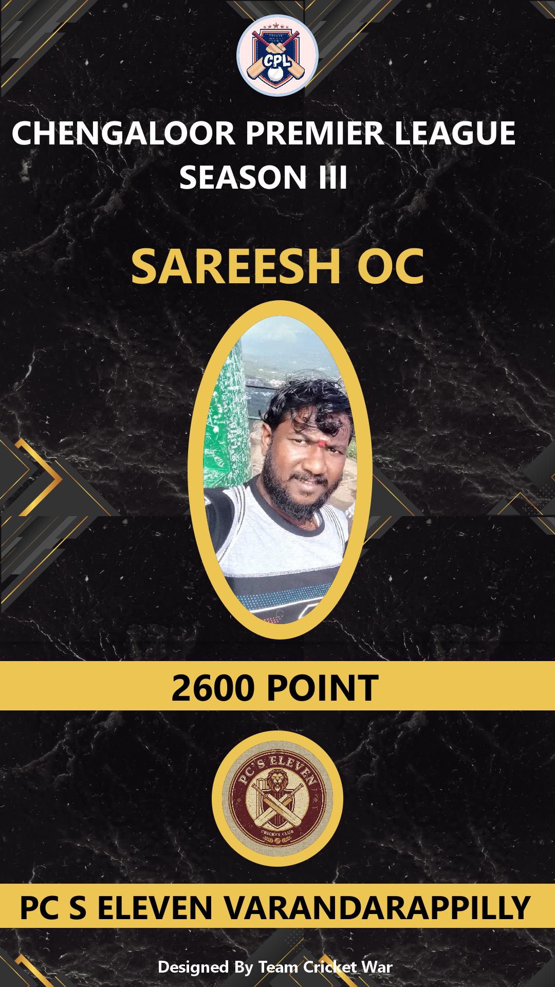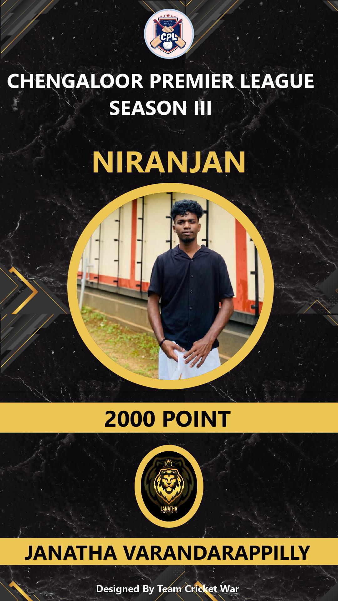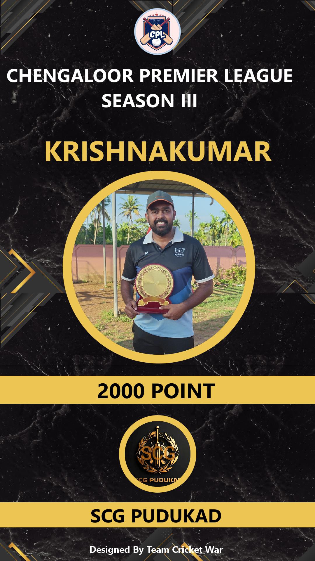 BATSMAN, AGE : 34 CHENGALOOR Bid Amount : 1400 Team : CRICKET WAR Download ID Card VIEW PROFILE |