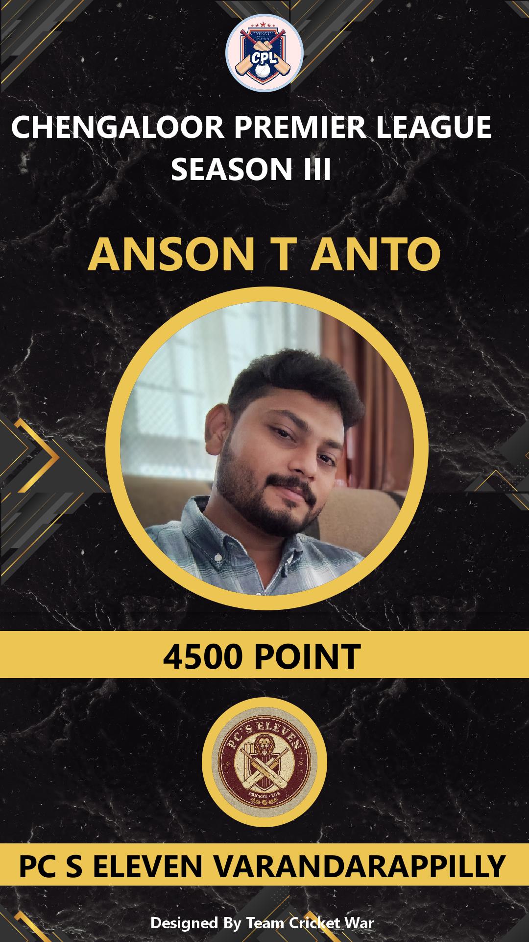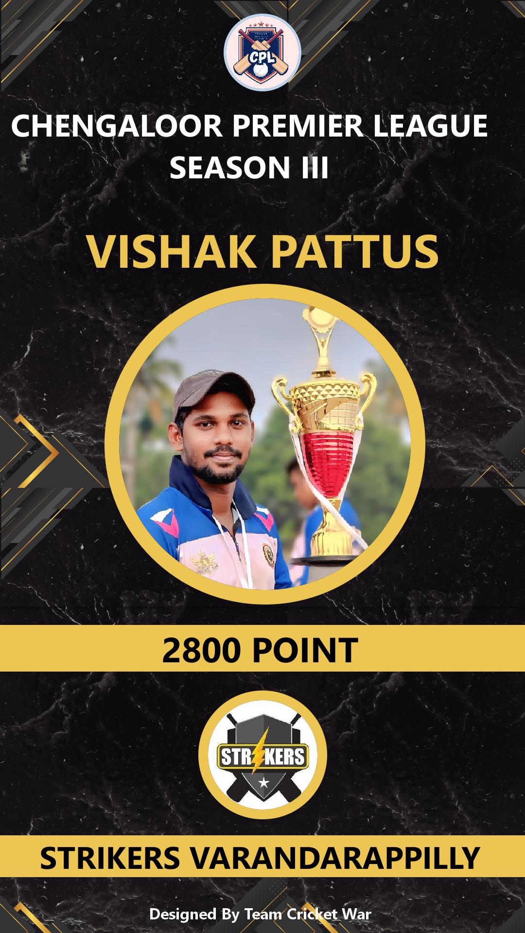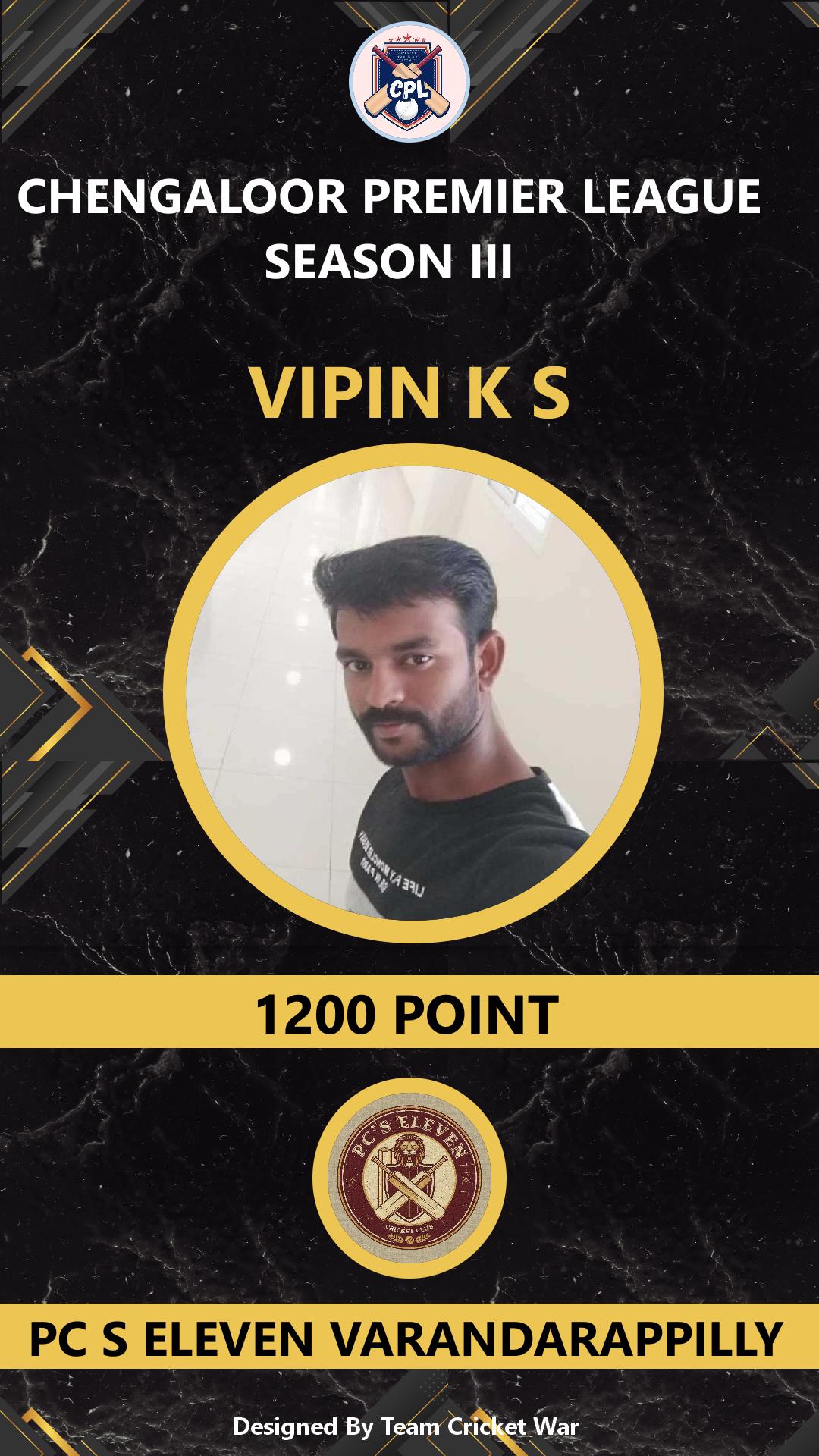 BATSMAN, AGE : 31 VARANDARAPPILLY Bid Amount : 1400 Team : CRICKET WAR Download ID Card VIEW PROFILE |
