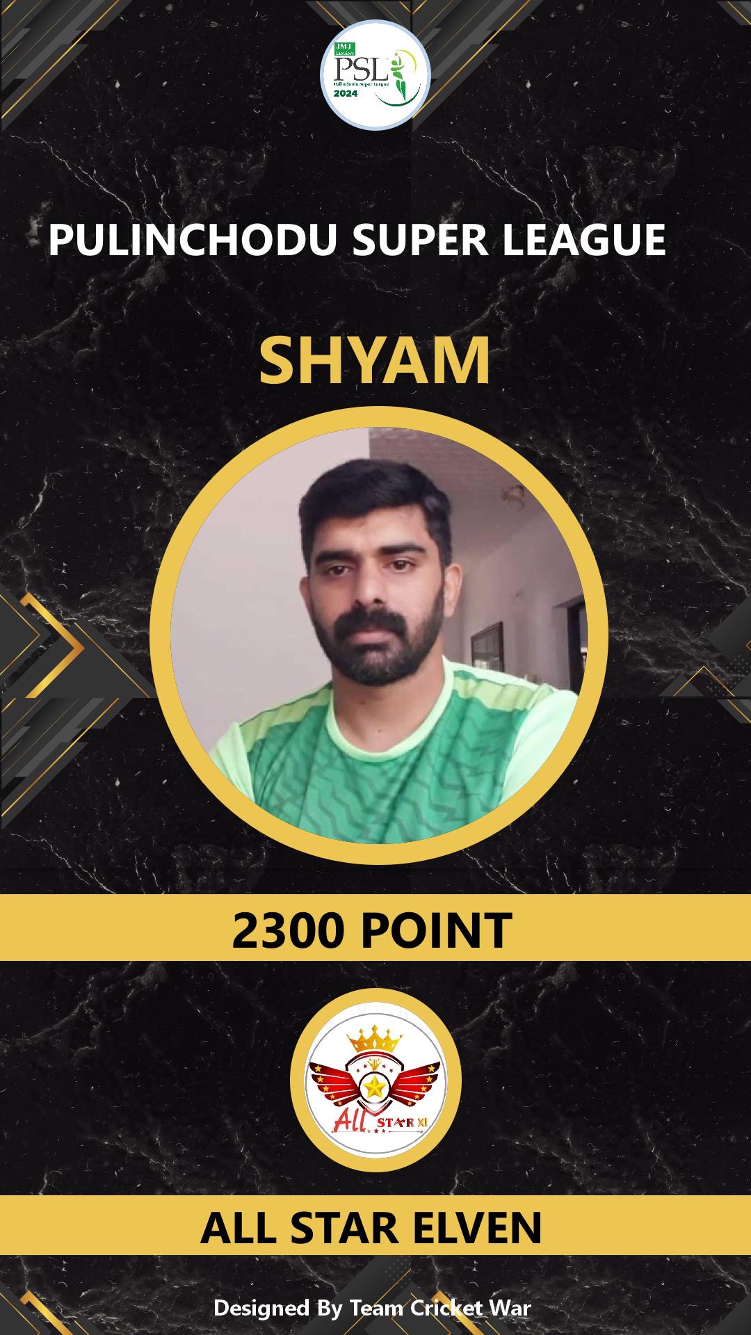 ALLROUNDER, AGE : 33 CHENGALOOR Bid Amount : 10000 Team : ALL STAR ELVEN Download ID Card VIEW PROFILE |