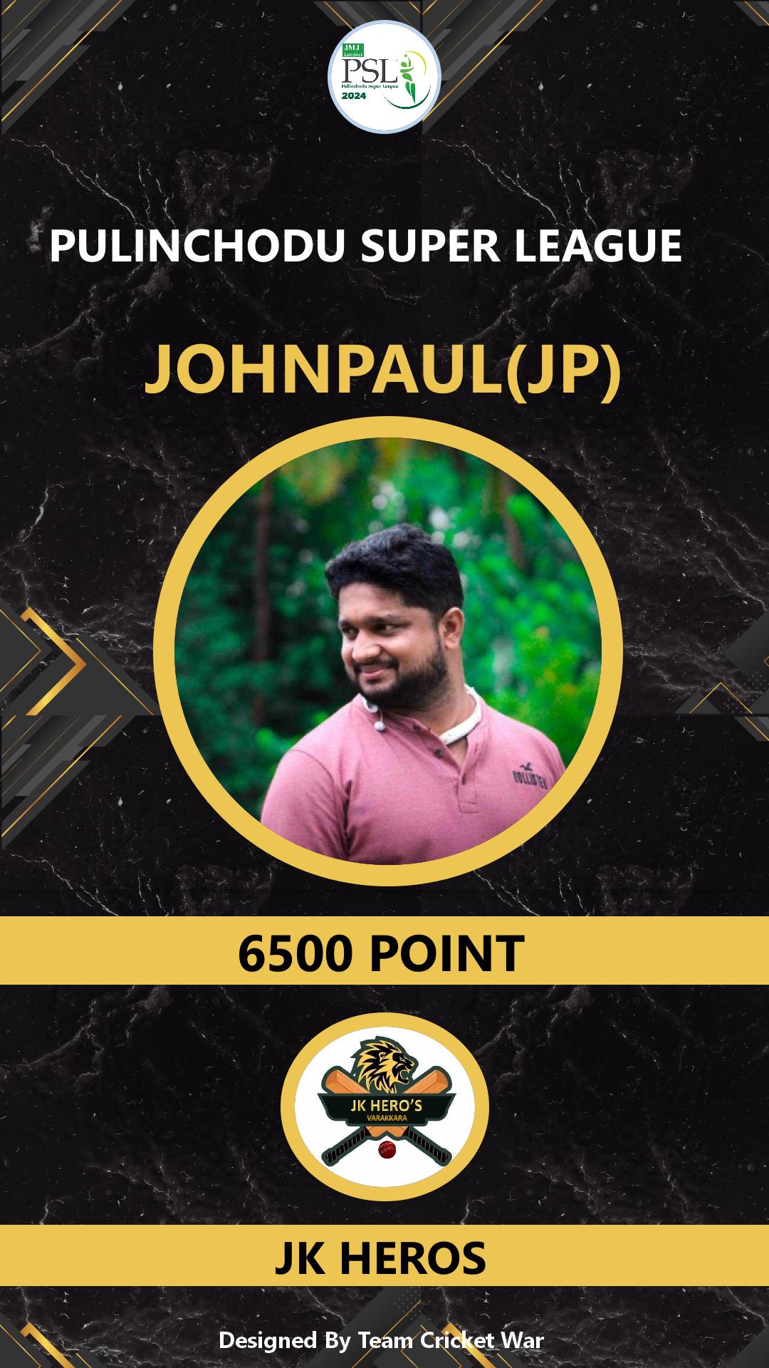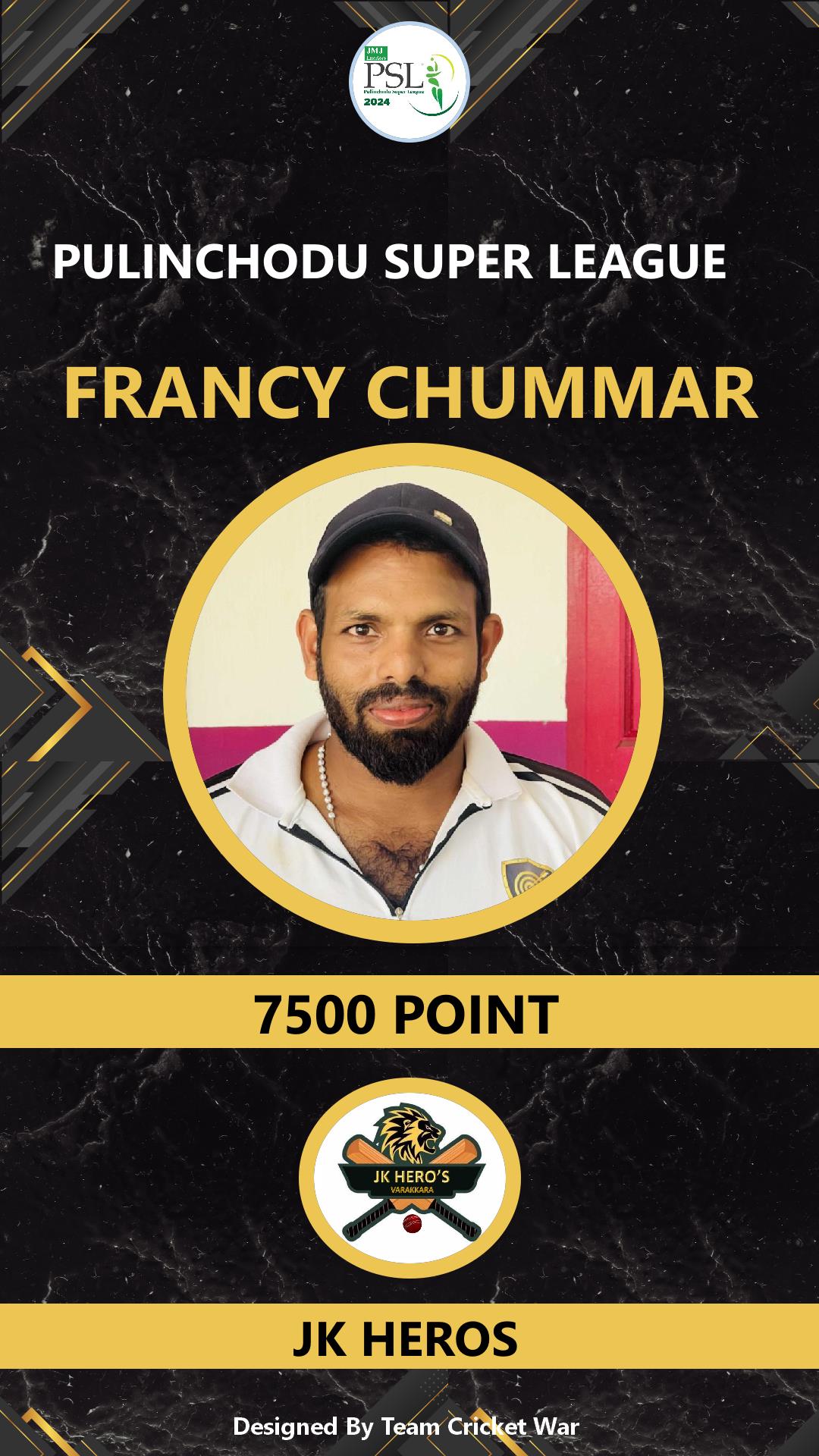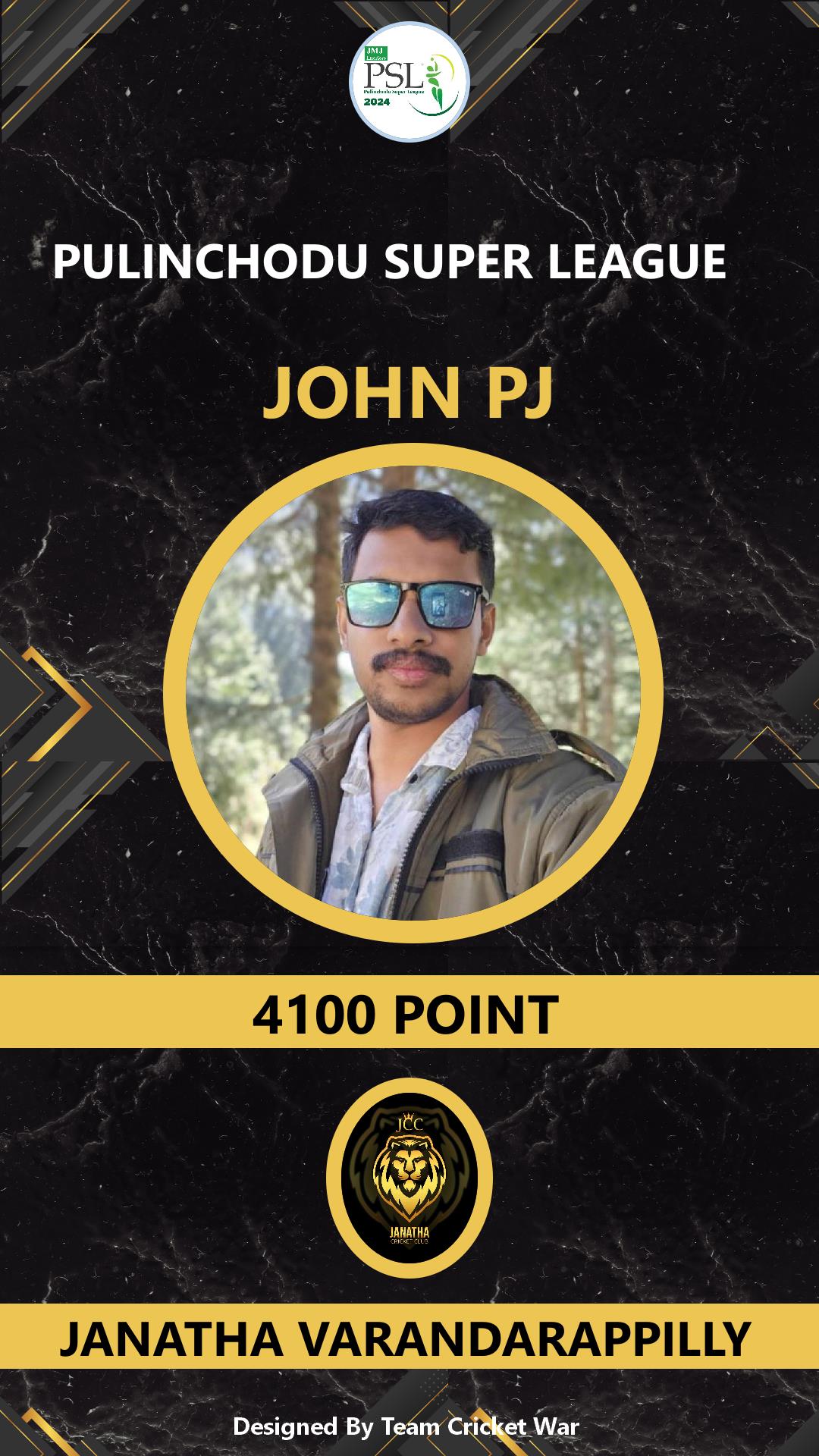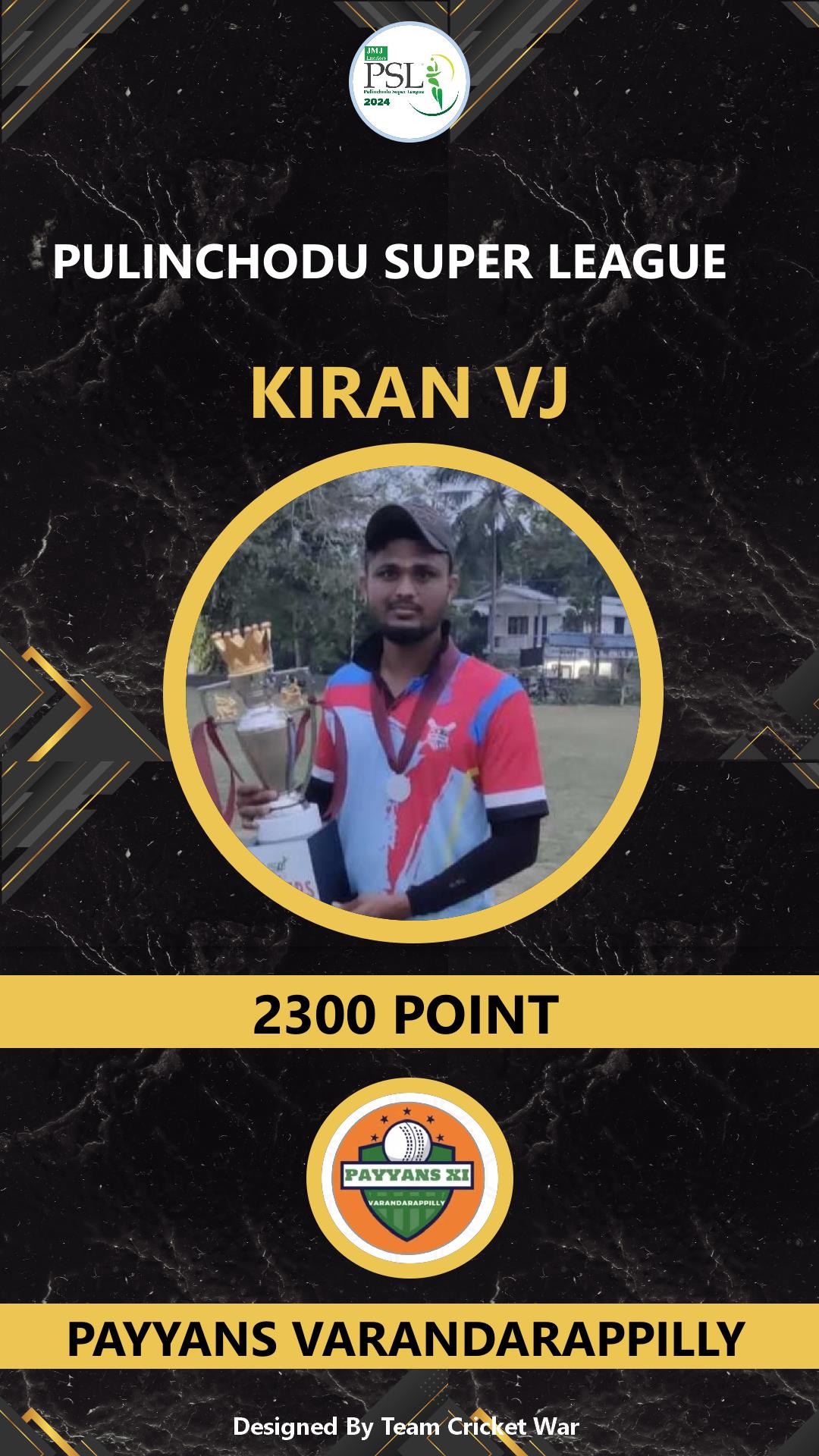 BOWLING ALLROUNDER, AGE : 29 PULINCHODU Bid Amount : 2300 Team : JK HEROS Download ID Card VIEW PROFILE |