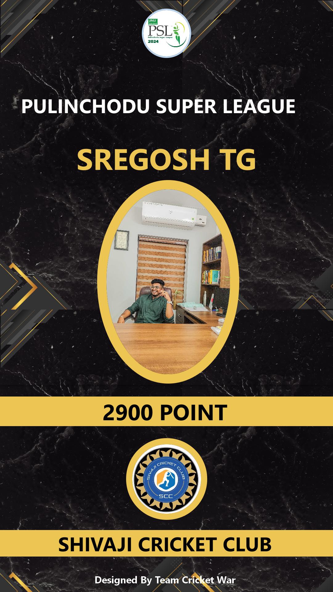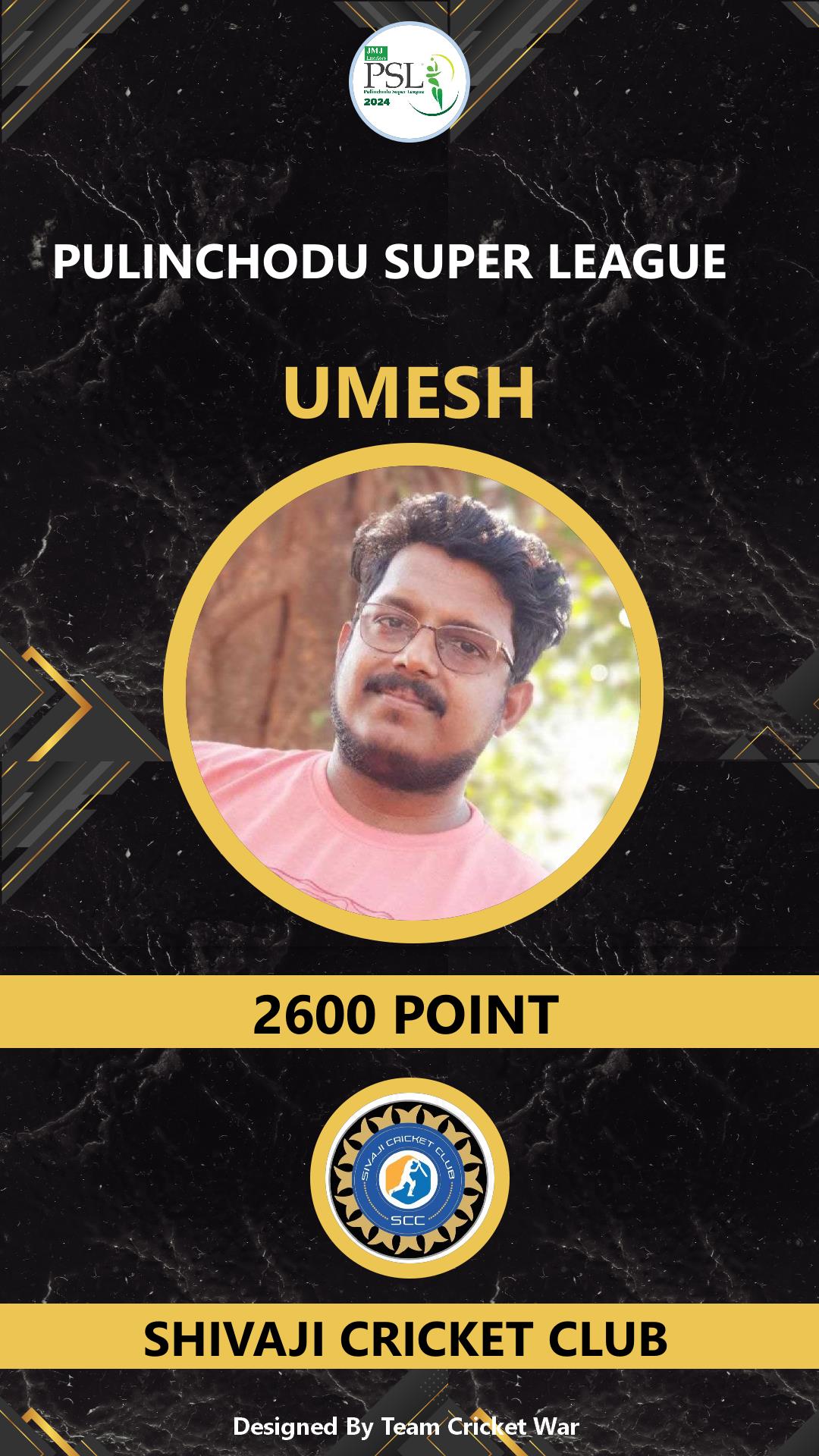 BOWLING ALLROUNDER, AGE : 26 MANNAMPETTA Bid Amount : 2900 Team : SHIVAJI CRICKET CLUB Download ID Card VIEW PROFILE |