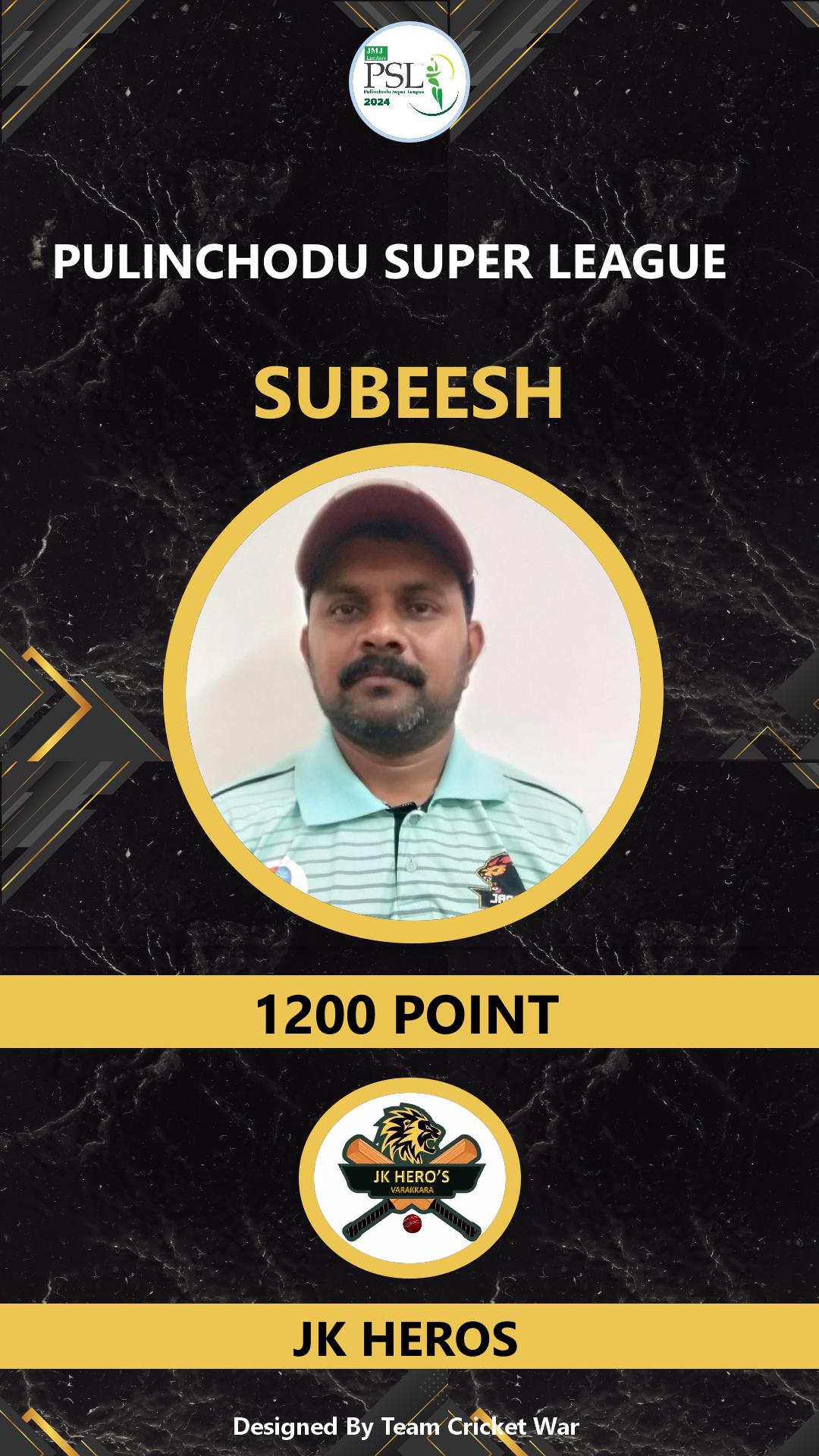 ALLROUNDER, AGE : 36 VARANDARAPPILLY Bid Amount : 1400 Team : JK HEROS Download ID Card VIEW PROFILE |