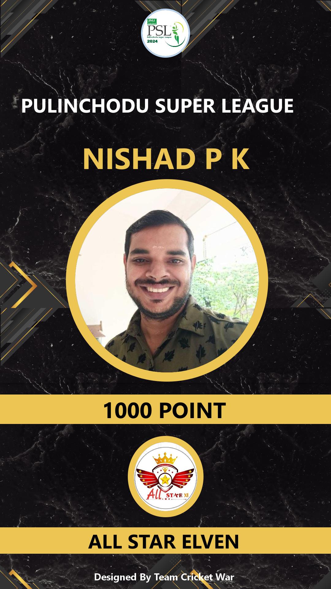 BATTING ALLROUNDER, AGE : 29 PALLIKKUNNU Bid Amount : 1000 Team : ALL STAR ELVEN Download ID Card VIEW PROFILE |