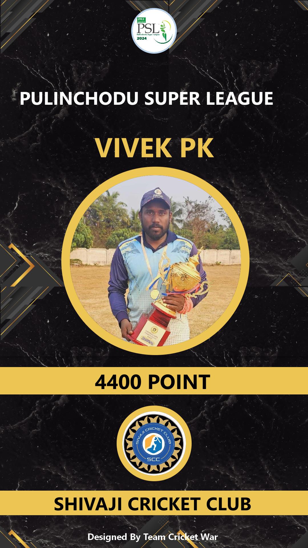 ALLROUNDER, AGE : 41 SNEHAPURAM CHENGALOOR Bid Amount : 4400 Team : SHIVAJI CRICKET CLUB Download ID Card VIEW PROFILE |