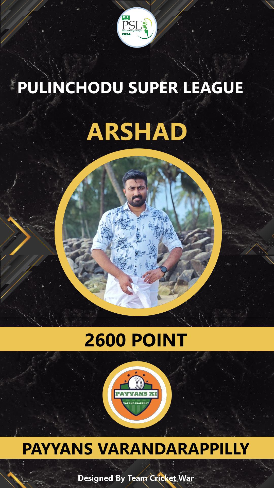 ALLROUNDER, AGE : 33 VARANDARAPILLY Bid Amount : 15000 Team : SHIVAJI CRICKET CLUB Download ID Card VIEW PROFILE |