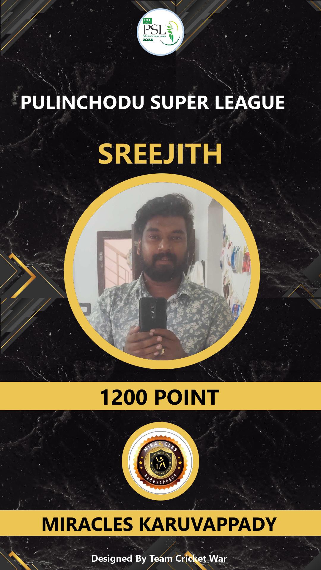 ALLROUNDER, AGE : 29 PULINCHODU Bid Amount : 1200 Team : MIRACLES KARUVAPPADY Download ID Card VIEW PROFILE |